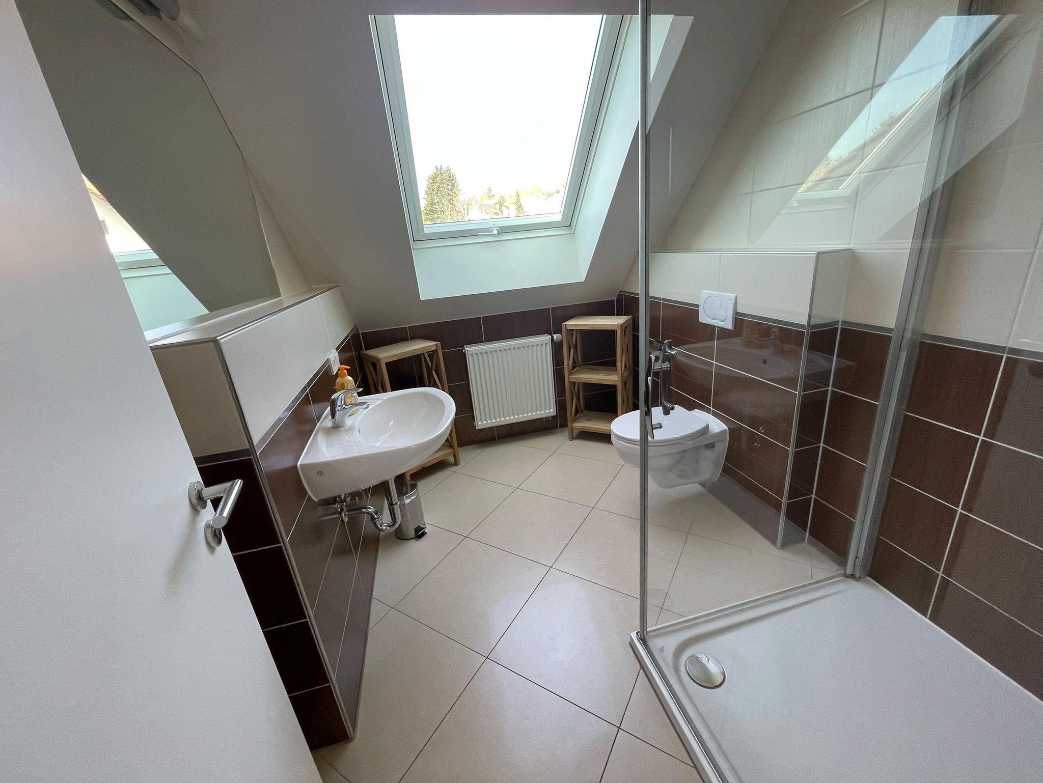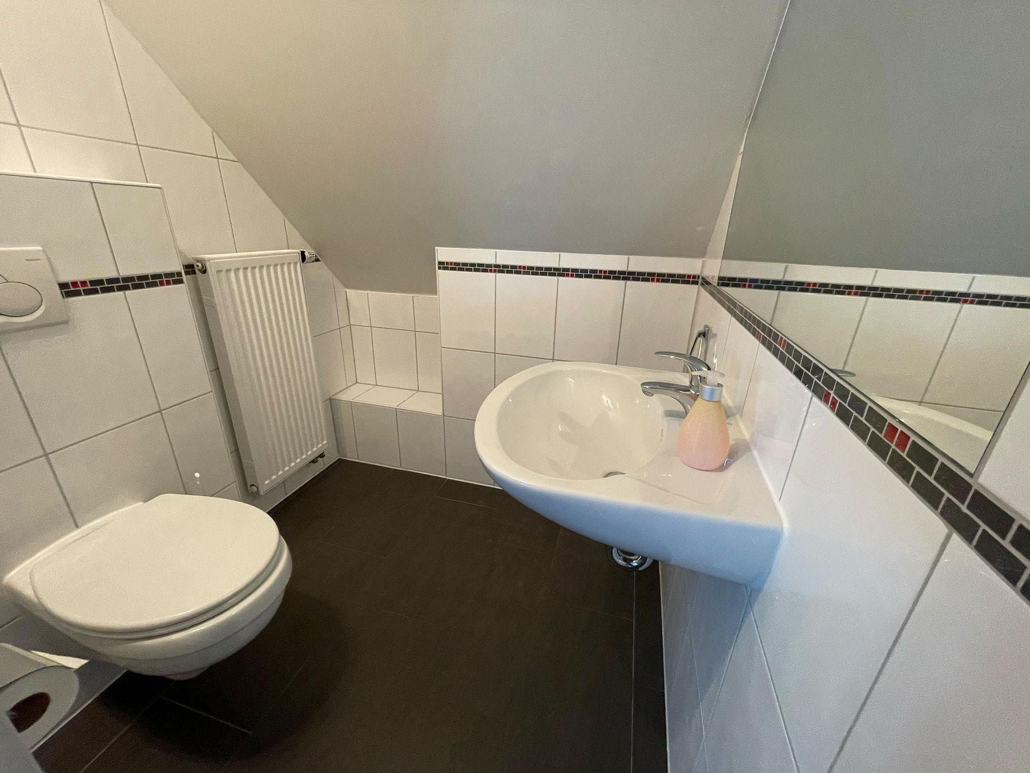 Die offene Wohnküche mit großzügigem Essbereich und angrenzendem Wohnzimmer lädt zu gemeinsamen Mahlzeiten, Spieleabenden oder entspannten Stunden ein. Neben einem modernen Badezimmer mit Dusche steht Ihnen zusätzlich ein separates Gäste-WC zur Verfügung – praktisch und komfortabel, besonders bei voller Belegung.
