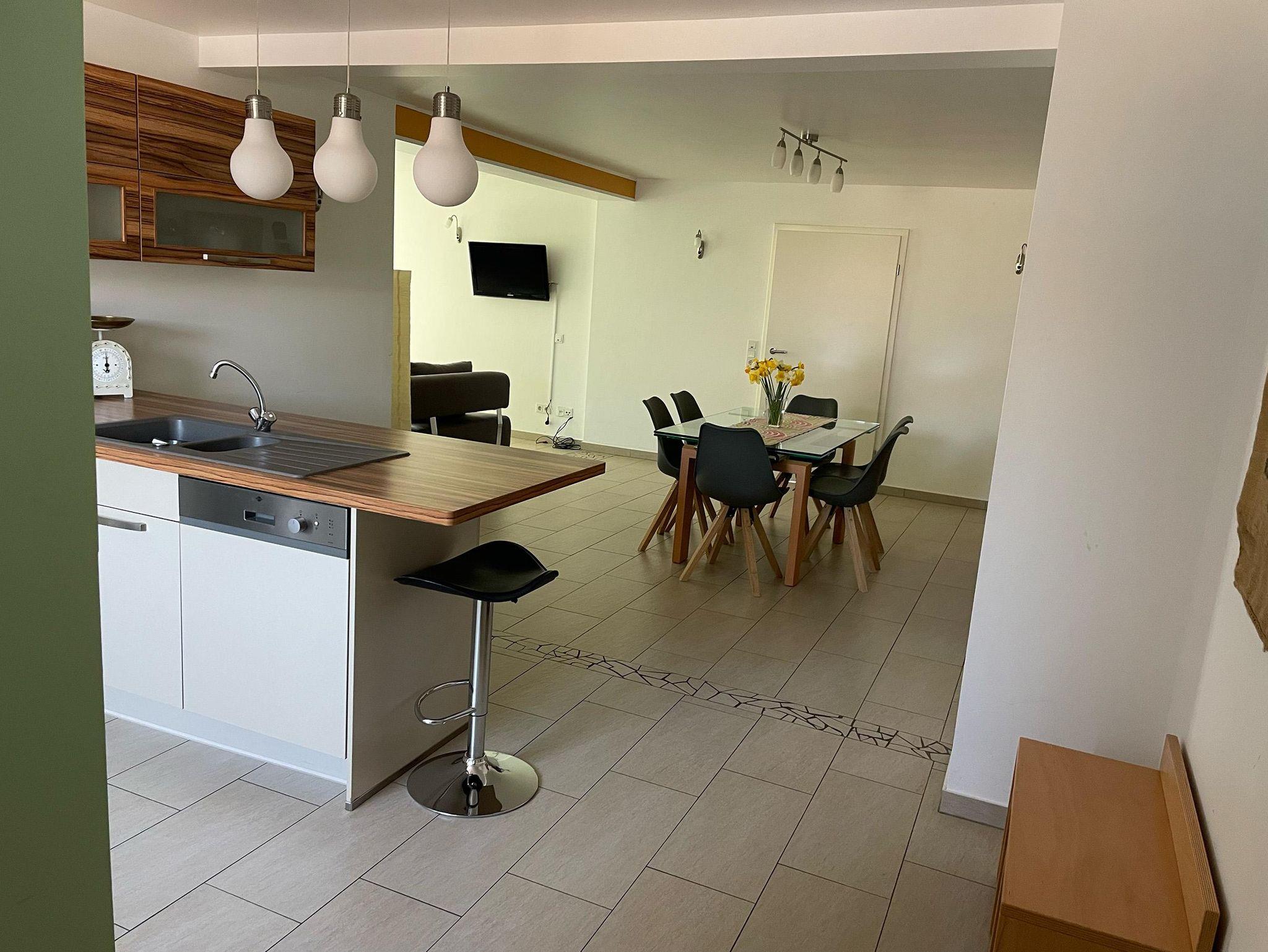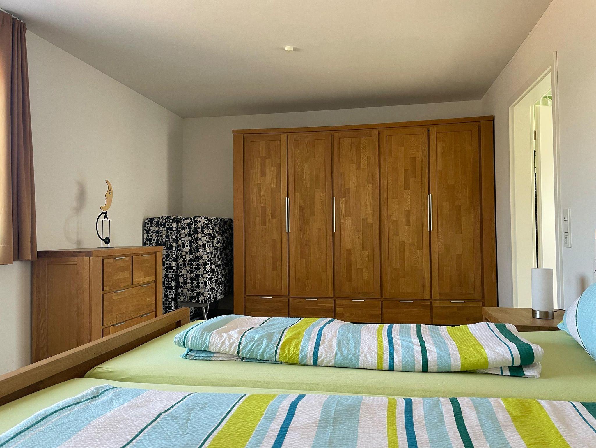 Die Wohnung befindet sich im Erdgeschoss und bietet mit ca. 54?m² Wohnfläche ausreichend Platz für bis zu vier Personen. Das Schlafzimmer ist mit einem unterfahrbaren Doppelbett ausgestattet, im Wohnbereich befindet sich ein hochwertiges Schlafsofa für zwei weitere Personen. Der offen gestaltete Wohn- und Essbereich mit voll ausgestatteter Küche lädt zum geselligen Kochen und Entspannen ein.