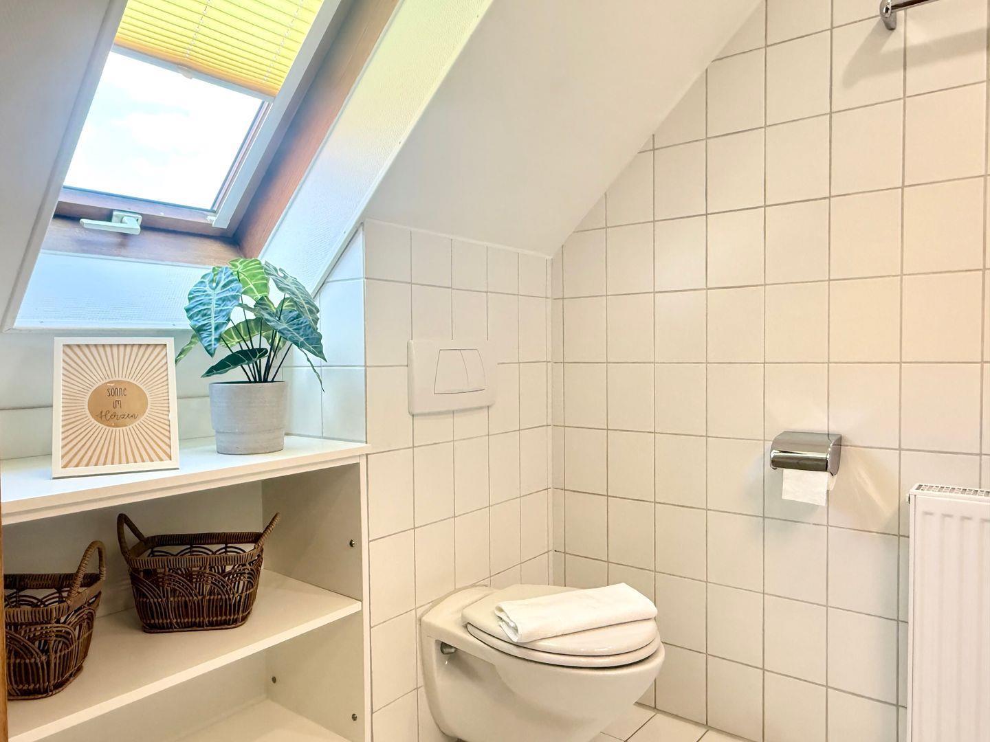 Das Badezimmer verfügt über eine Dusche und ein WC und sorgt für einen angenehmen Start in den Tag.