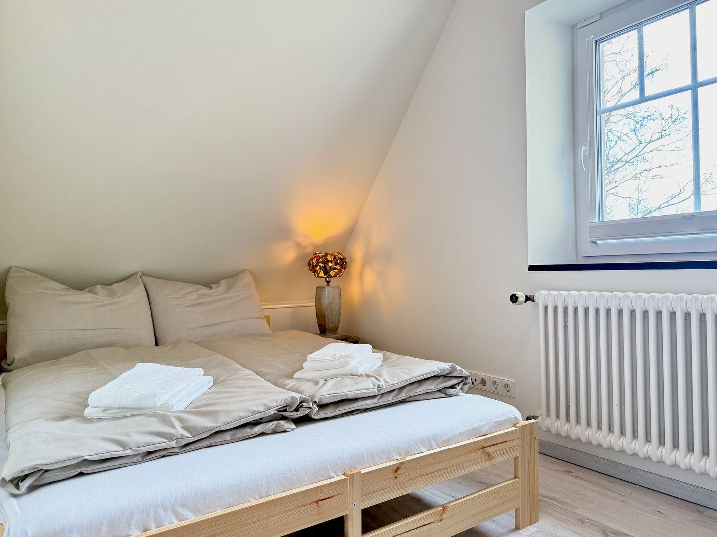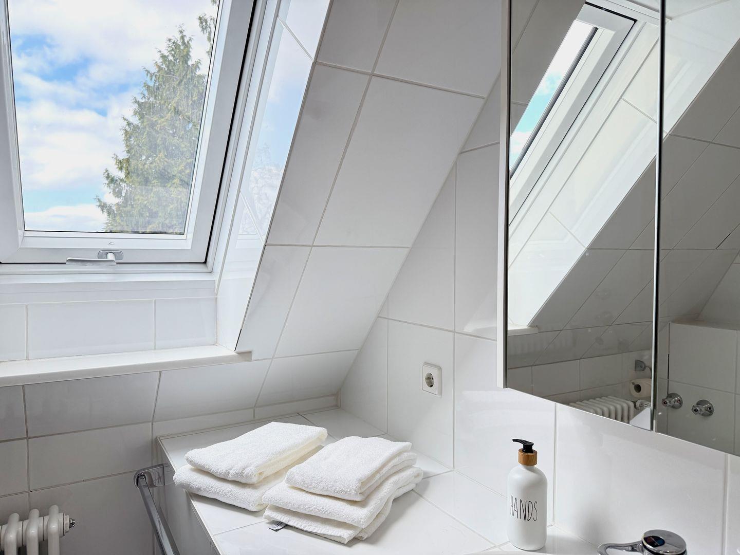 Zwei der drei Schlafzimmer sind mit einem Doppelbett ausgestattet, das dritte Schlafzimmer mit einem großzügigen Einzelbett mit 140 cm Breite und verfügen über jeweils ein eigenes, direkt angeschlossenes Bad mit WC und Badewanne. Das Bad des Elternschlafzimmers ist zusätzlich mit einem Bidet ausgestattet. Die Unterkunft bietet ideale Voraussetzungen zur Umsetzung der modernen Work-Life-Balance und verfügt über sehr gutes Internet für Ihr Homeoffice im Urlaubsdomizil mit Schreibtisch im Hauptschlafzimmer. Für längere Aufenthalte stehen eine Waschmaschine und ein Trockner zur gemeinsamen Nutzung mit anderen Ferienwohnungen zur Verfügung.