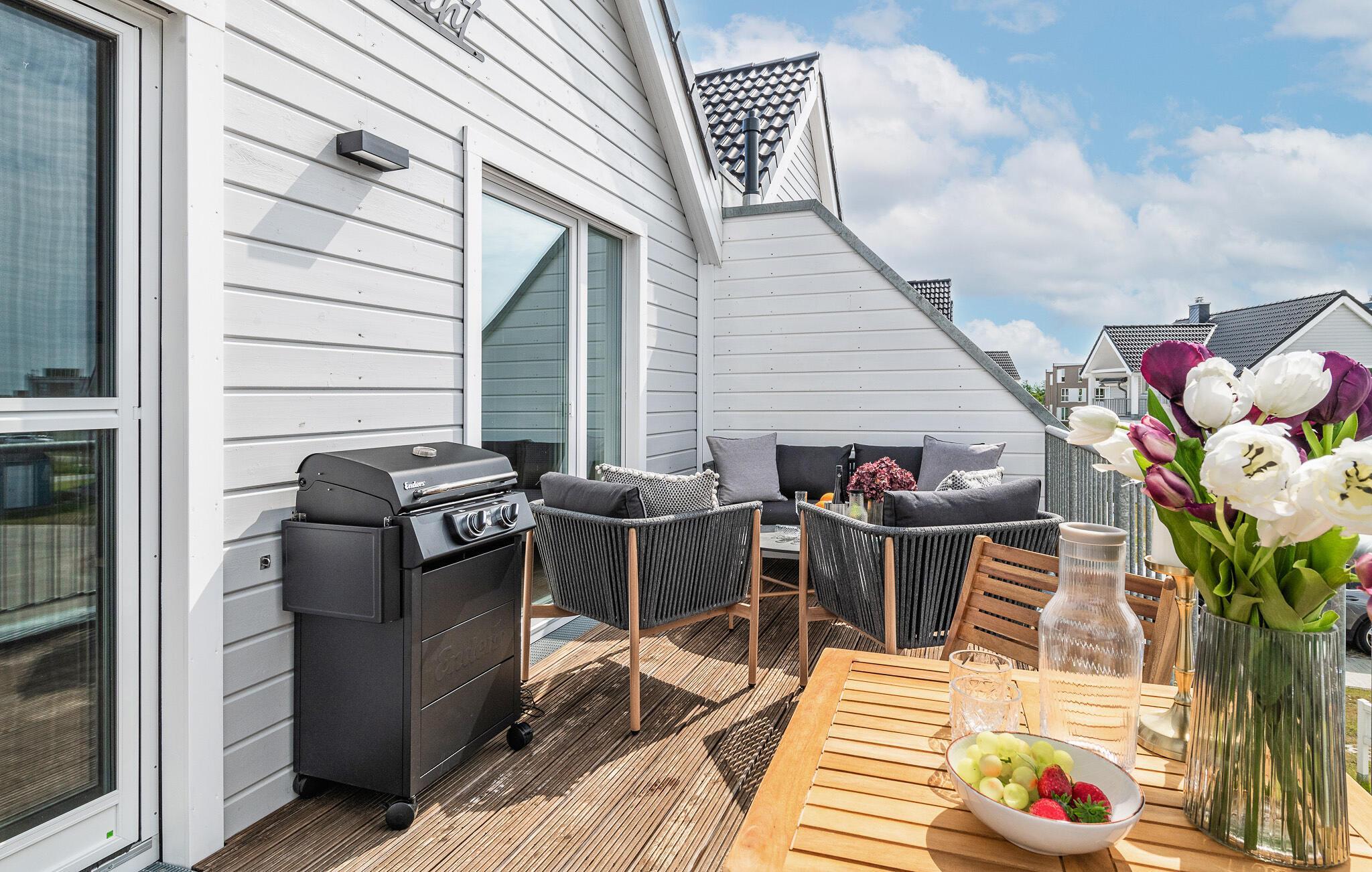 Das Noorderlicht ist im pastell-skandinavischen Stil eingerichtet und empfängt euch mit einem offenen Wohn- und Essbereich und zwei sonnigen Terrassen, die zum Verweilen und Entspannen einladen. Besonders an warmen Tagen könnt ihr hier bis in die Abendstunden die Sonne genießen, entspannt grillen oder einen fantastischen Urlaubstag ausklingen und die Blicke schweifen lassen. Einfach der ideale Rückzugsort für Familien, Paare und Freunde.