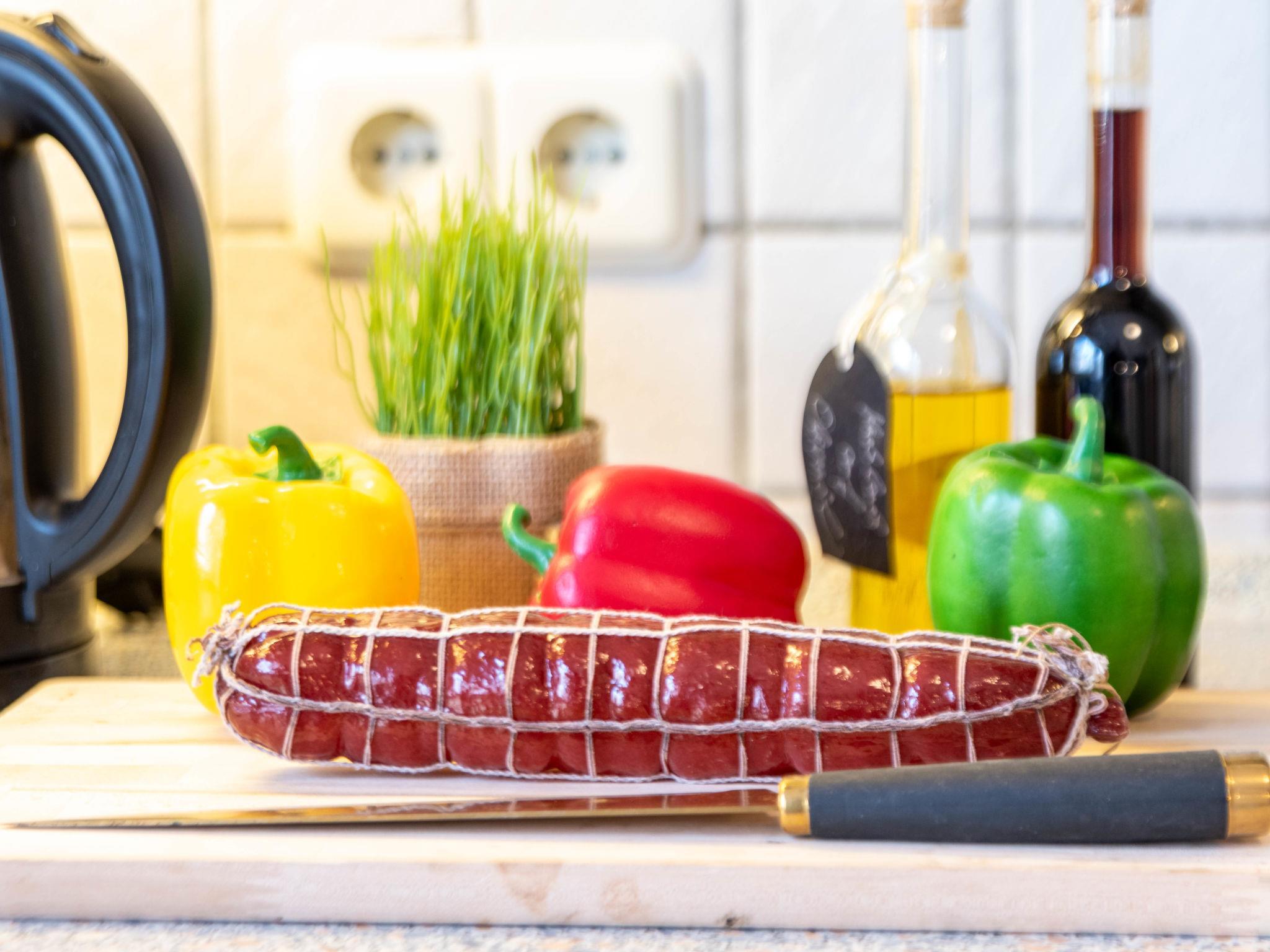 3-room apartment 80 m2, on the ground floor. Cosy furnishings: living room with satellite TV (flat screen). 1 room with 1 double bed (2 x 90 cm, length 200 cm). 1 room with 1 pull-out bed (2 pers. 2 x 90 cm, length 200 cm). Kitchen (oven, dishwasher, 4 ceramic glass hob hotplates, toaster, kettle, microwave, electric coffee machine) with dining table. Bath/shower/WC. Terrace roofed. Terrace furniture. Facilities: children's high chair (extra). Internet (WiFi, free). Please note: smoke alarm. Smoking allowed.