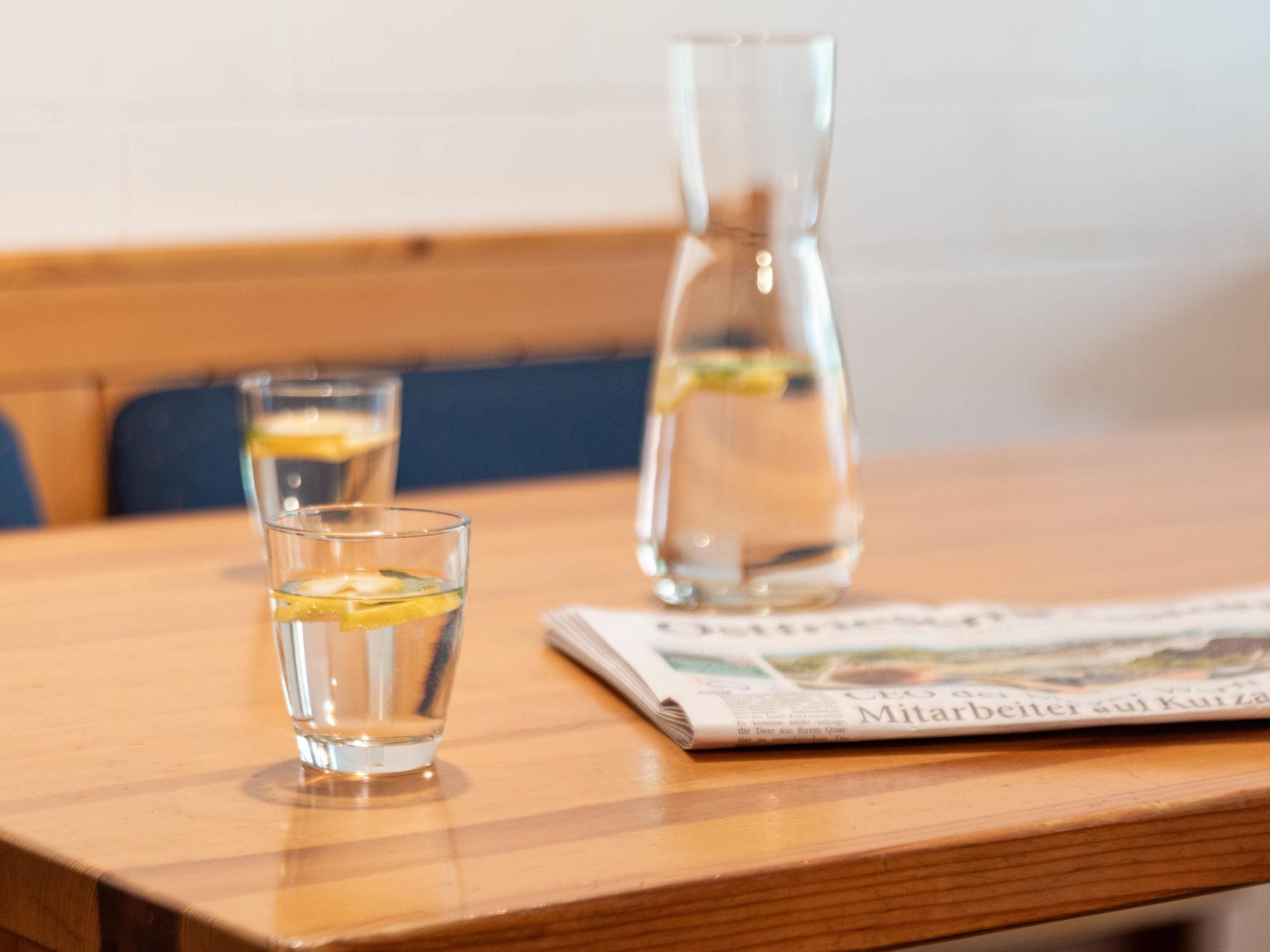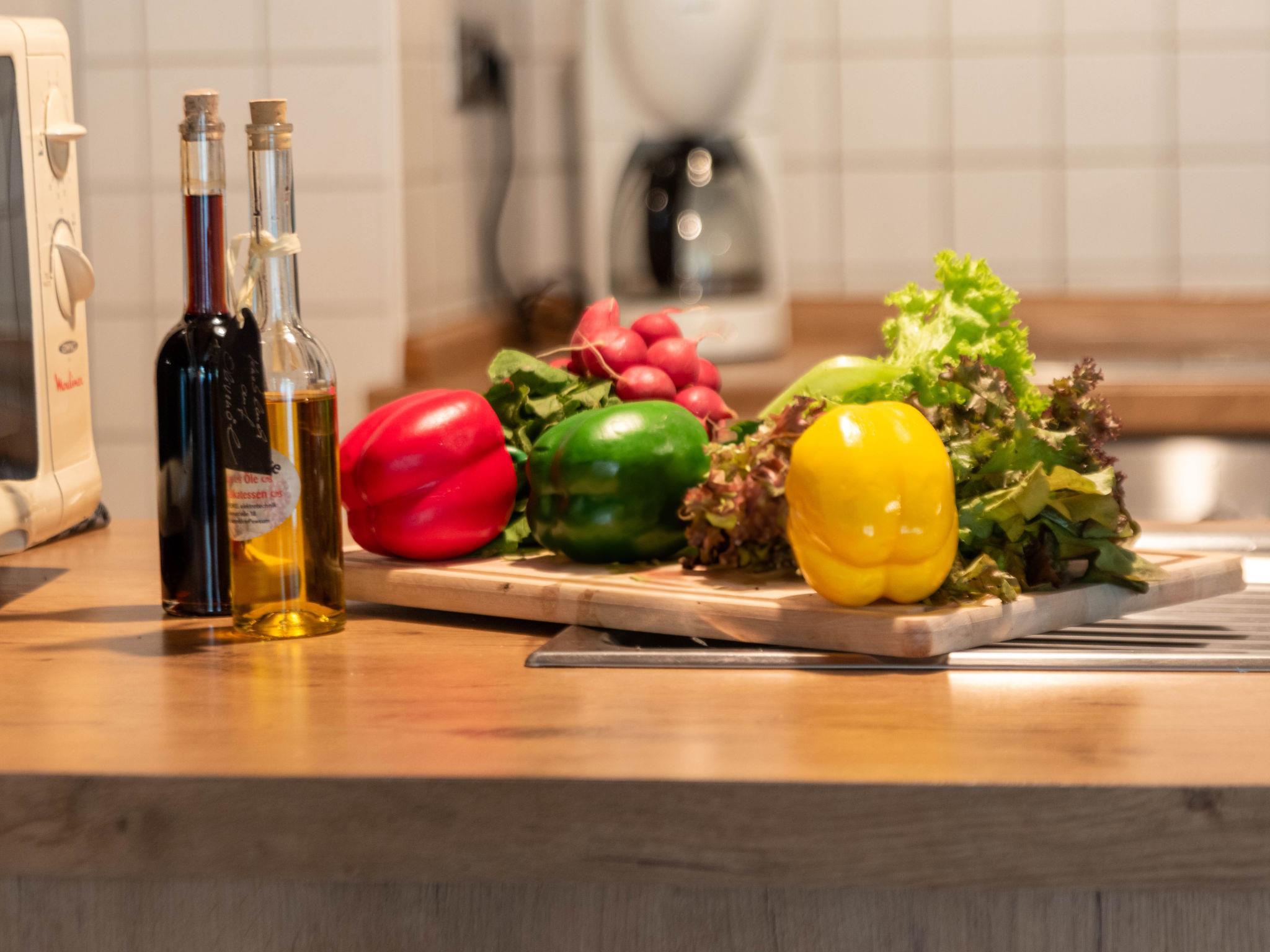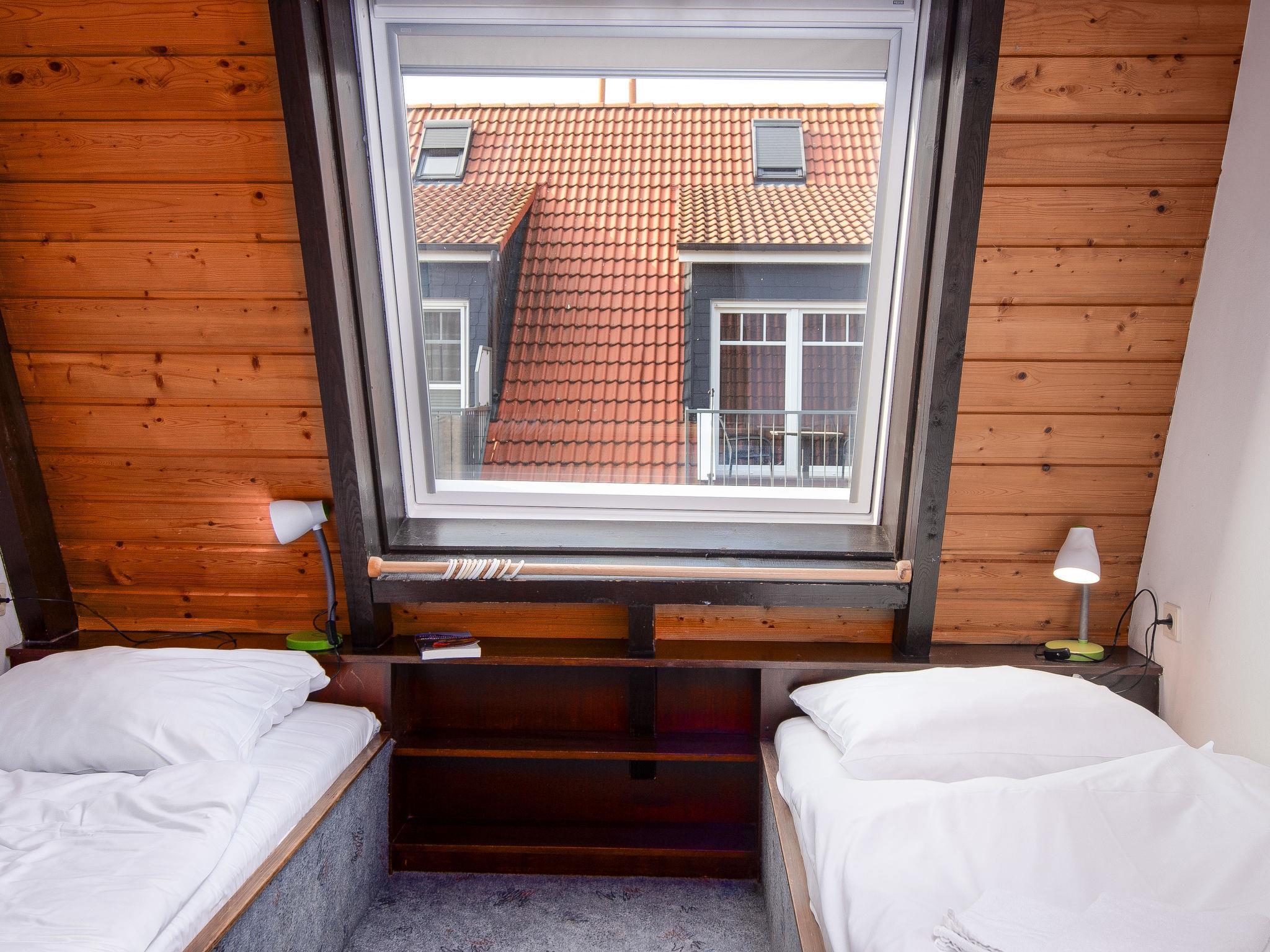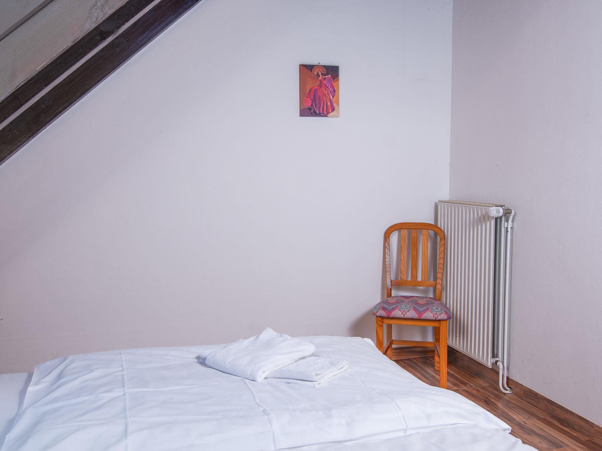 3-room terraced house 75 m2 on 2 levels, on the ground floor. Cosy furnishings: living/dining room 21 m2 with satellite TV, video, hi-fi system and DVD. Kitchenette (oven, dishwasher, 4 ceramic glass hob hotplates, toaster, kettle, microwave, electric coffee machine). Shower/WC. Upper floor: 1 room 9 m2, with sloping ceilings with 1 double bed (2 x 90 cm, length 200 cm). 1 room 7 m2, with sloping ceilings with 2 beds (90 cm, length 200 cm). Sep. WC. Terrace. Terrace furniture. Facilities: children's high chair (extra). Please note: non-smoking house.