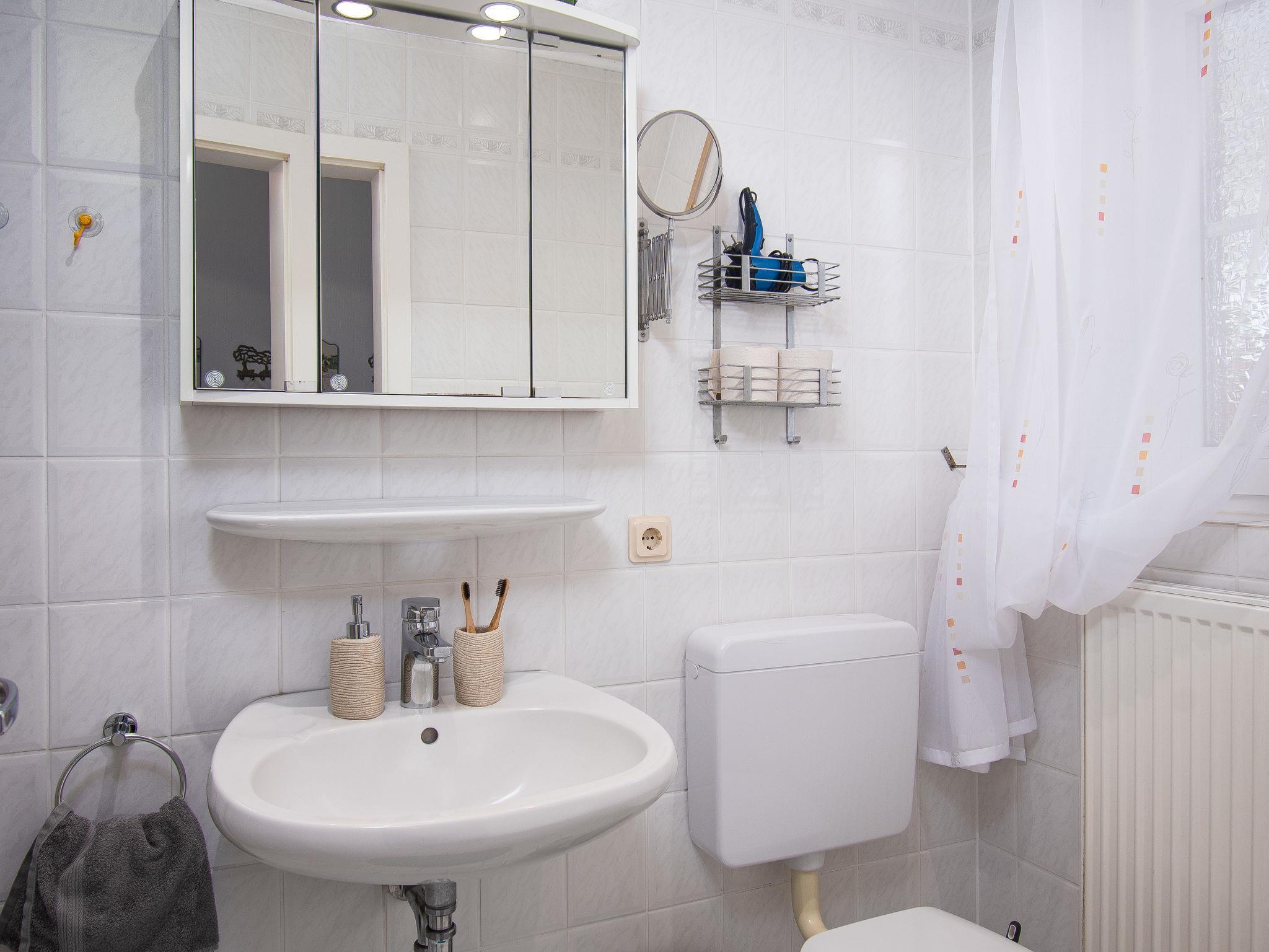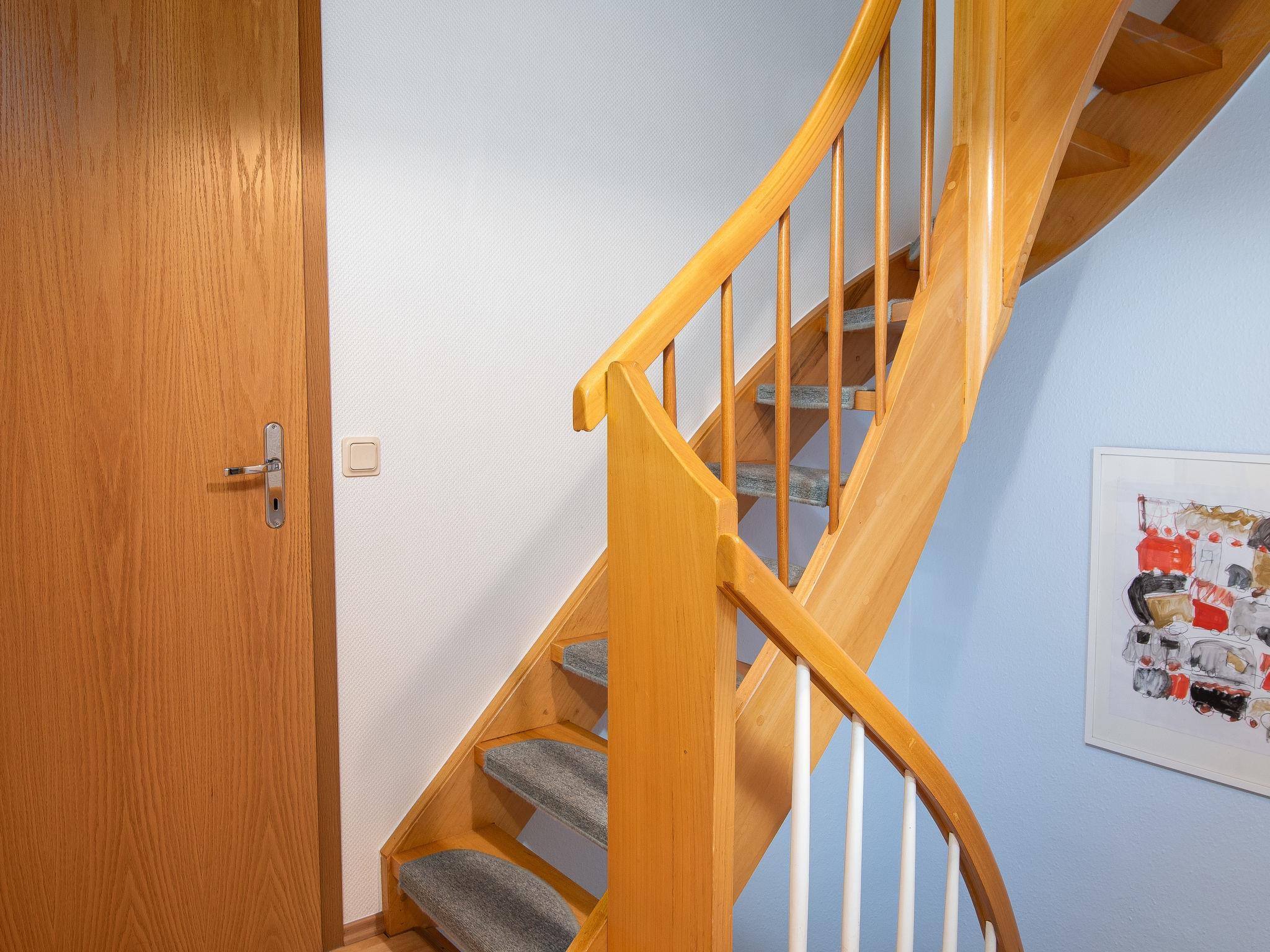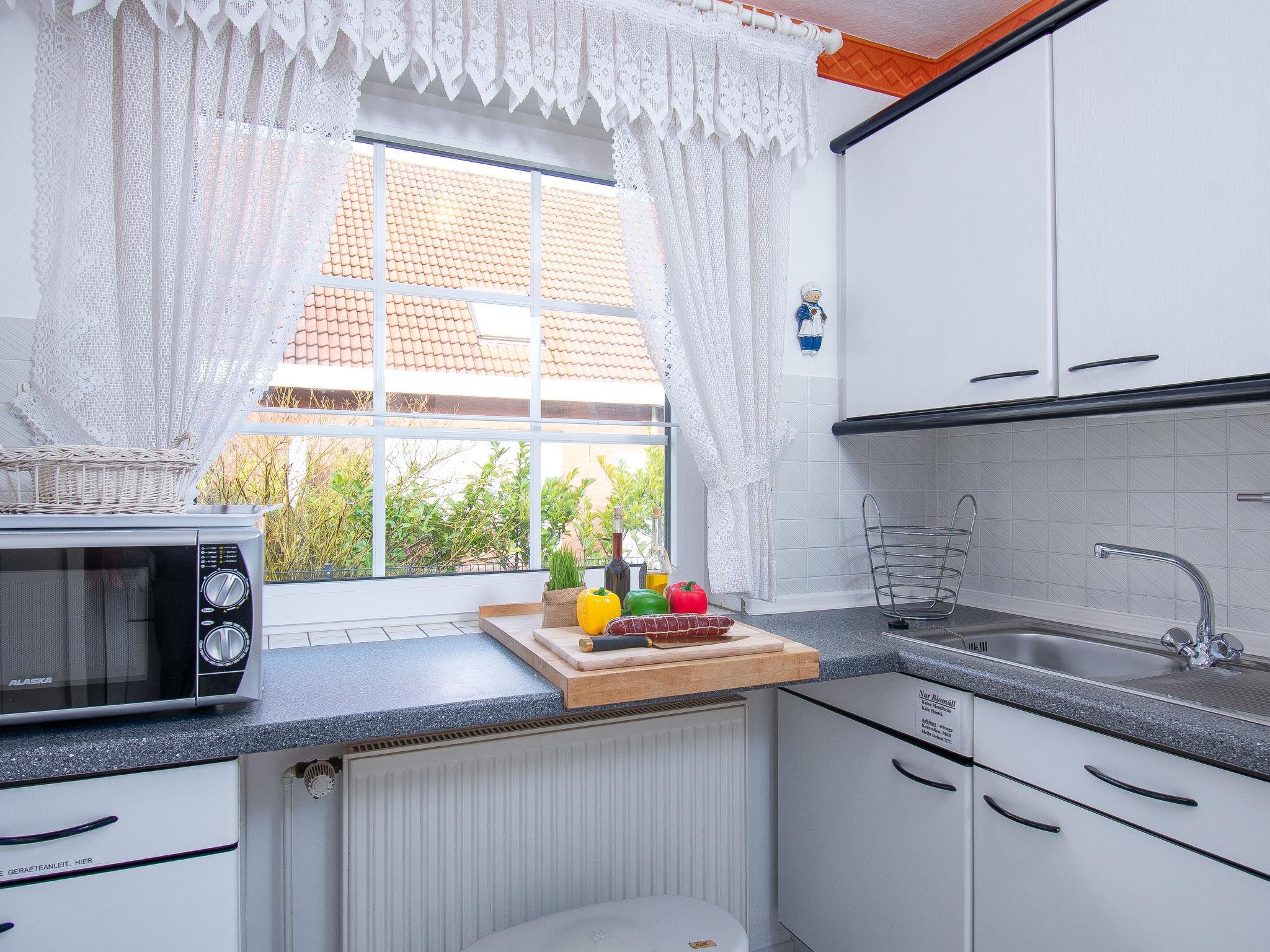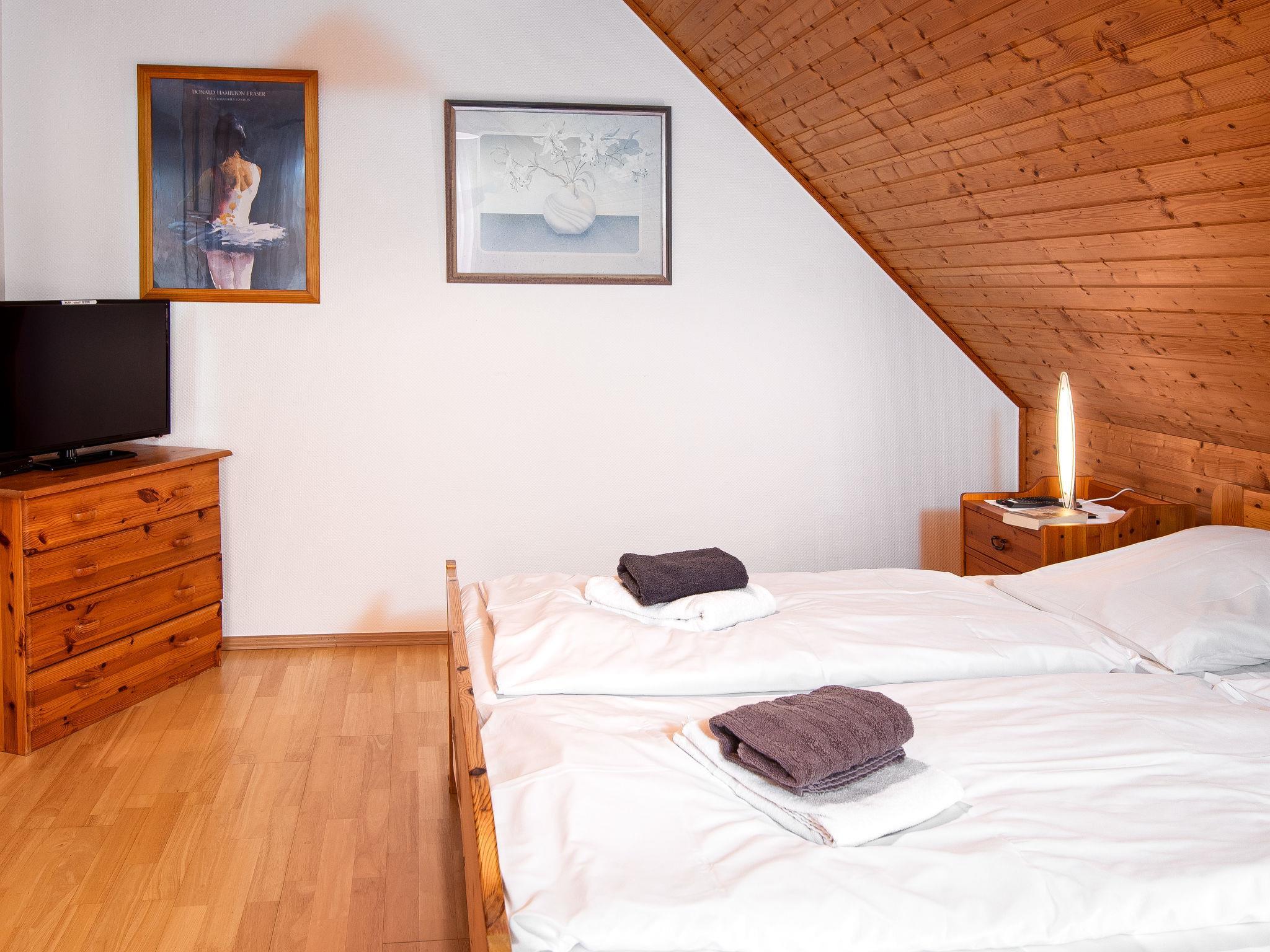 "Krebs", 3-room terraced house 82 m2 on 2 levels. Cosy furnishings: living/dining room with cable TV (flat screen), radio and CD-player. Exit to the terrace. Kitchen (oven, dishwasher, 4 ceramic glass hob hotplates, toaster, kettle, microwave, electric coffee machine). Shower/WC. Upper floor: 1 room with sloping ceilings with 1 double bed (2 x 90 cm, length 200 cm). 1 room with sloping ceilings with 2 beds (90 cm, length 200 cm), bath/WC. Terrace. Terrace furniture, barbecue. Facilities: washing machine, dryer, children's high chair (extra). Internet (WiFi, free). Please note: non-smoking house. Smoke alarm.
