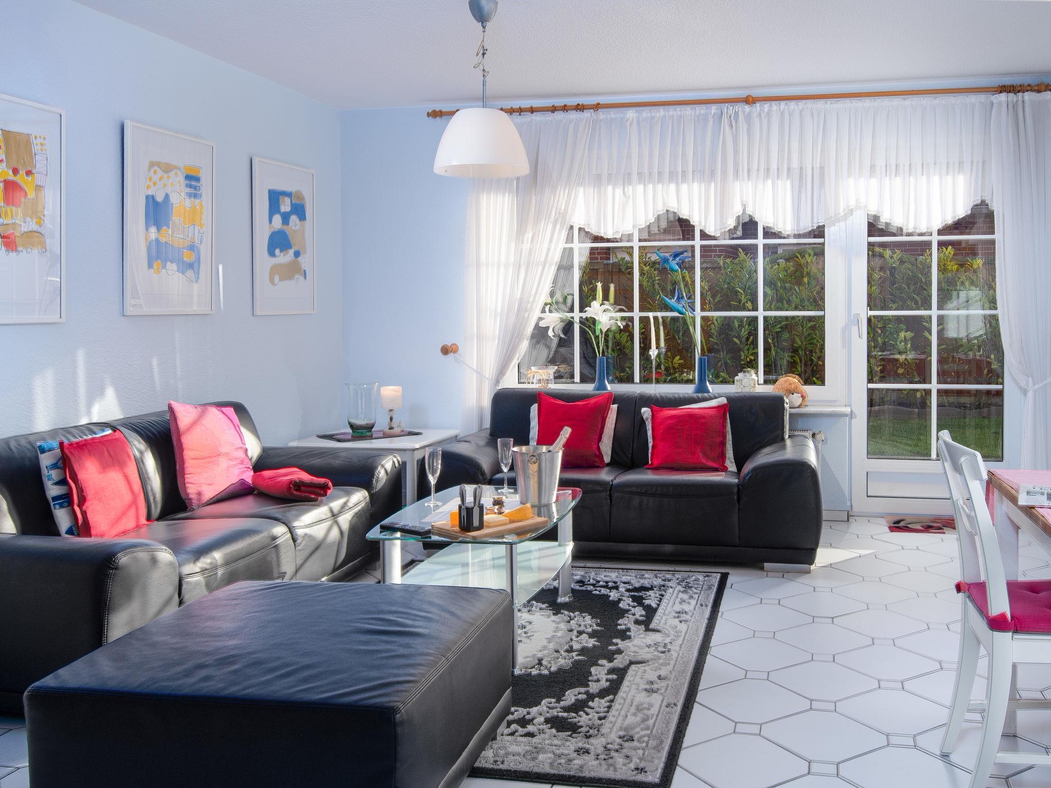 Terraced house. On the outskirts, 1.5 km from the sea, 1.5 km from the beach. In the house: storage room for bicycles, central heating system. Parking at the house. Supermarket, bakery, café 800 m, bus stop 550 m, railway station 2.1 km, ferry "Norddeich" 2.1 km, sandy beach 1.5 km, outdoor swimming pool 12 km, indoor swimming pool 750 m. Golf course (18 hole) 7.6 km, minigolf 750 m.