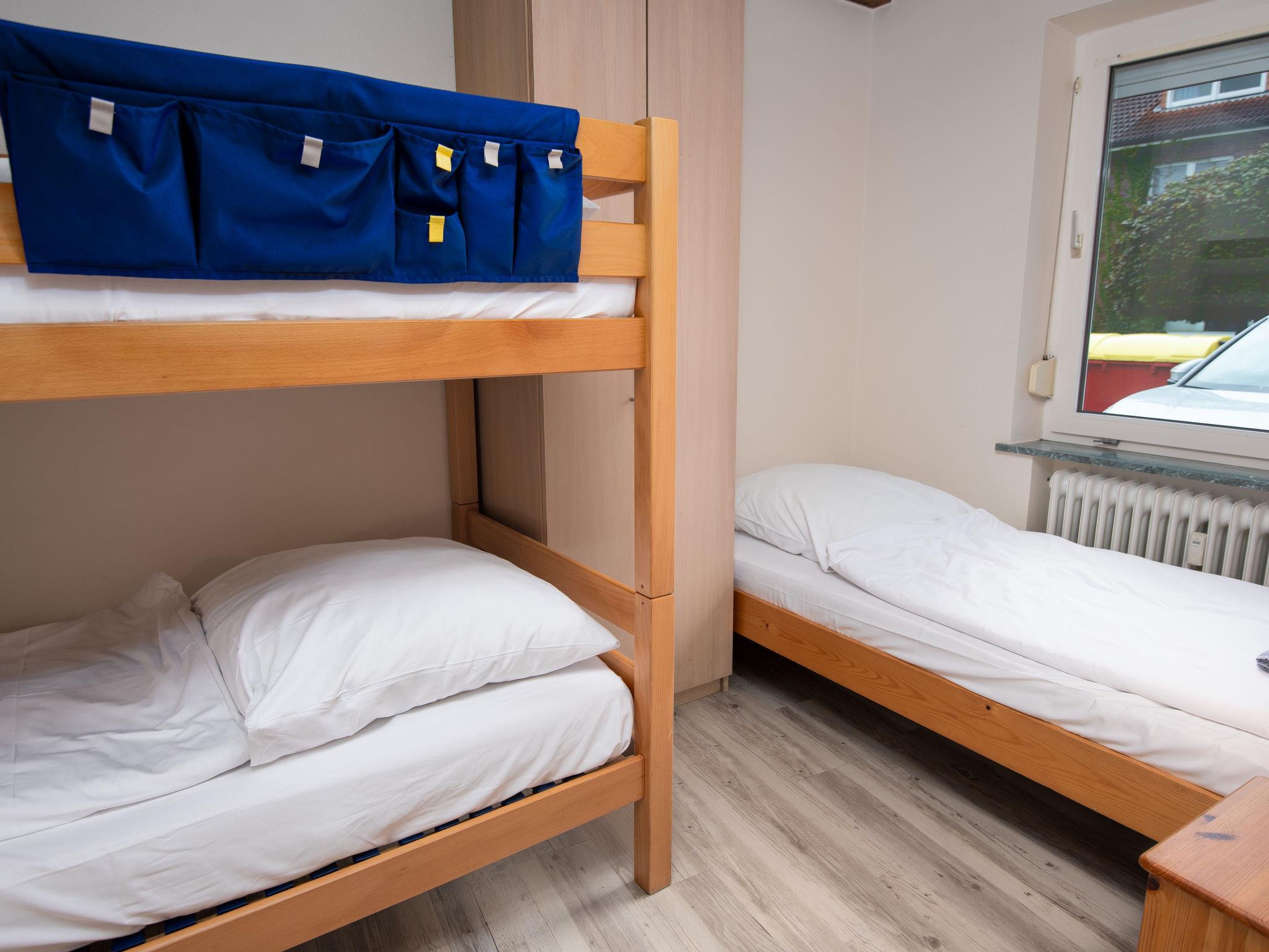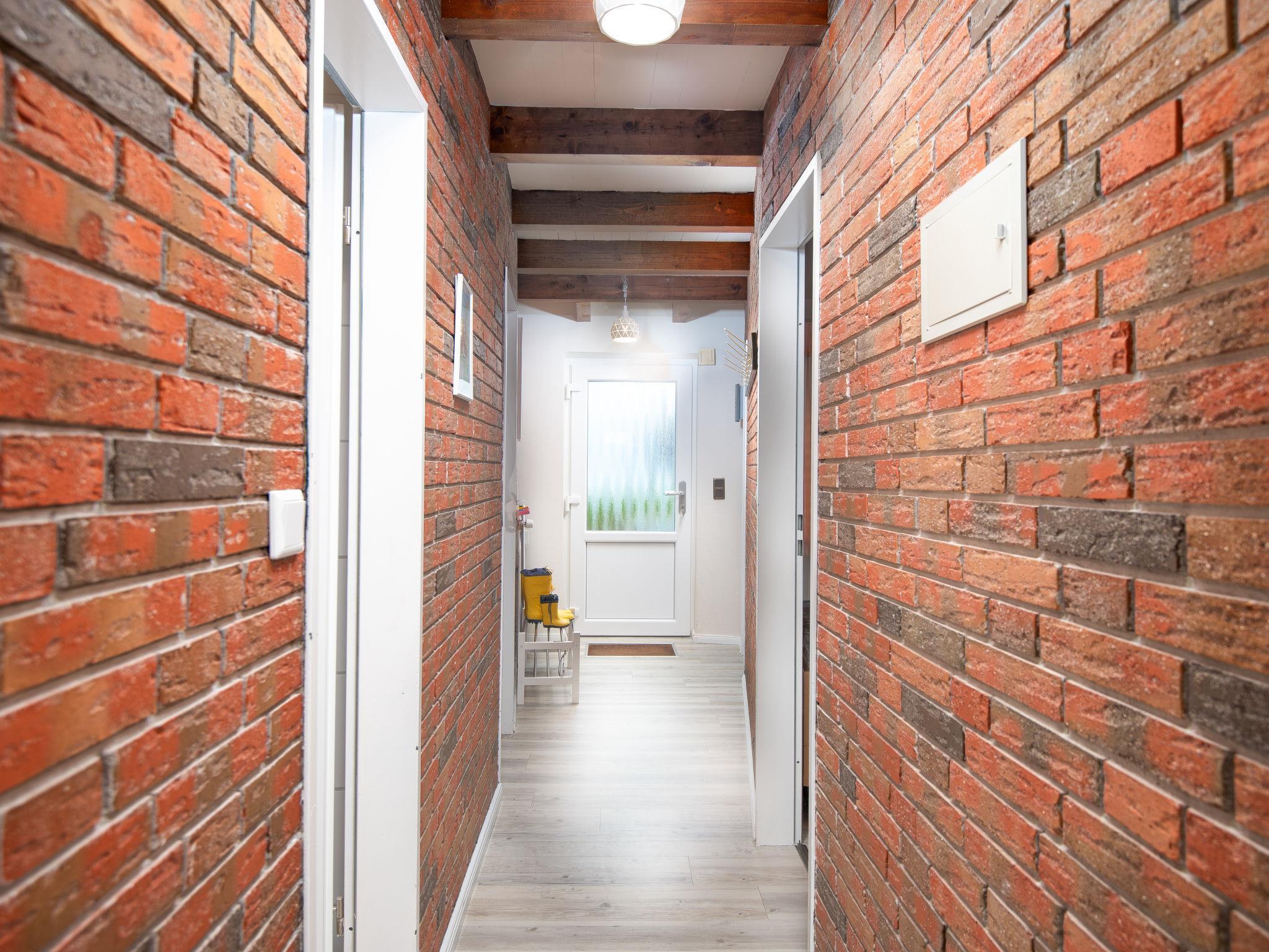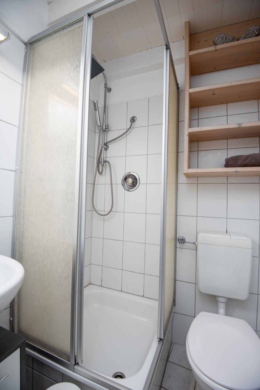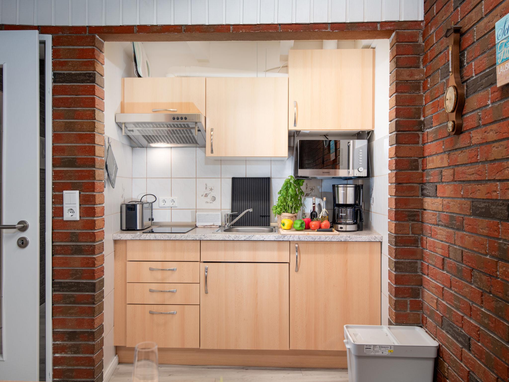 Terraced house "Muschelhaus". In the resort, 800 m from the sea, from the beach, in a cul-de-sac. For shared use: garden with lawn. In the house: central heating system, washing machine (extra), tumble dryer (for shared use, extra). Parking at the house. Supermarket 800 m, restaurant, bakery 800 m, bus stop 450 m, railway station 1.8 km, ferry 2 km, sandy beach 1.1 km, outdoor swimming pool 14 km, indoor swimming pool 850 m. Golf course (18 hole) 8 km, surf school 1 km, tennis 2 km, minigolf 800 m.