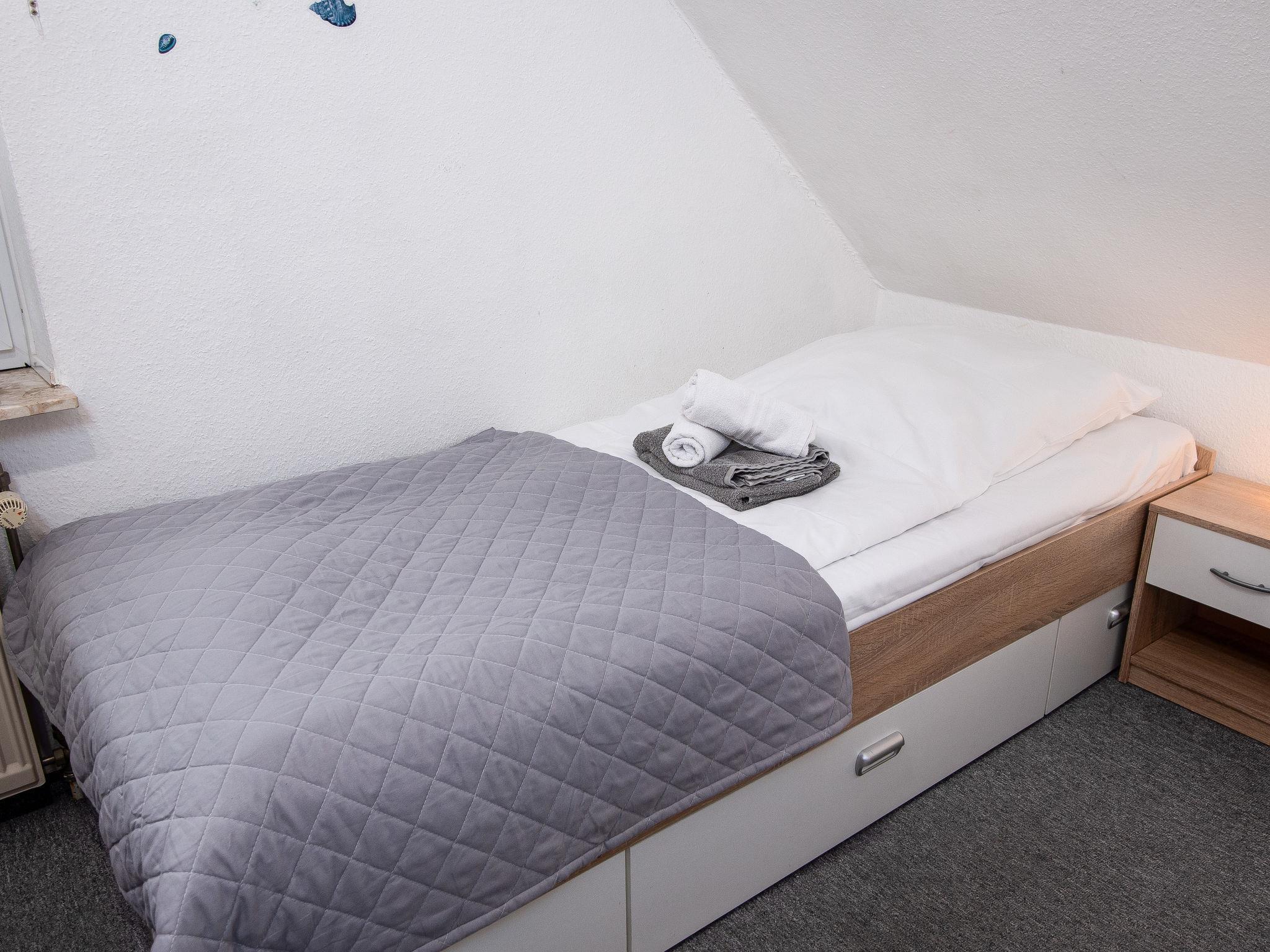 "Robbe Puck", 3-room apartment 52 m2, on the upper floor. Object suitable for 2 adults + 2 children. Simple and practical furnishings: living/dining room with sloping ceilings with dining table and cable TV (flat screen). Exit to the balcony. 1 room with sloping ceilings with 1 double bed. 1 room with sloping ceilings with 2 beds. Small kitchen (dishwasher, 4 ceramic glass hob hotplates, toaster, kettle, electric coffee machine, combination microwave). Shower/WC. Balcony. Balcony furniture. Facilities: washing machine, children's high chair, baby cot for up to 2 year olds. Internet (WiFi, free). Parking at the house. Please note: non-smokers only. Maximum 1 pet/ dog allowed.