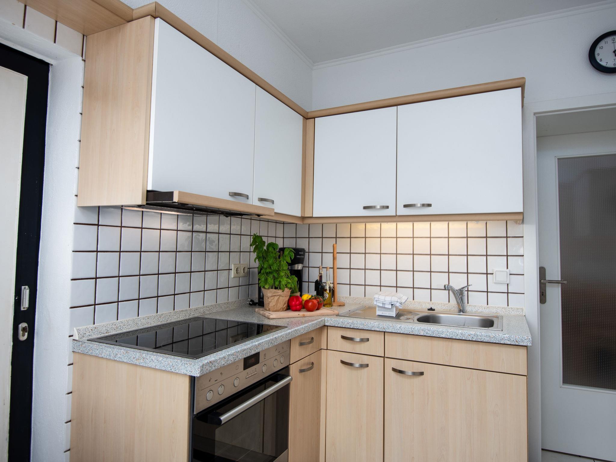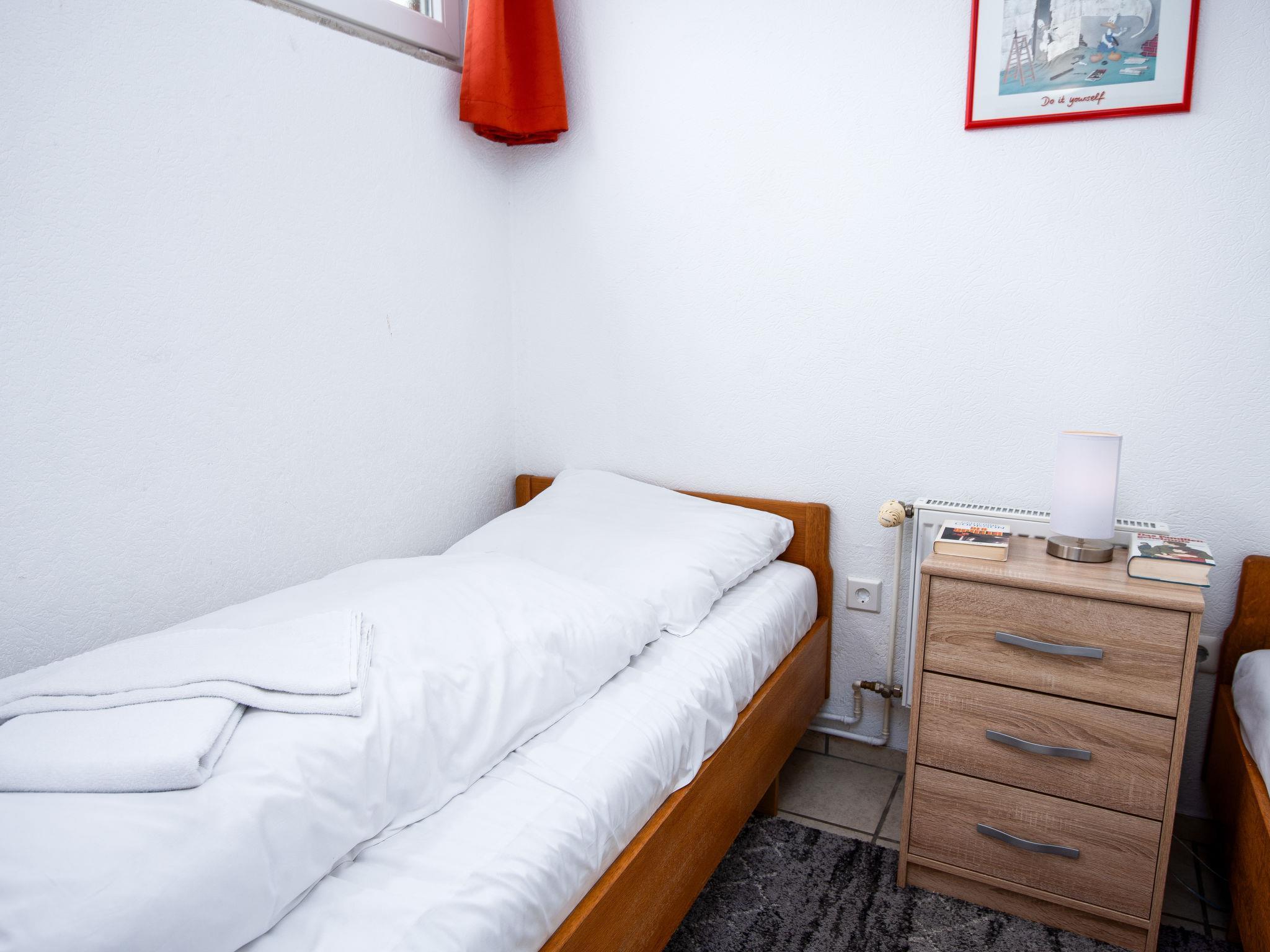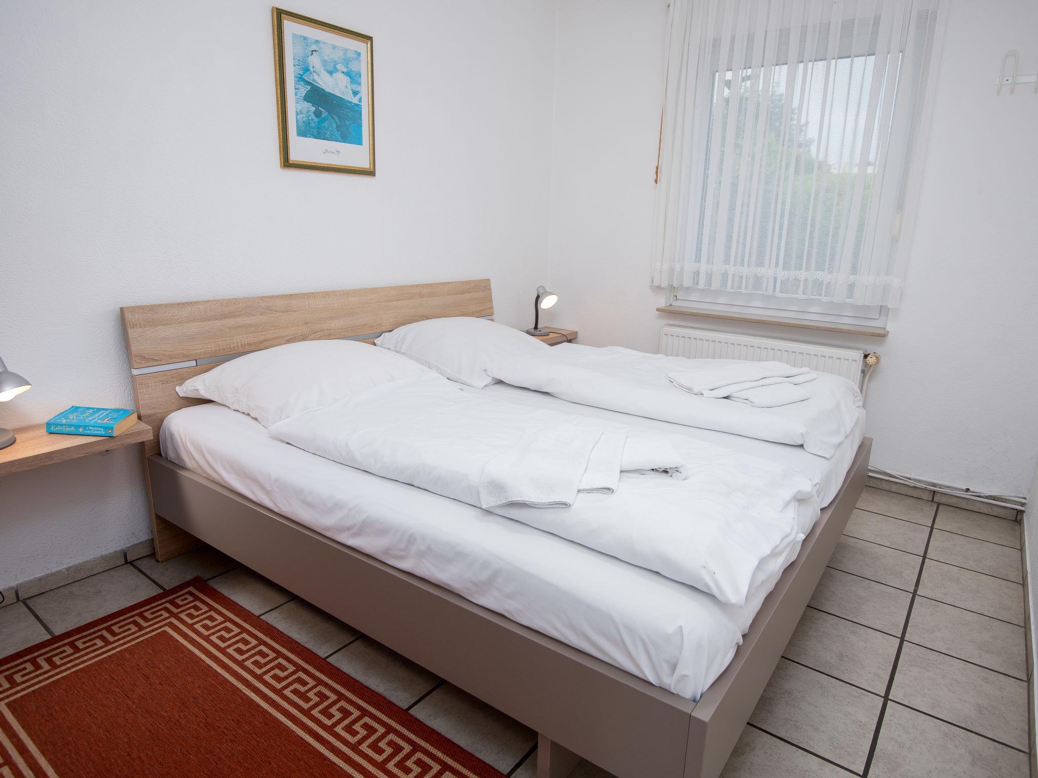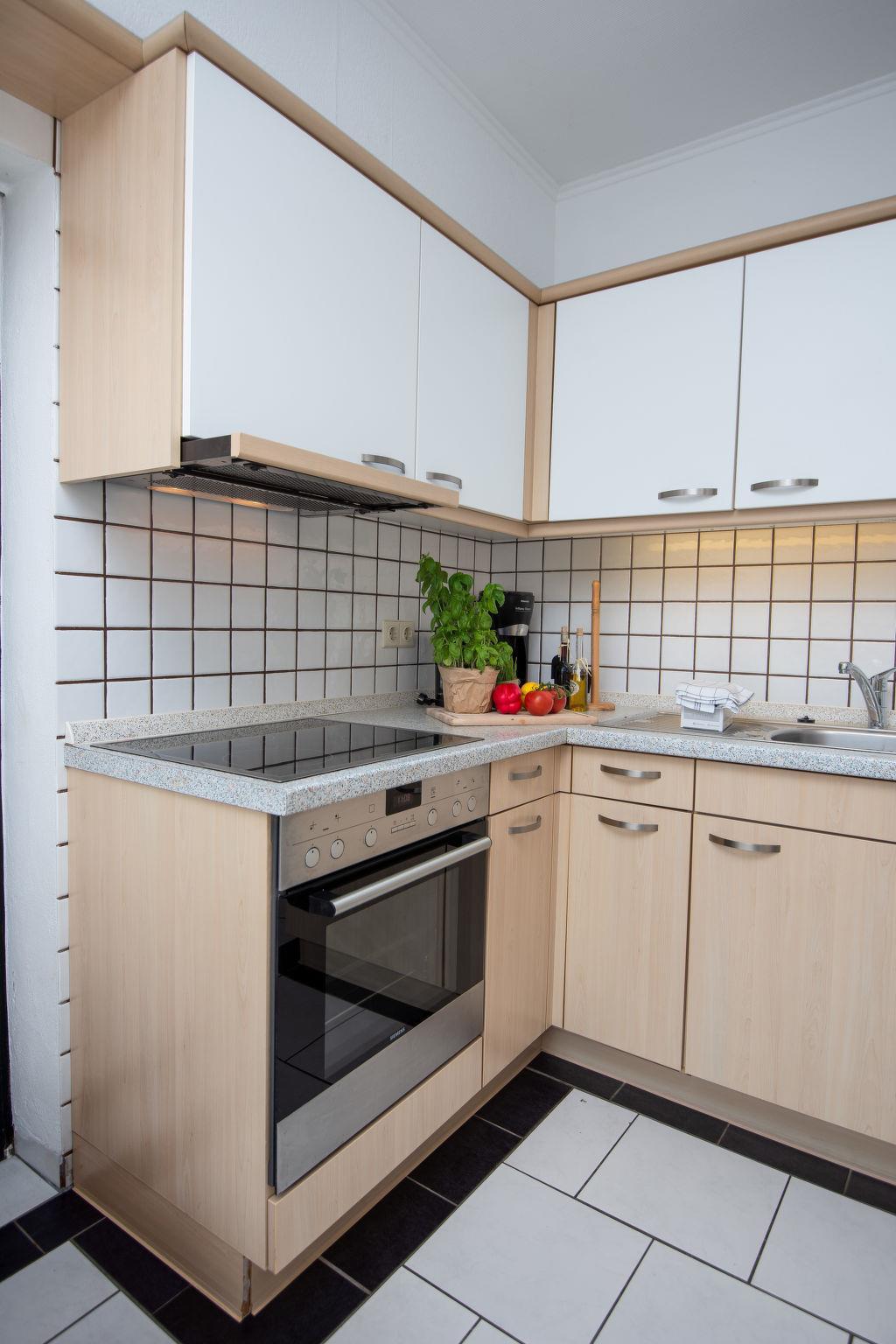 3-room terraced house 75 m2, on the ground floor. Cosy furnishings: living/dining room 27 m2 with satellite TV (flat screen), radio and CD-player. 1 room 8 m2 with 1 double bed (2 x 90 cm, length 180 cm). 1 room 6 m2 with 2 beds (90 cm, length 200 cm). Kitchen (oven, toaster, kettle, microwave, electric coffee machine). Shower/WC. Terrace 30 m2. Terrace furniture. Facilities: washing machine, children's high chair (extra), hair dryer. Internet (WiFi, free). Please note: non-smoking house. Smoke alarm. The wardrobe for the twin room is in the hall. DE1A248