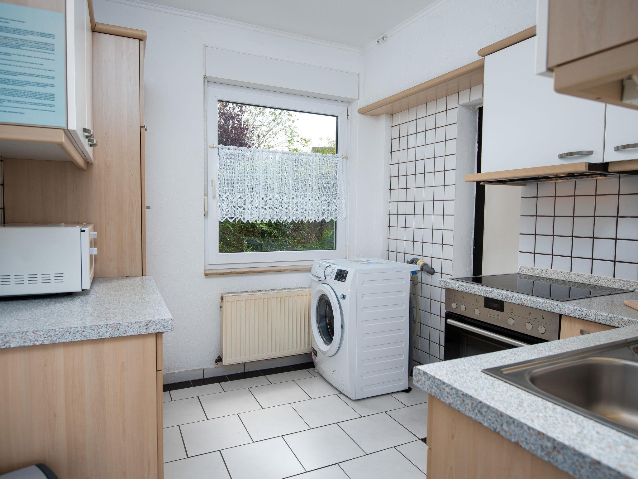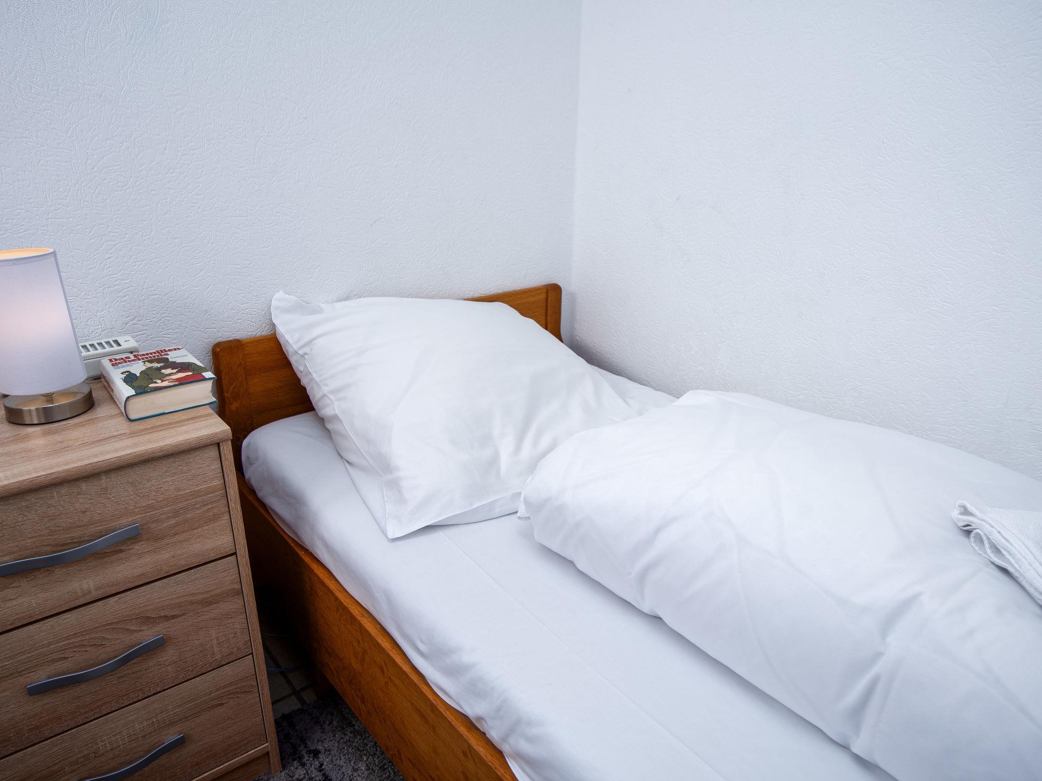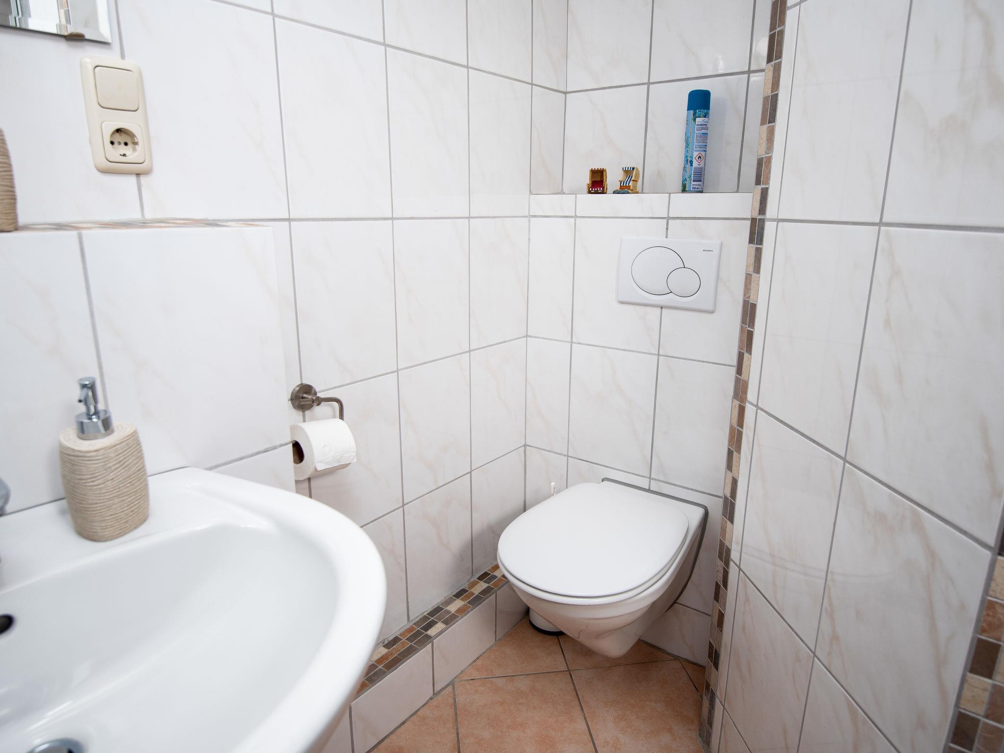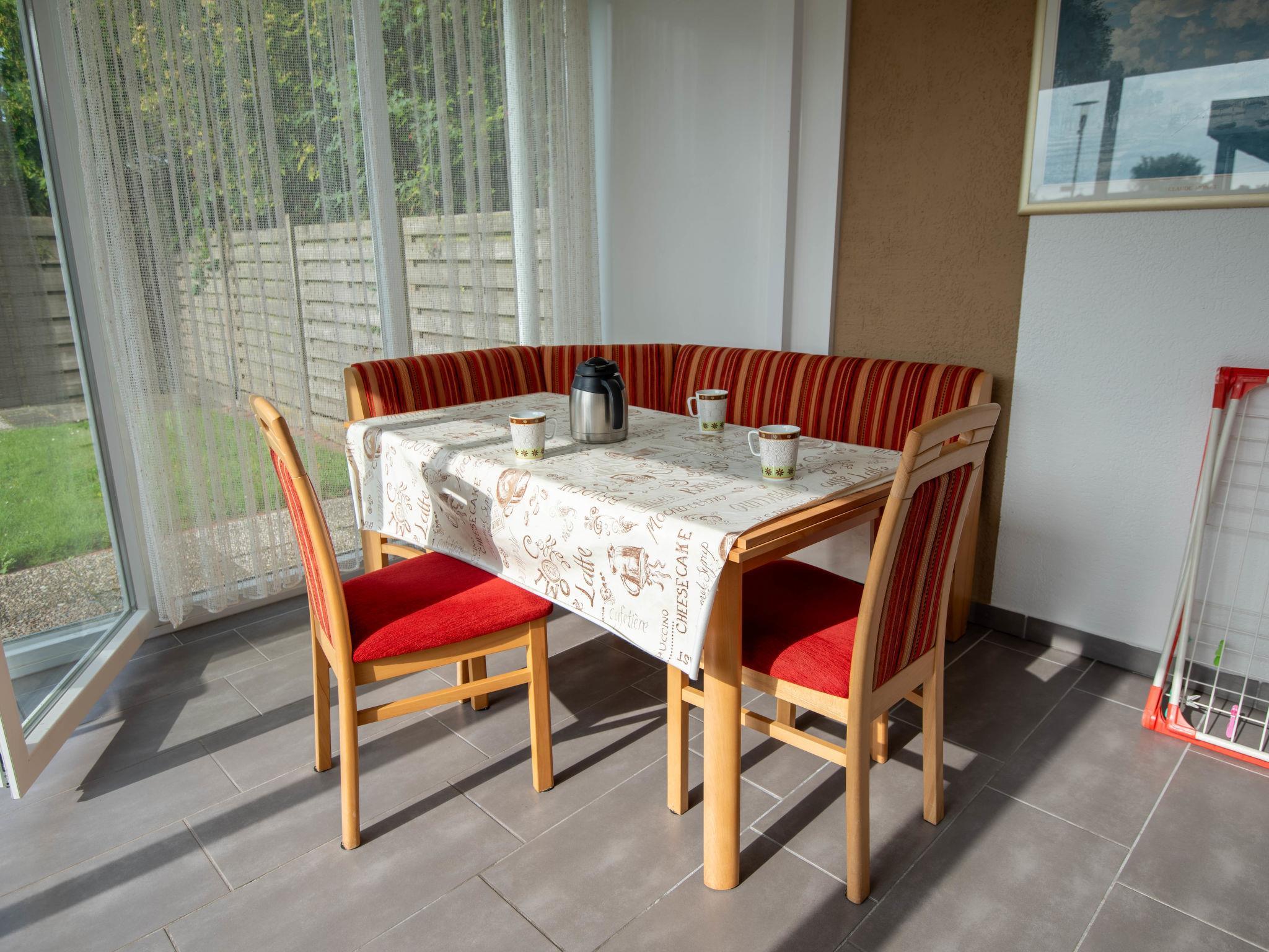 3-room terraced house 75 m2, on the ground floor. Cosy furnishings: living/dining room 27 m2 with satellite TV (flat screen), radio and CD-player. 1 room 8 m2 with 1 double bed (2 x 90 cm, length 180 cm). 1 room 6 m2 with 2 beds (90 cm, length 200 cm). Kitchen (oven, toaster, kettle, microwave, electric coffee machine). Shower/WC. Terrace 30 m2. Terrace furniture. Facilities: washing machine, children's high chair (extra), hair dryer. Internet (WiFi, free). Please note: non-smoking house. Smoke alarm. The wardrobe for the twin room is in the hall. DE1A248