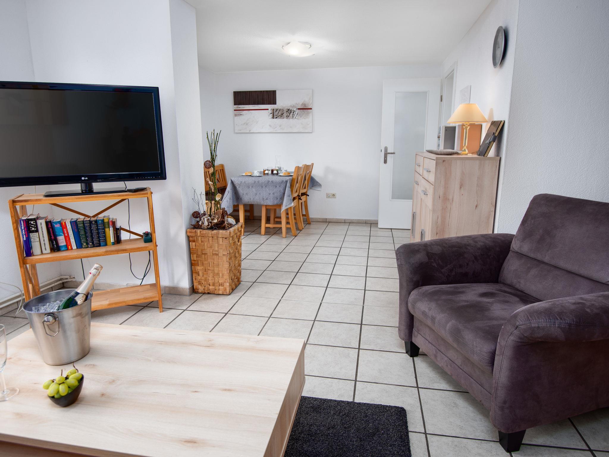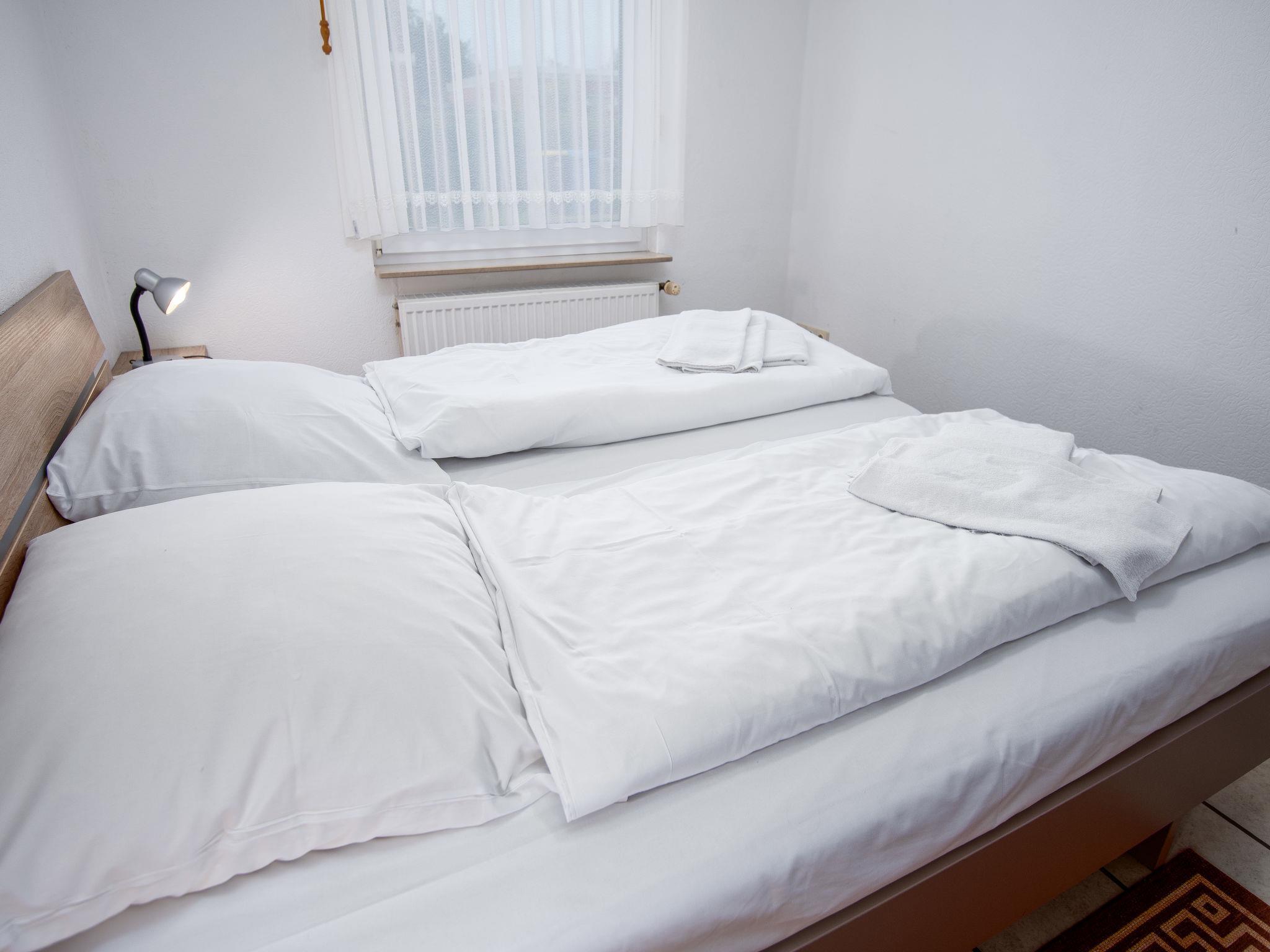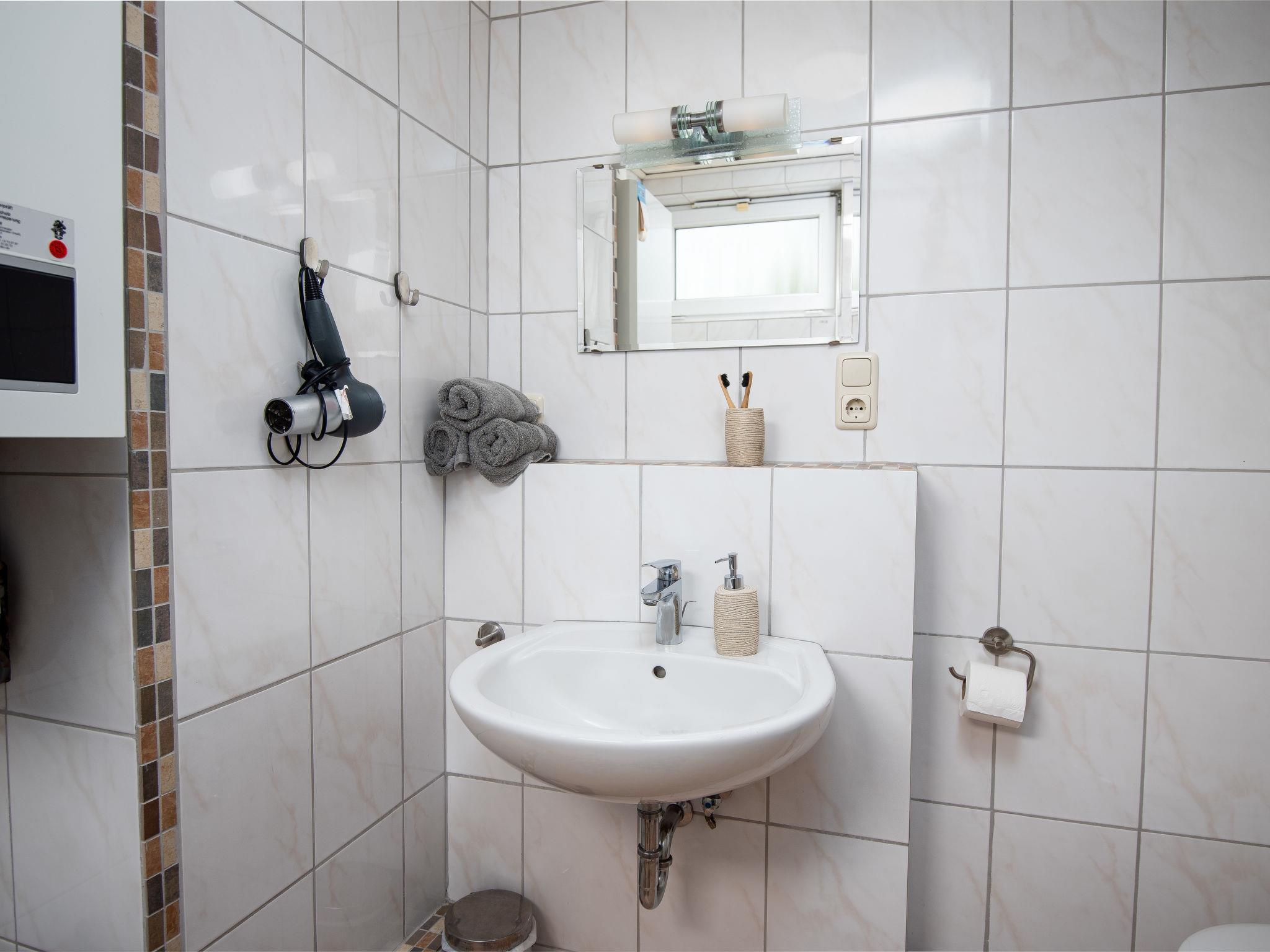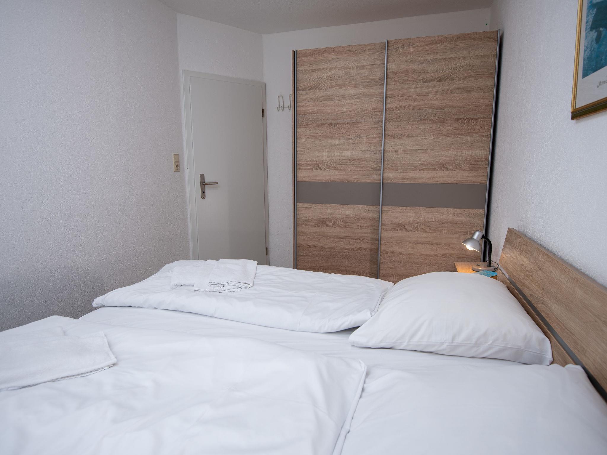 3-room terraced house 75 m2, on the ground floor. Cosy furnishings: living/dining room 27 m2 with satellite TV (flat screen), radio and CD-player. 1 room 8 m2 with 1 double bed (2 x 90 cm, length 180 cm). 1 room 6 m2 with 2 beds (90 cm, length 200 cm). Kitchen (oven, toaster, kettle, microwave, electric coffee machine). Shower/WC. Terrace 30 m2. Terrace furniture. Facilities: washing machine, children's high chair (extra), hair dryer. Internet (WiFi, free). Please note: non-smoking house. Smoke alarm. The wardrobe for the twin room is in the hall. DE1A248