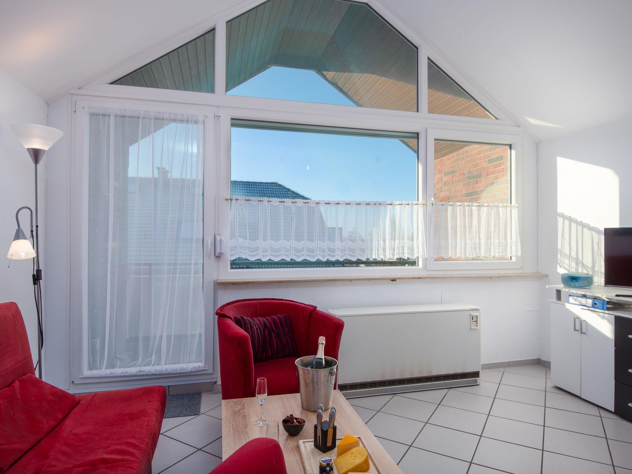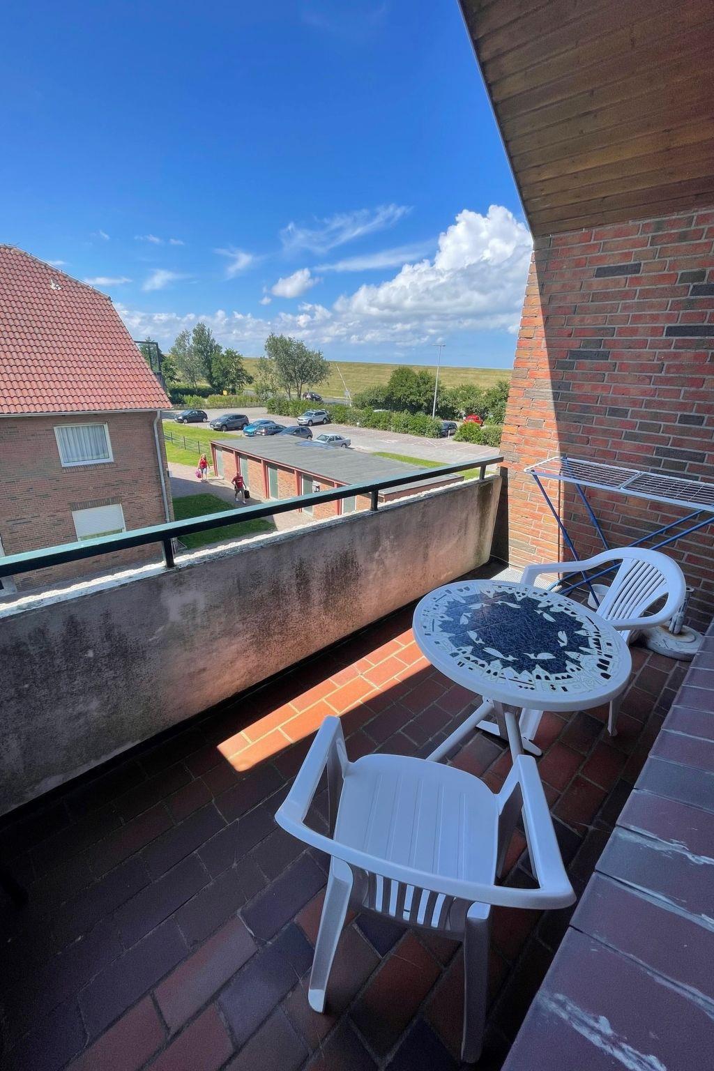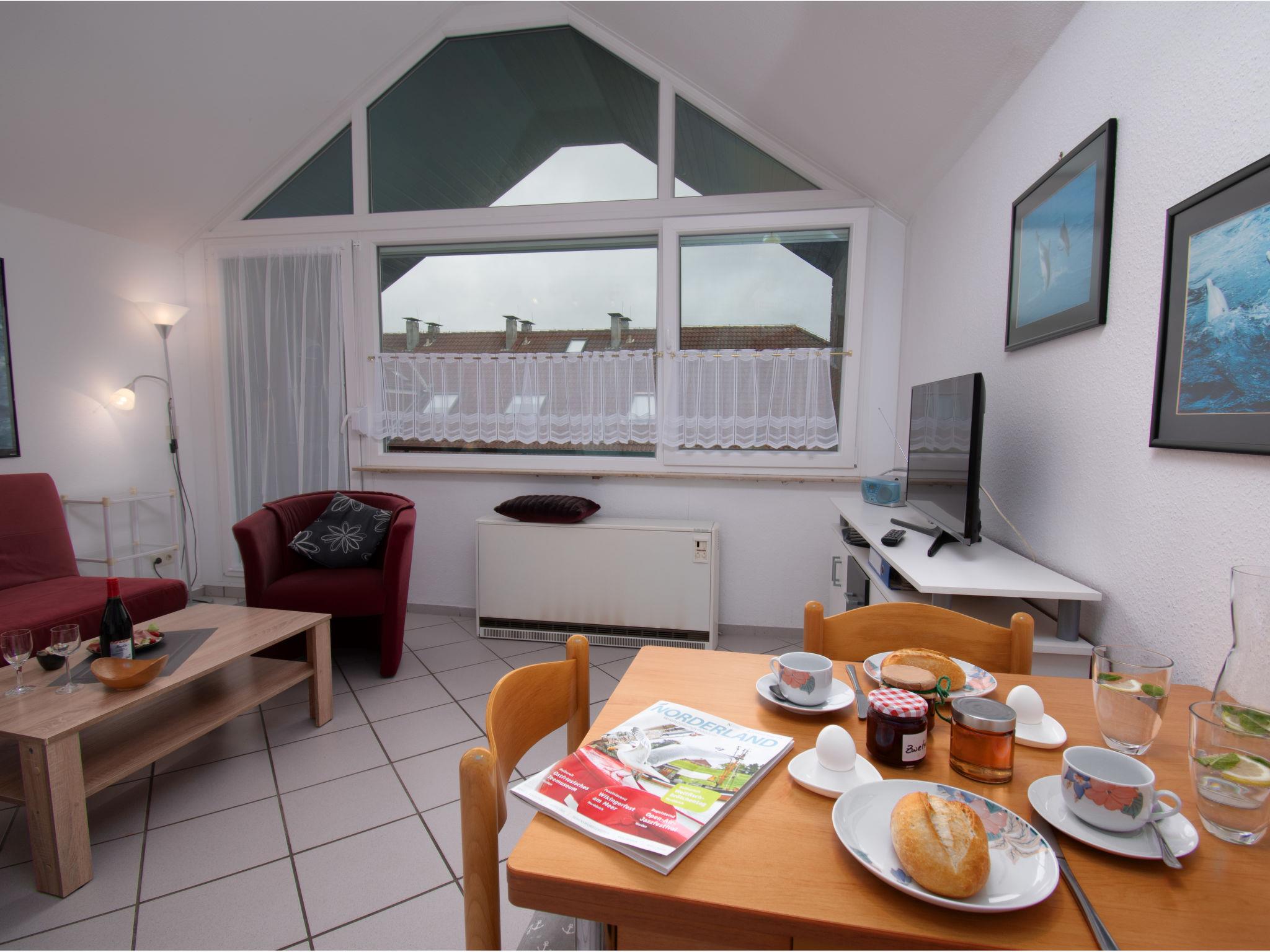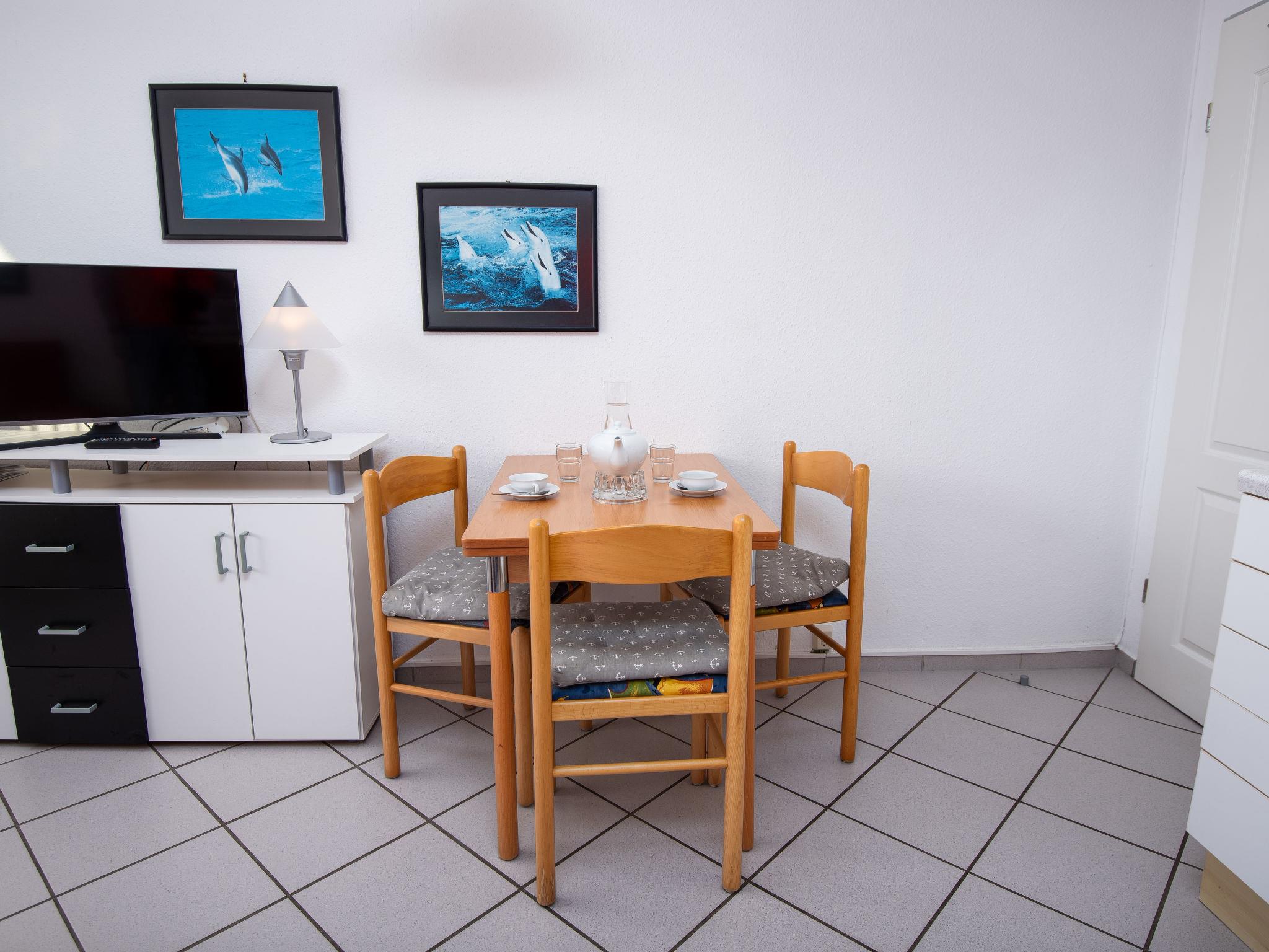 "Am Deich", 1-room apartment 30 m2 on 2nd floor. Bright, cosy furnishings: living/dining room 18 m2 with 1 double sofabed (145 cm, length 200 cm), satellite TV (flat screen), hi-fi system. Exit to the balcony. Kitchenette (mini-oven, 4 ceramic glass hob hotplates, toaster, kettle, microwave, electric coffee machine). Shower/WC. Balcony 6 m2. Balcony furniture. Facilities: children's high chair (extra). Please note: fridge without freezer, non-smokers only. Maximum 1 small pet/ dog allowed. Smoke alarm. The double sofa bed is a sofa bed in the living room. There is no bedroom. This apartment is therefore not suitable for elderly or mobility-impaired people.