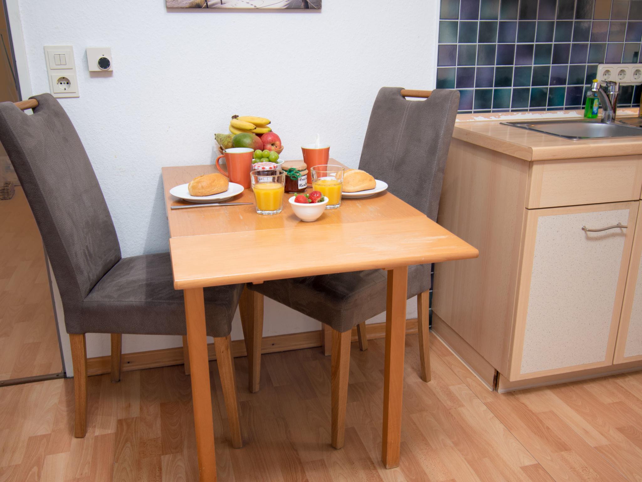 "Düne", 2-room apartment 40 m2, on the ground floor. Object suitable for 2 adults + 1 child. Cosy furnishings: living/dining room 18 m2 with 1 sofabed (130 cm, length 200 cm), satellite TV and radio. 1 room 9 m2 with 1 double bed (2 x 80 cm, length 190 cm). Kitchenette (4 hot plates, toaster, kettle, electric coffee machine) with dining table. Shower/WC. Terrace, 9 m2. Terrace furniture. View of. Facilities: children's high chair (extra). Internet (WiFi, free). Please note: fridge without freezer, non-smokers only. Maximum 2 small pets/ dogs allowed. Smoke alarm.