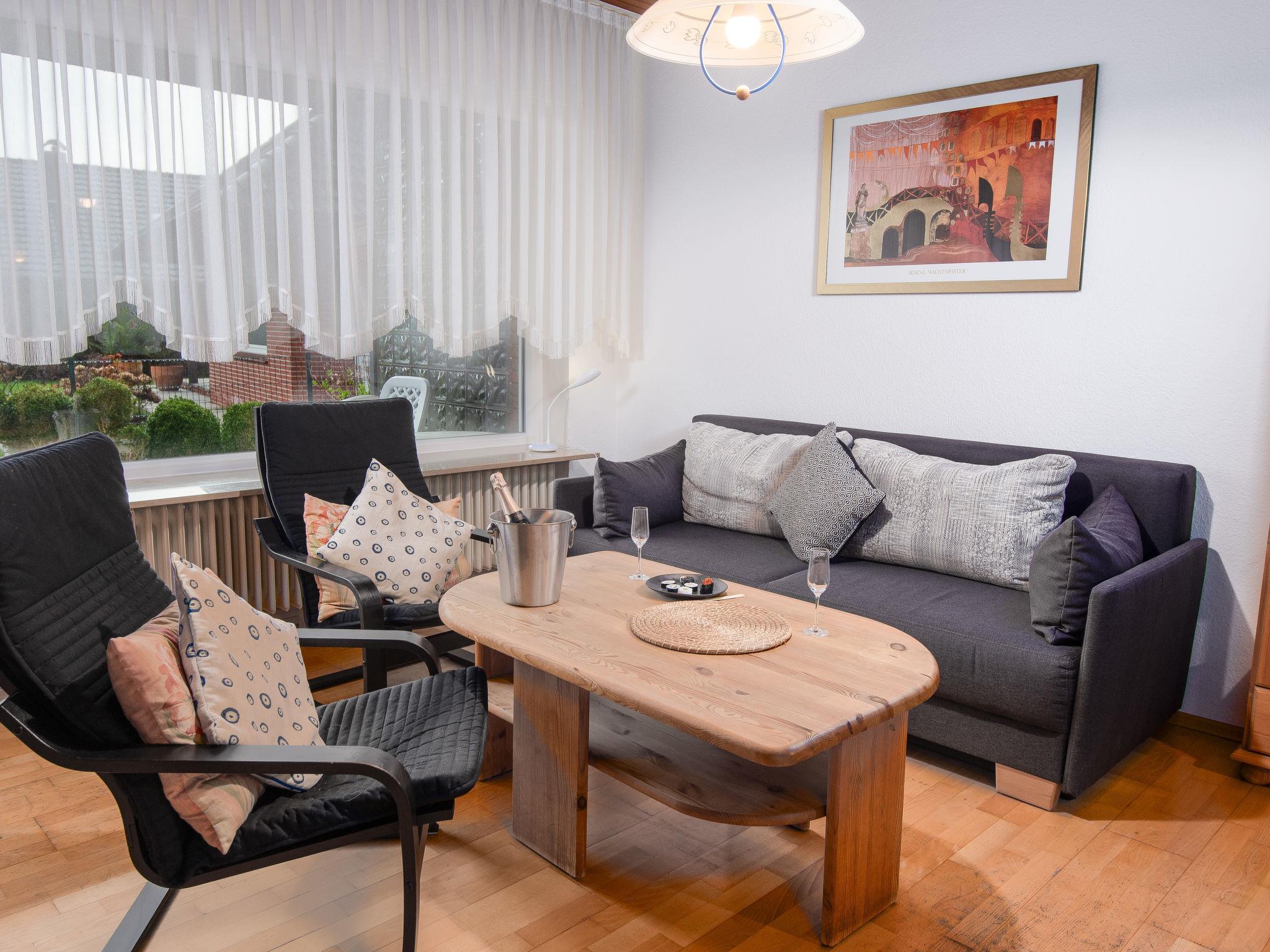 "Ebbe", 3-room apartment 68 m2, on the ground floor. Object suitable for 2 adults + 2 children. Practical furnishings: living/dining room 29 m2 with cable TV (flat screen), hi-fi system and DVD. Exit to the terrace. 1 room 12 m2 with 1 double bed (2 x 90 cm, length 200 cm). 1 room 7 m2 with 1 x 2 bunk beds. Kitchenette (4 hot plates, oven, toaster, kettle, microwave, electric coffee machine). Shower/WC. Terrace 5 m2. Terrace furniture. Facilities: children's high chair (extra). Internet (WiFi, free). Please note: non-smokers only. Maximum 2 small pets/ dogs allowed. Smoke alarm.