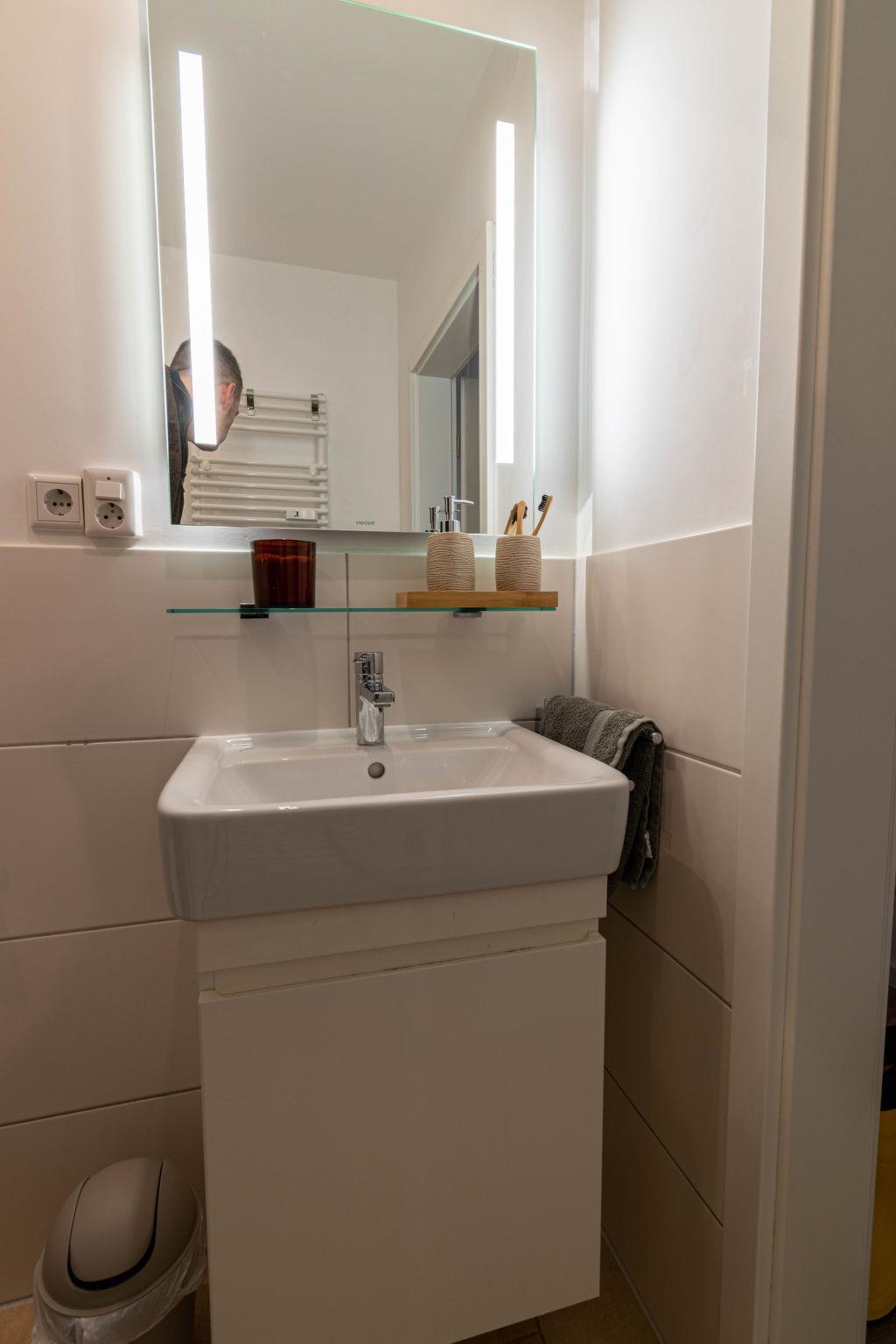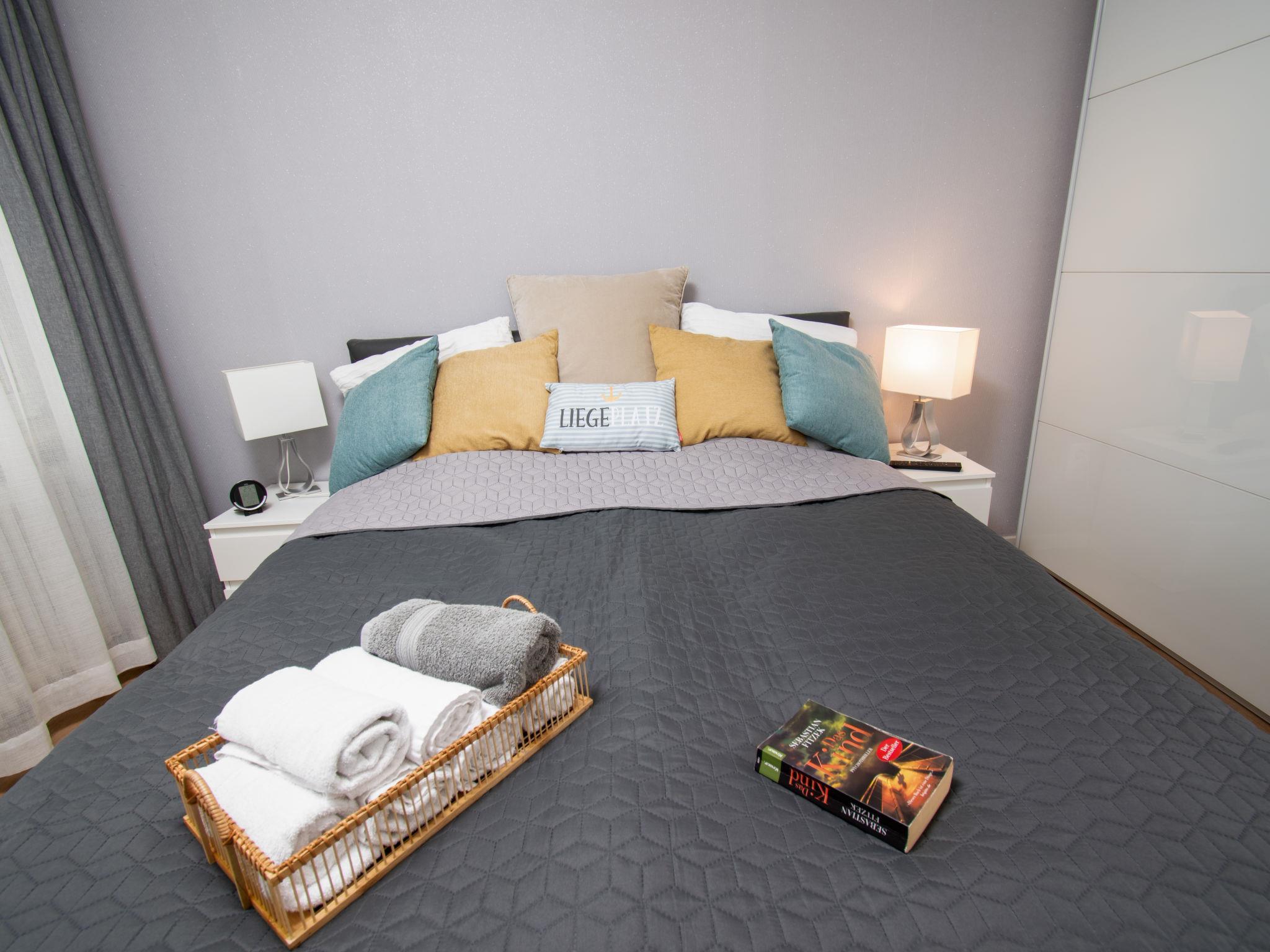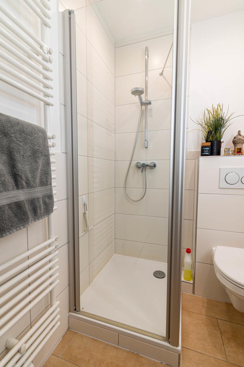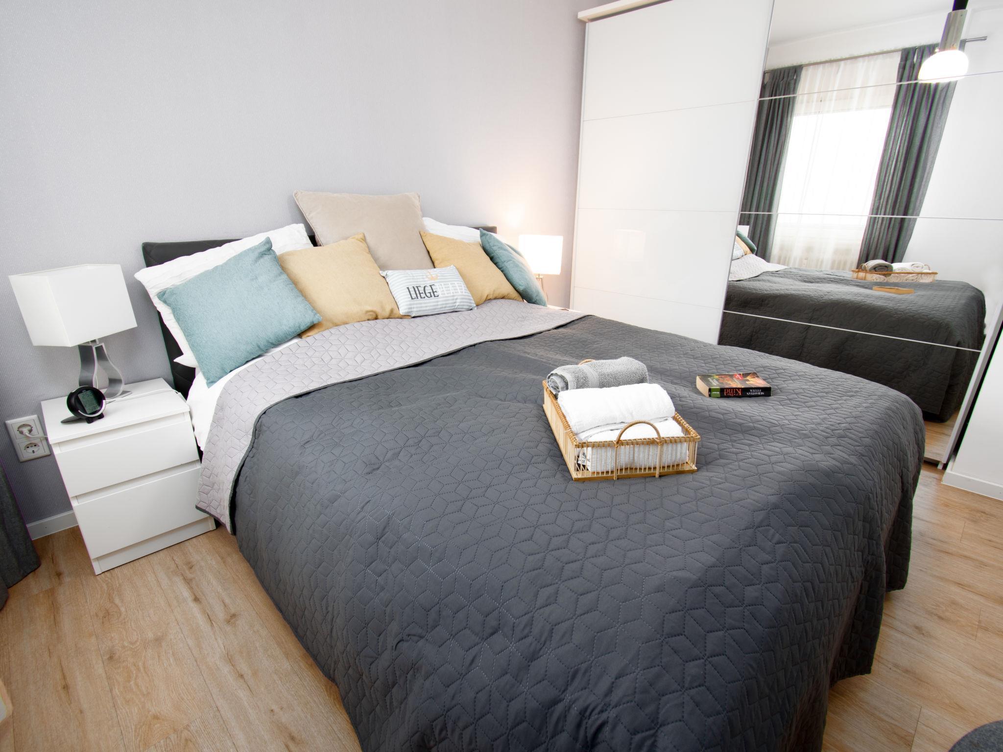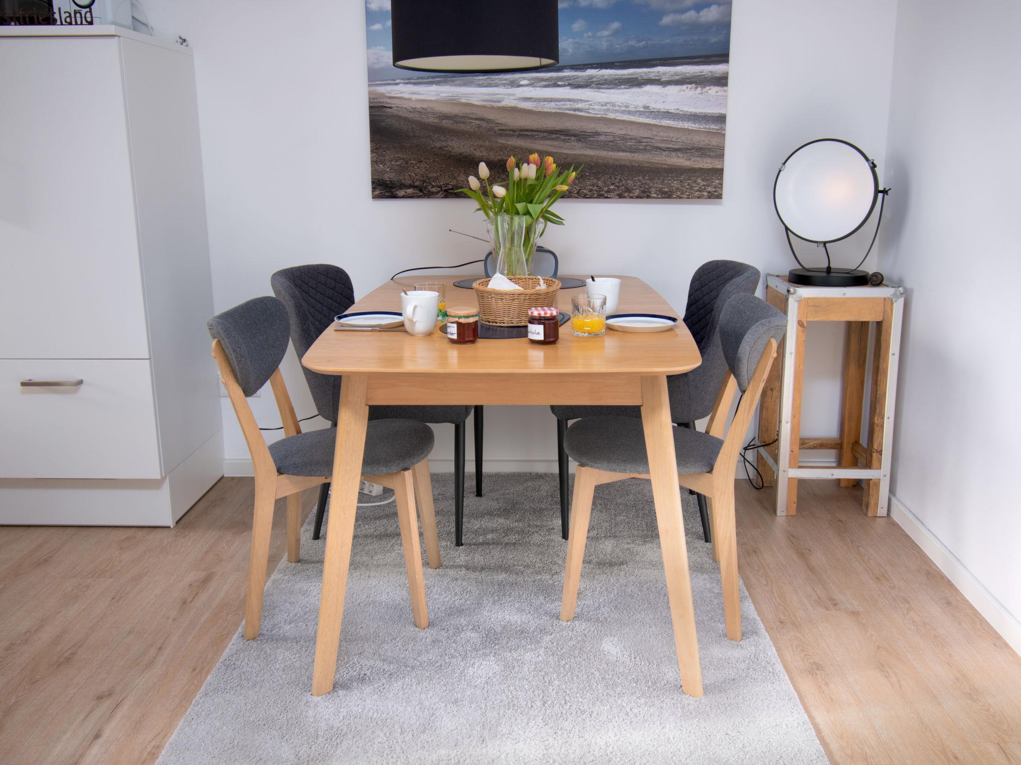 "Gezeiten", 3-room apartment 55 m2 on 1st floor. Tasteful furnishings: living/dining room 16 m2 with satellite TV (flat screen). Exit to the balcony. 1 room 8 m2 with 1 double bed (160 cm, length 200 cm), satellite TV (flat screen). 1 room 3 m2, without window with 1 bed (90 cm, length 180 cm). Kitchenette (oven, dishwasher, 4 ceramic glass hob hotplates, toaster, kettle, microwave, electric coffee machine). Shower/WC. Balcony furniture, electric barbecue. Facilities: children's high chair (extra). Internet (WiFi, free). Please note: non-smokers only. Smoke alarm.