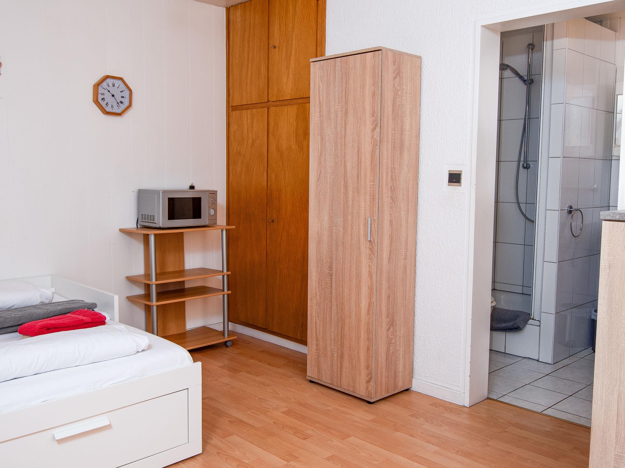 "Schwalbennest II", 1-room apartment 20 m2, on the ground floor. Very simple furnishings: living/dining room 16 m2 with 1 double bed (180 cm, length 200 cm), digital TV, flat screen and radio. Small kitchenette in the entrance 3 m2 (2 hot plates, dishwasher, toaster, kettle, microwave, electric coffee machine). Shower/WC. Balcony furniture, sitting area. Facilities: children's high chair (extra). Parking at the house. Please note: fridge without freezer, non-smokers only. Maximum 1 small pet/ dog allowed. There is no separate bedroom. This apartment is not suitable for elderly or mobility-impaired people.
