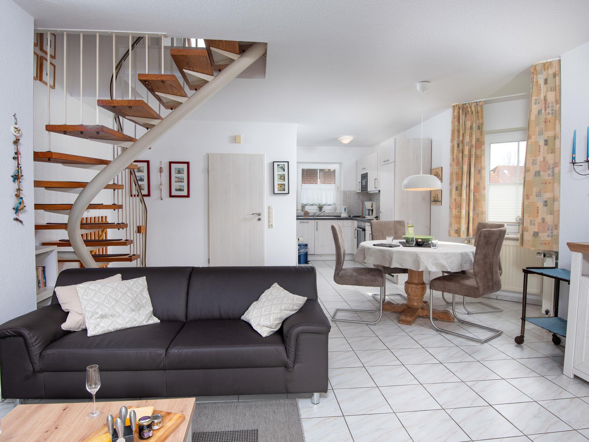 Beautiful semi-detached house. In the resort, in a quiet position, 1.5 km from the sea, 1.5 km from the beach. Private: large garden. In the house: central heating system. Parking at the house. Supermarket 900 m, restaurant 1 km, bakery 600 m, café 1 km, bus stop 600 m, railway station 2 km, ferry 2 km, sandy beach 1.5 km, outdoor swimming pool 14 km, indoor swimming pool. Golf course (18 hole) 8 km.