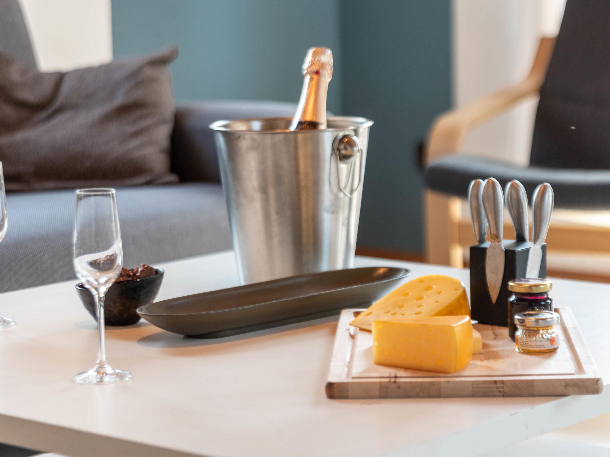 "Riedehuus", 5-room house 120 m2 on 2 levels, on the ground floor. Living room 21 m2 with open-hearth fireplace and cable TV (flat screen), DVD. Open dining room. 1 room 12 m2 with 1 double bed (2 x 90 cm, length 200 cm). Kitchen 7 m2 (oven, dishwasher, 4 ceramic glass hob hotplates, toaster, kettle, microwave, electric coffee machine). Shower/WC. Upper floor: (spiral staircase), 1 room 21 m2, with sloping ceilings with 1 double bed (2 x 80 cm, length 200 cm), cable TV (flat screen). 1 room 14 m2, with sloping ceilings with 2 beds (90 cm, length 200 cm). Bath/WC. Terrace 16 m2, large garden. Terrace furniture. Facilities: washing machine (extra), iron, children's high chair (extra). Internet (WiFi, free). Please note: non-smoking house. Maximum 1 pet/ dog allowed. Smoke alarm.