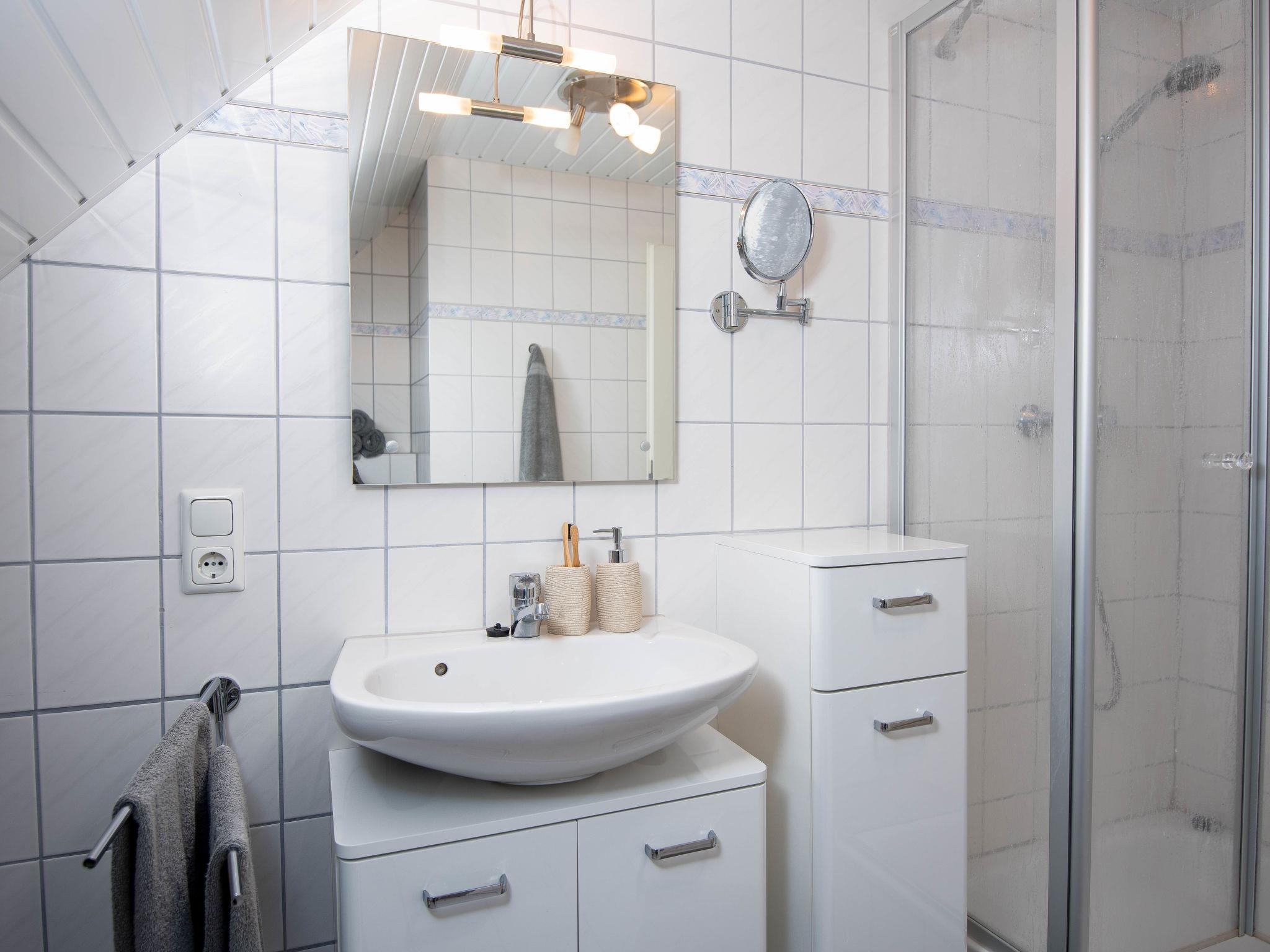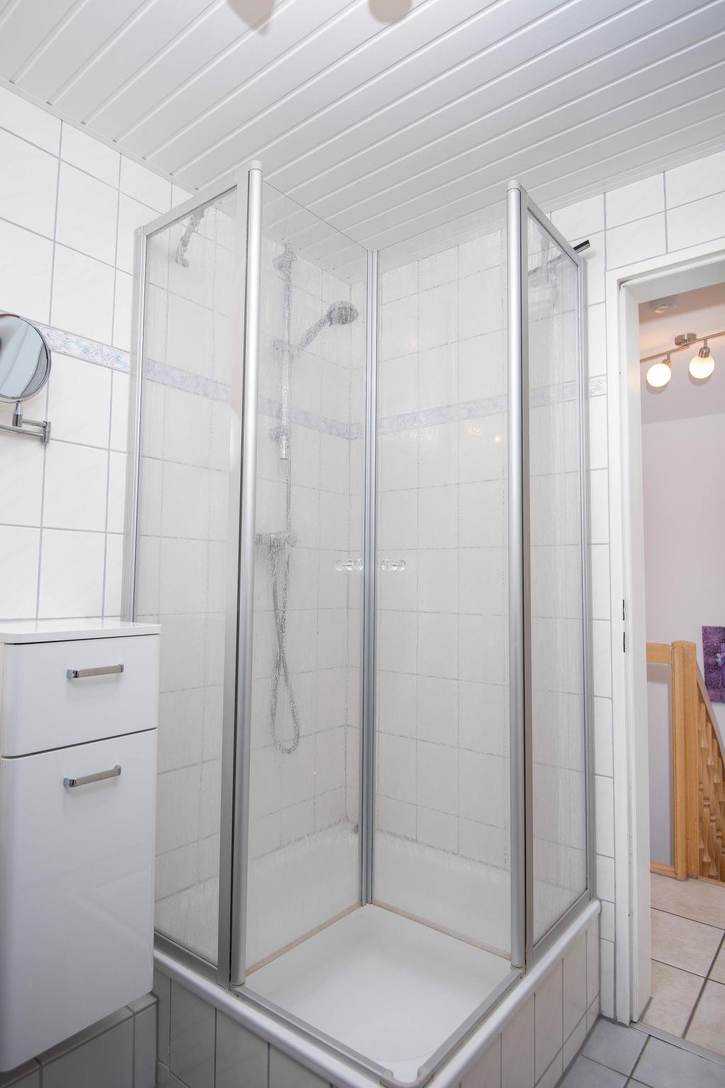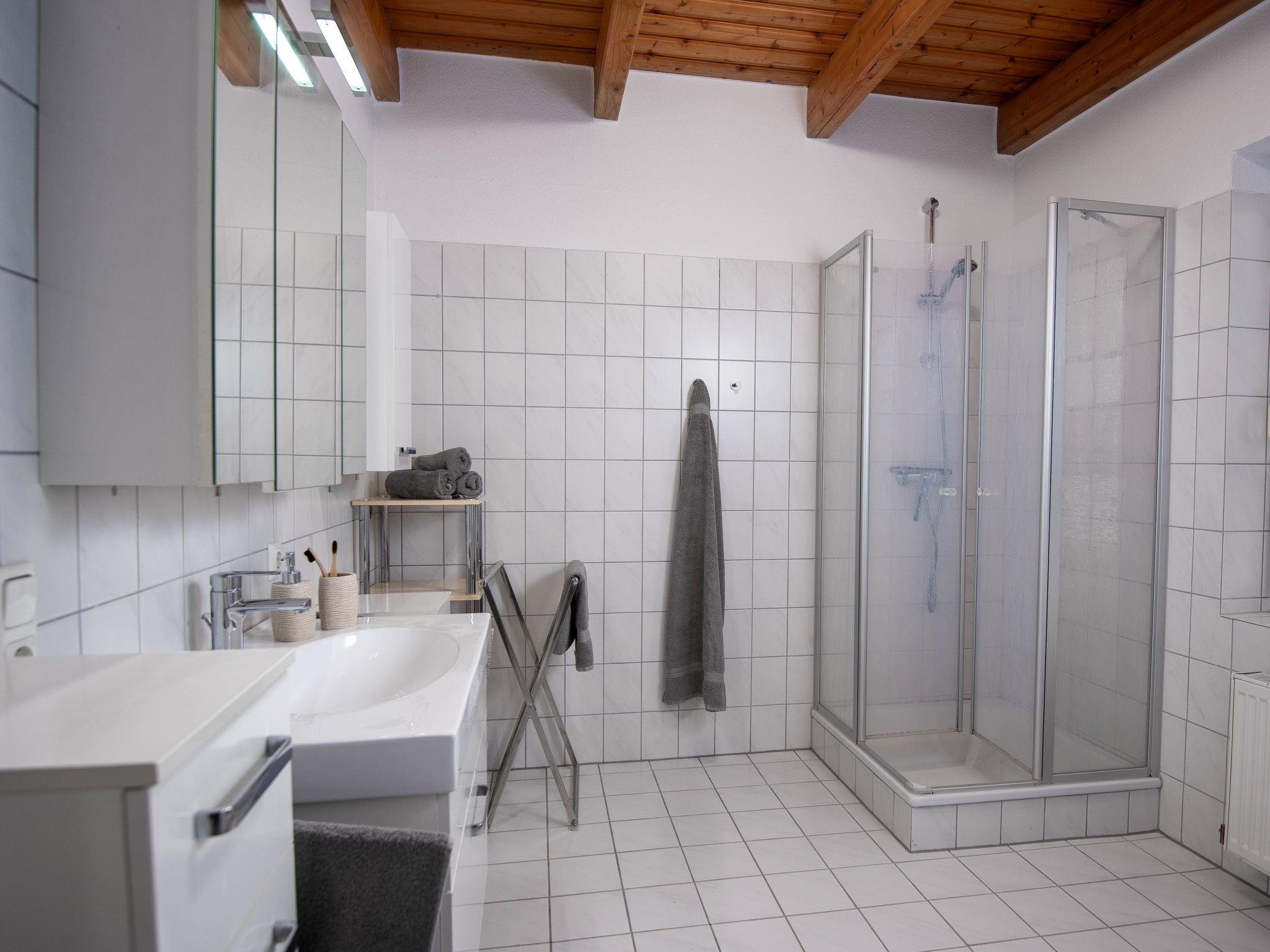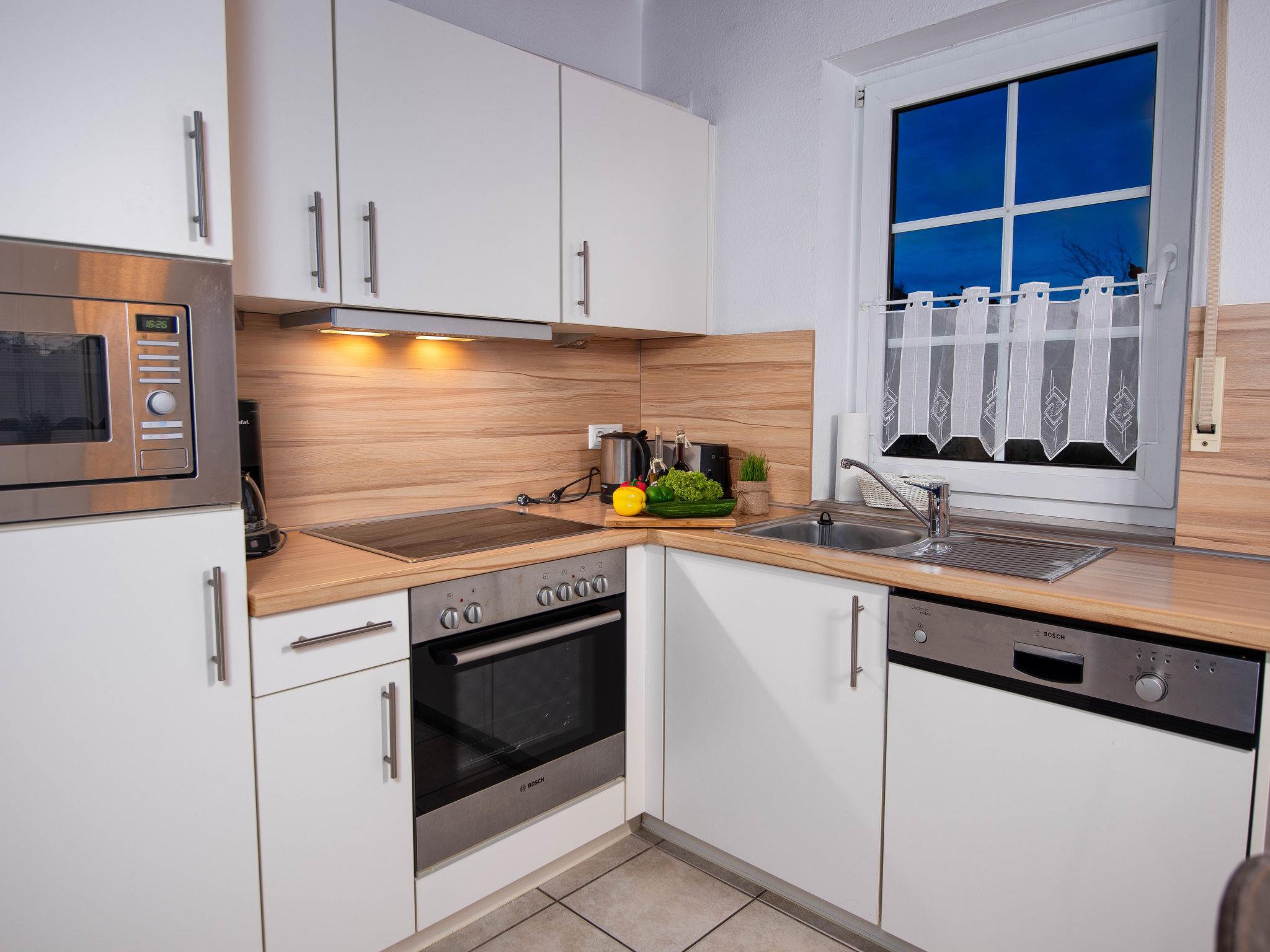 "Martina", 4-room semi-detached house 100 m2 on 2 levels, on the ground floor. Comfortable and tasteful furnishings: living/dining room 21 m2 with satellite TV (flat screen), hi-fi system. Exit to the terrace. 1 room 11 m2 with 1 double bed (2 x 90 cm, length 200 cm). Kitchenette (oven, dishwasher, 4 ceramic glass hob hotplates, toaster, kettle, microwave, electric coffee machine). Shower/WC. Upper floor: 1 room 9 m2, with sloping ceilings with 1 double bed (2 x 90 cm, length 200 cm), satellite TV (flat screen), DVD. 1 room 10 m2, with sloping ceilings with 2 beds (90 cm, length 200 cm). Shower/WC. Terrace 20 m2, roofed. Terrace furniture, barbecue. Facilities: children's high chair (extra). Internet (WiFi, free). Blu-ray player. Please note: non-smoking house. Smoke alarm. Bicycle stand available.