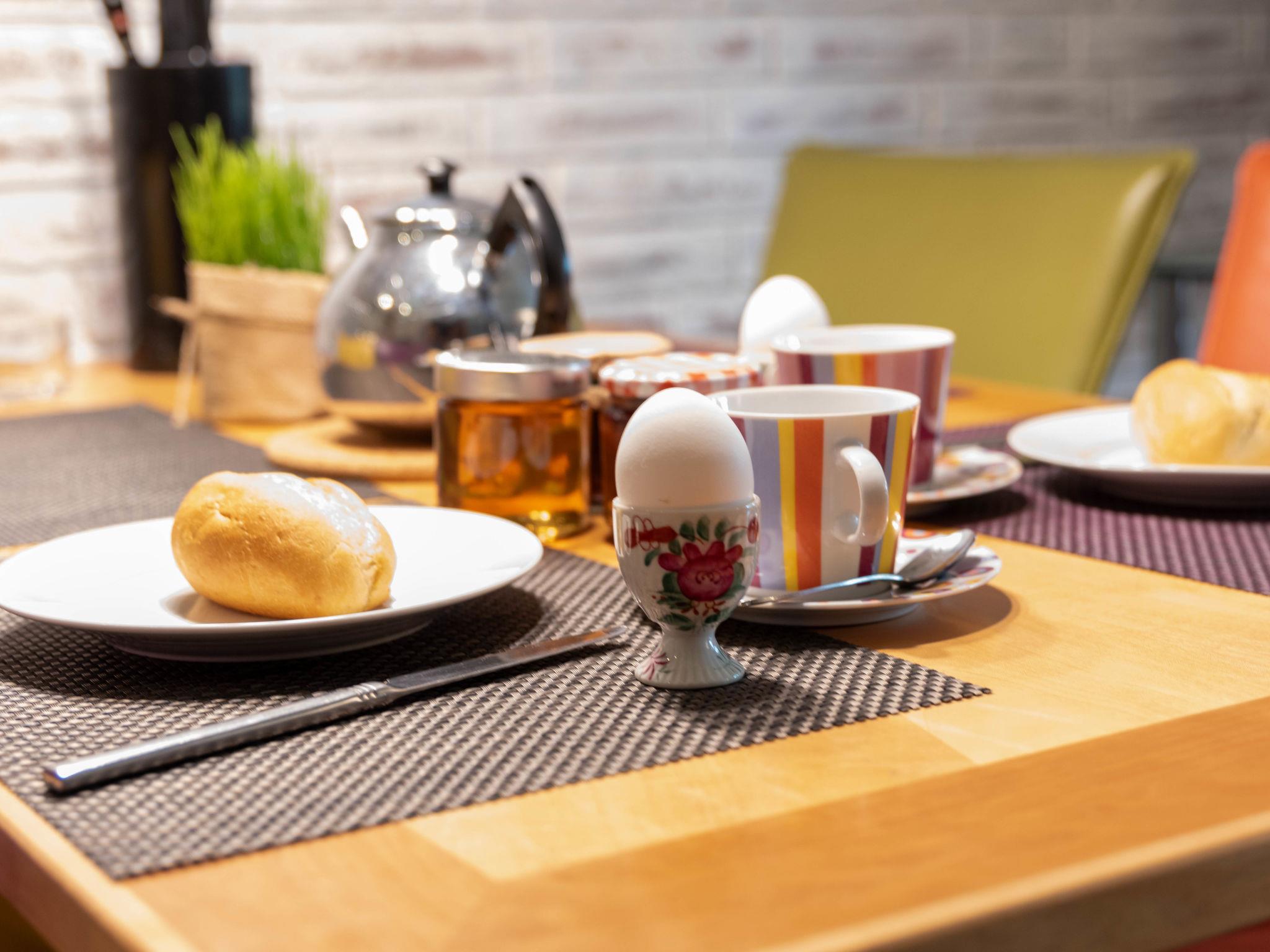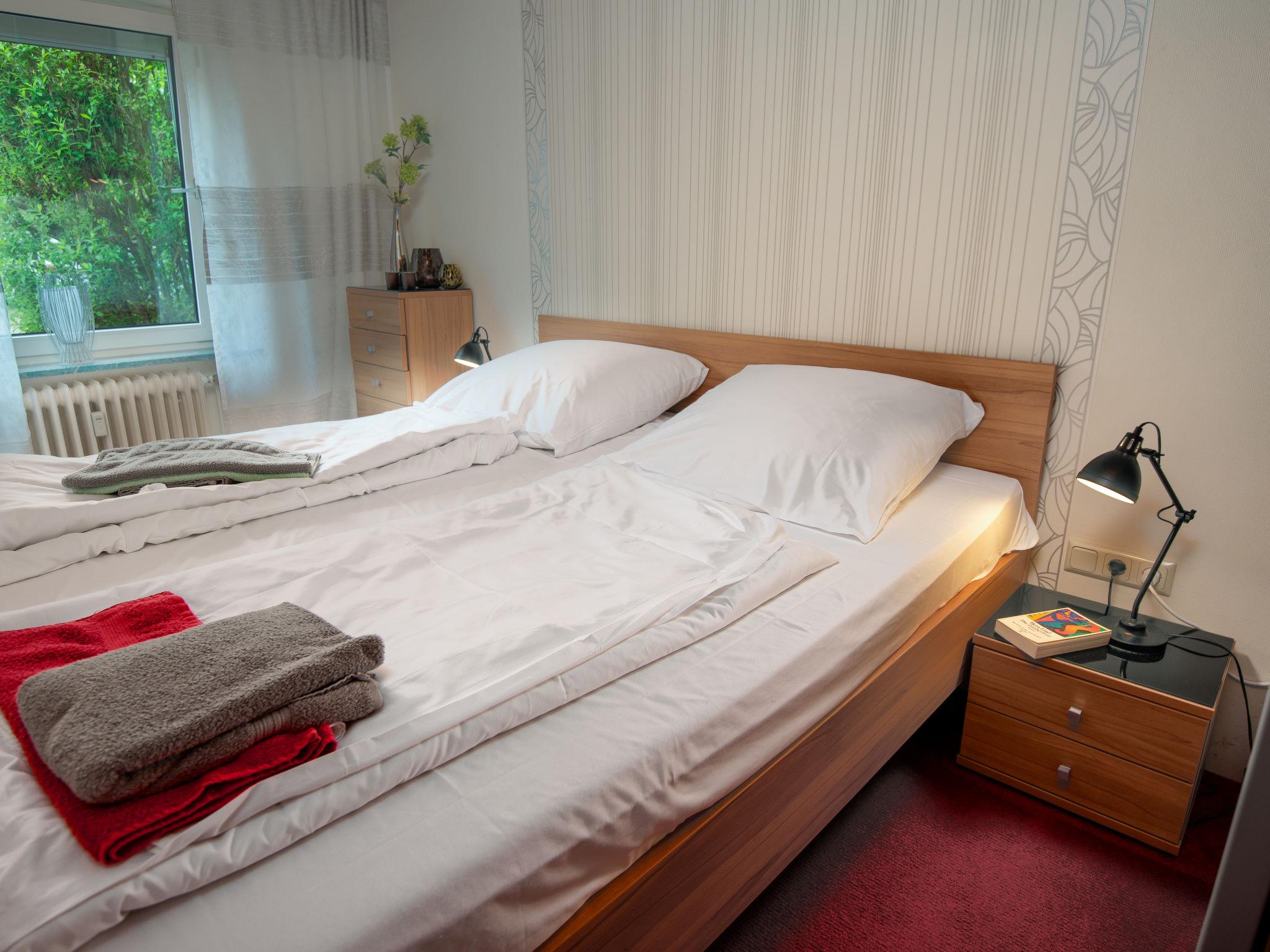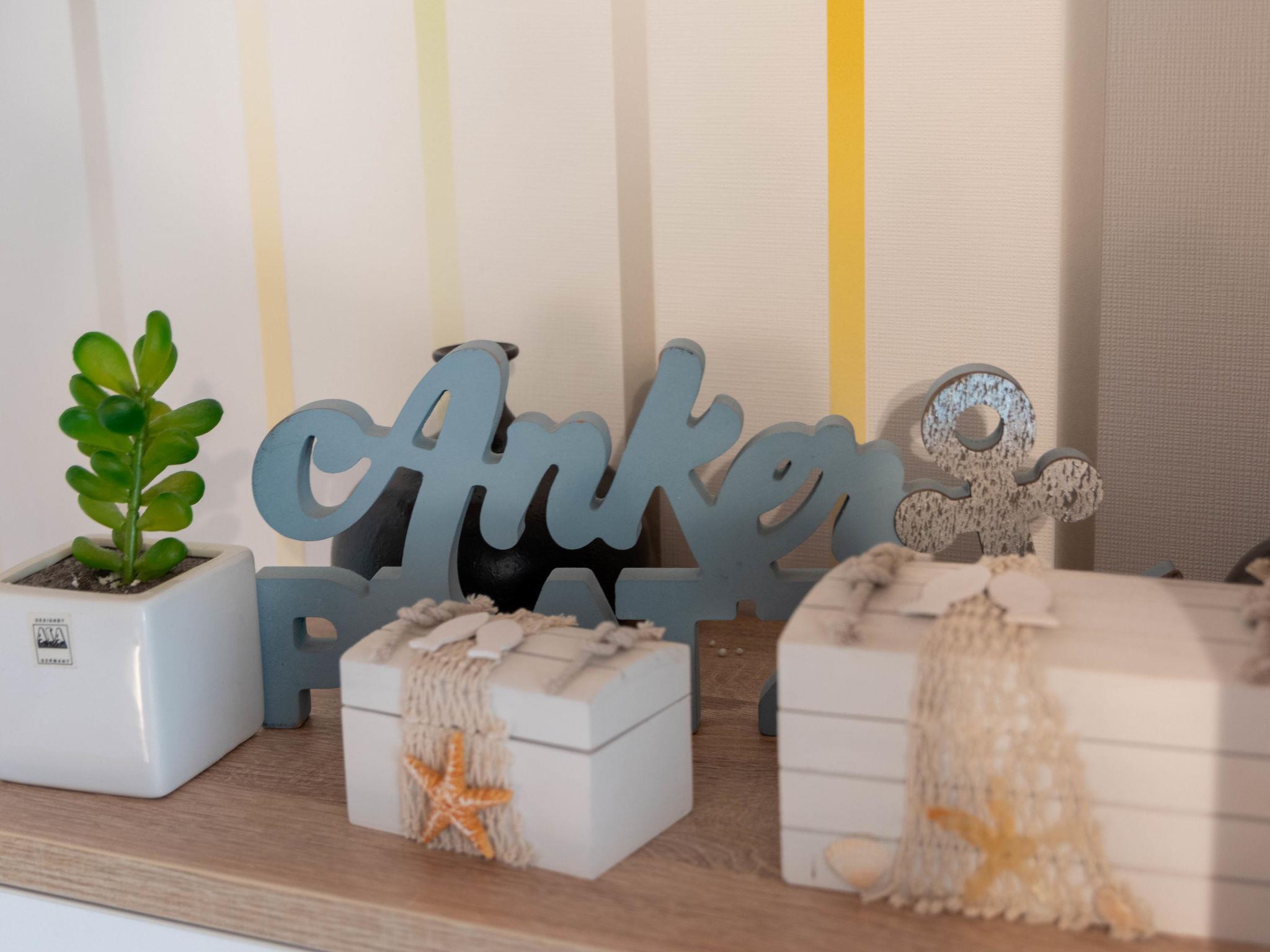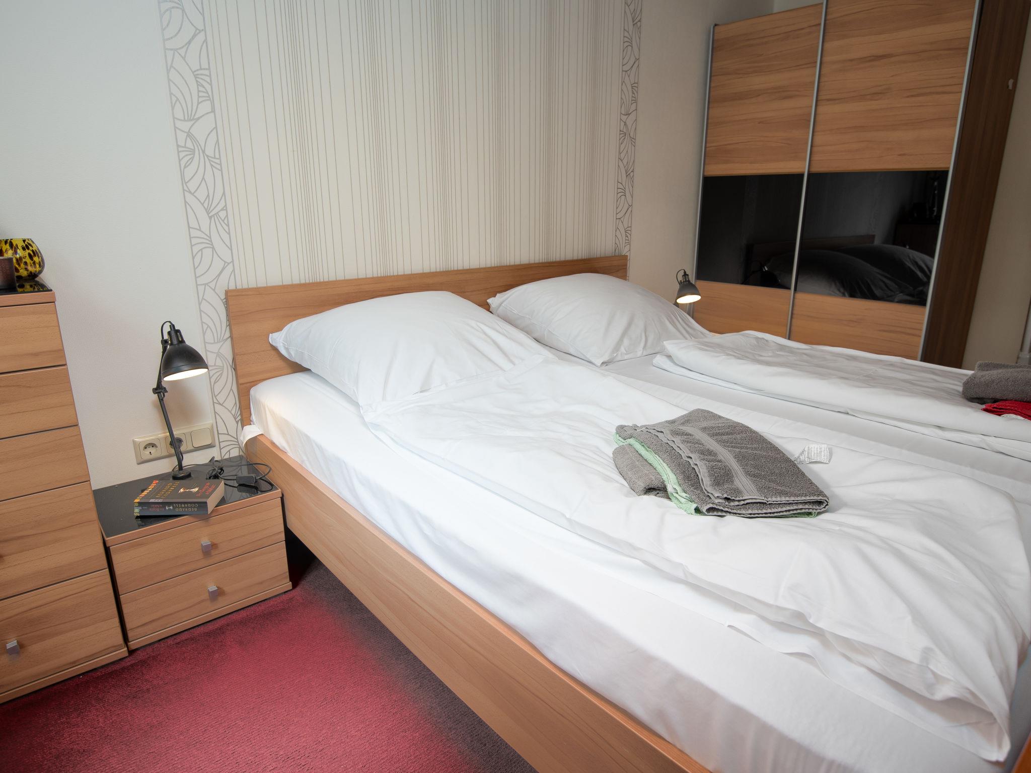 "Samtmuschel", 3-room terraced house 54 m2, on the ground floor. Beautiful furnishings: living/dining room 16 m2 with satellite TV (flat screen), hi-fi system. Exit to the terrace. 1 room 8 m2 with 1 double bed (2 x 90 cm, length 200 cm). 1 room 7 m2 with 2 beds (90 cm, length 190 cm). Kitchenette (4 ceramic glass hob hotplates, toaster, kettle, electric coffee machine) with dining table. Shower/WC. Terrace 11 m2. Terrace furniture, barbecue (portable). Facilities: children's high chair (extra). Internet (WiFi, free). Please note: fridge without freezer, non-smoking house. Smoke alarm.