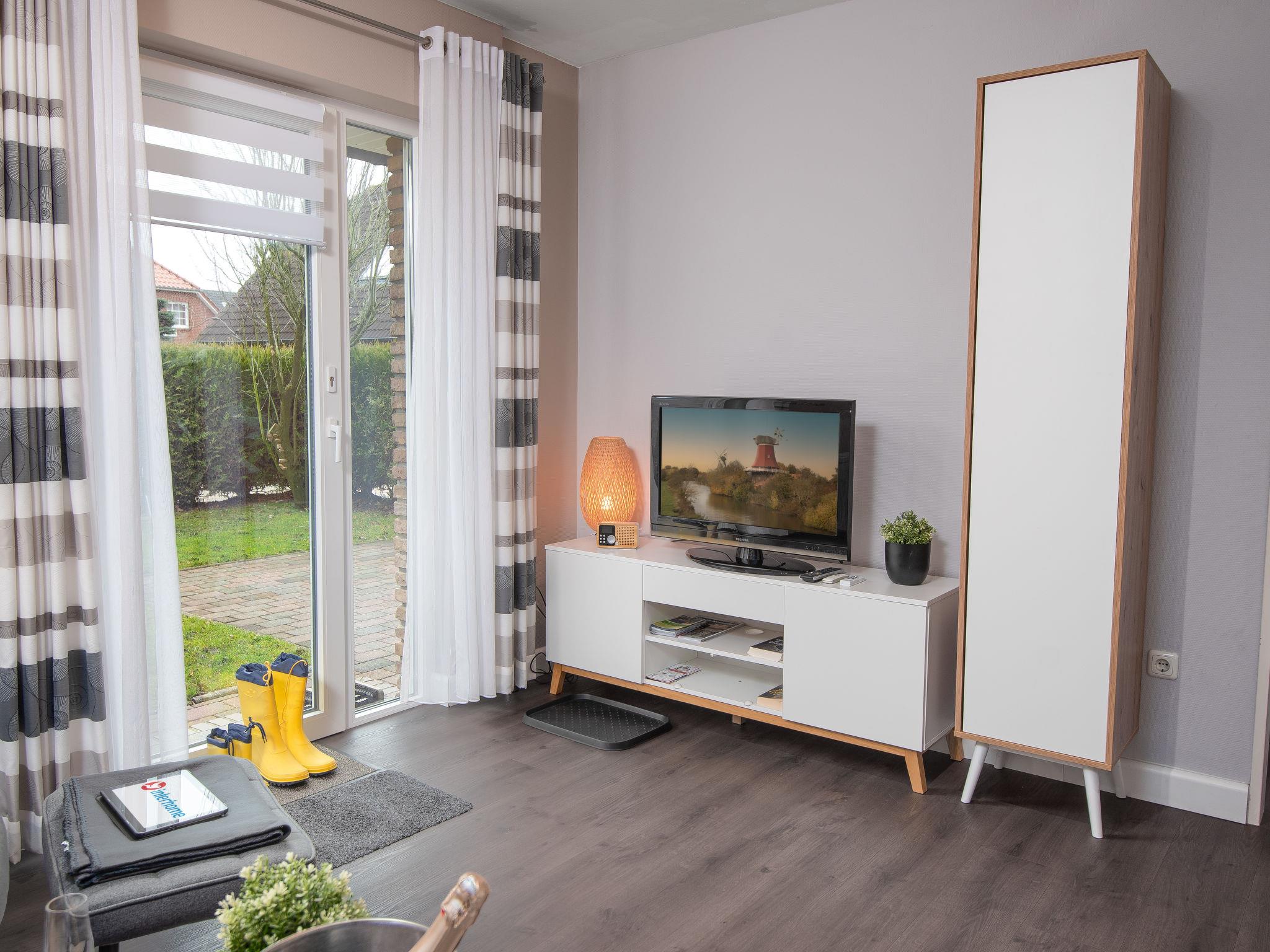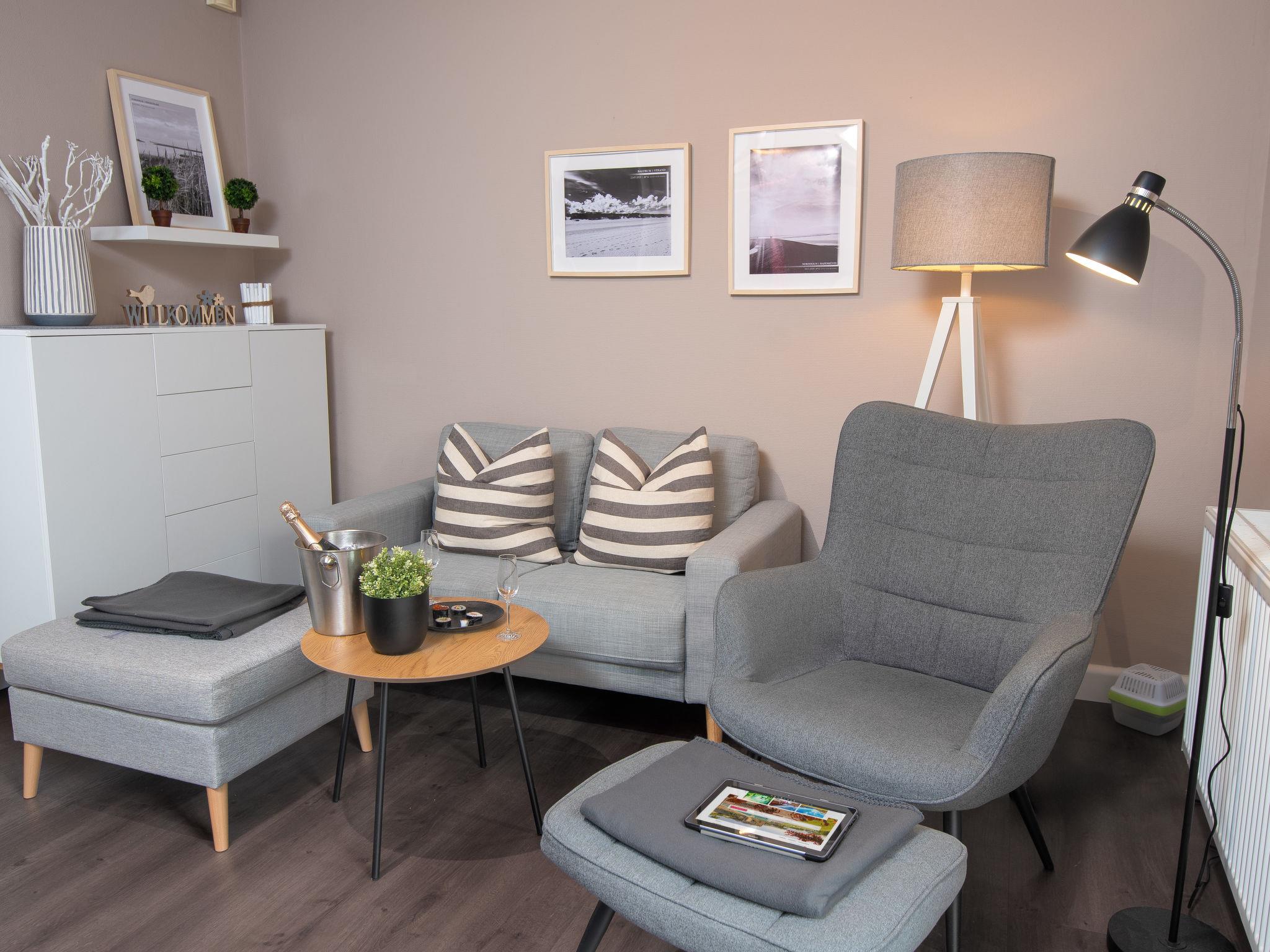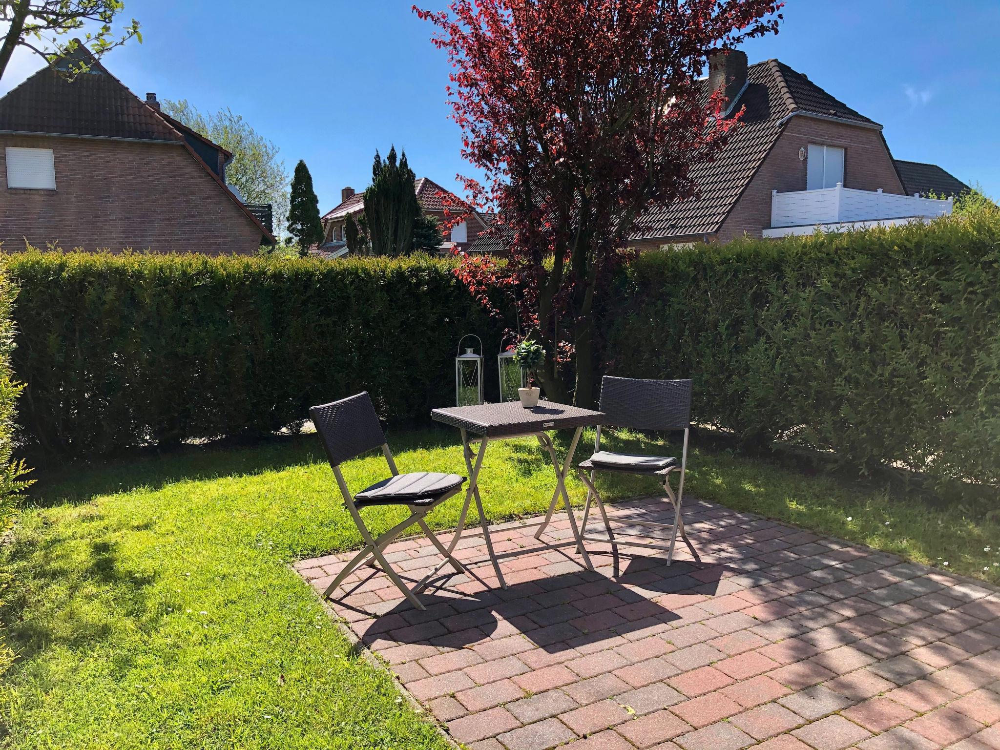 "Langeoog", 2-room apartment 40 m2, on the ground floor. Partly renovated in 2021, modern and tasteful furnishings: living/dining room 18 m2 with satellite TV (flat screen). 1 room 9 m2 with 1 double bed (2 x 90 cm, length 200 cm). Open kitchen (oven, 2 ceramic glass hob hotplates, toaster, kettle, electric coffee machine) with dining table. Shower/WC. Terrace 6 m2, lawn. Terrace furniture. Facilities: Internet (WiFi, free). Please note: not suitable for children under 6 years. Non-smokers only. Maximum occupancy: 2 people (baby or toddler as 3rd person is not possible). Terrace with beach chair.