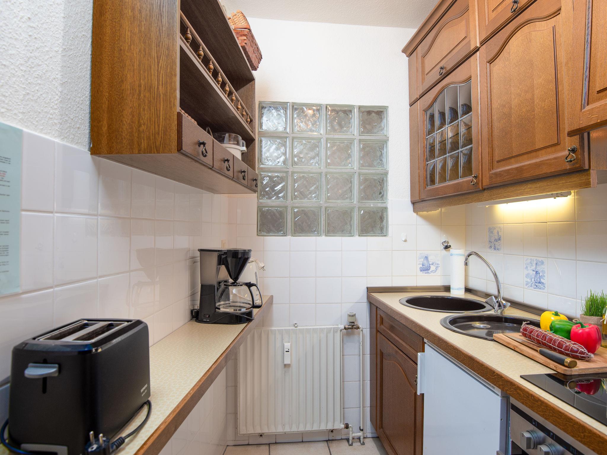 "Seeperle", 2-room apartment 32 m2 on 1st floor. Object suitable for 2 adults + 1 child. Cosy furnishings: living/dining room 19 m2 with 1 sofabed (130 cm, length 210 cm), open-hearth fireplace and satellite TV (flat screen), radio and CD-player. 1 small room 6 m2 with 1 french bed (140 cm, length 200 cm). Kitchenette (oven, 4 ceramic glass hob hotplates, toaster, kettle, electric coffee machine). Shower/WC. Facilities: children's high chair (extra). Internet (WiFi, free). Please note: non-smokers only. Smoke alarm.