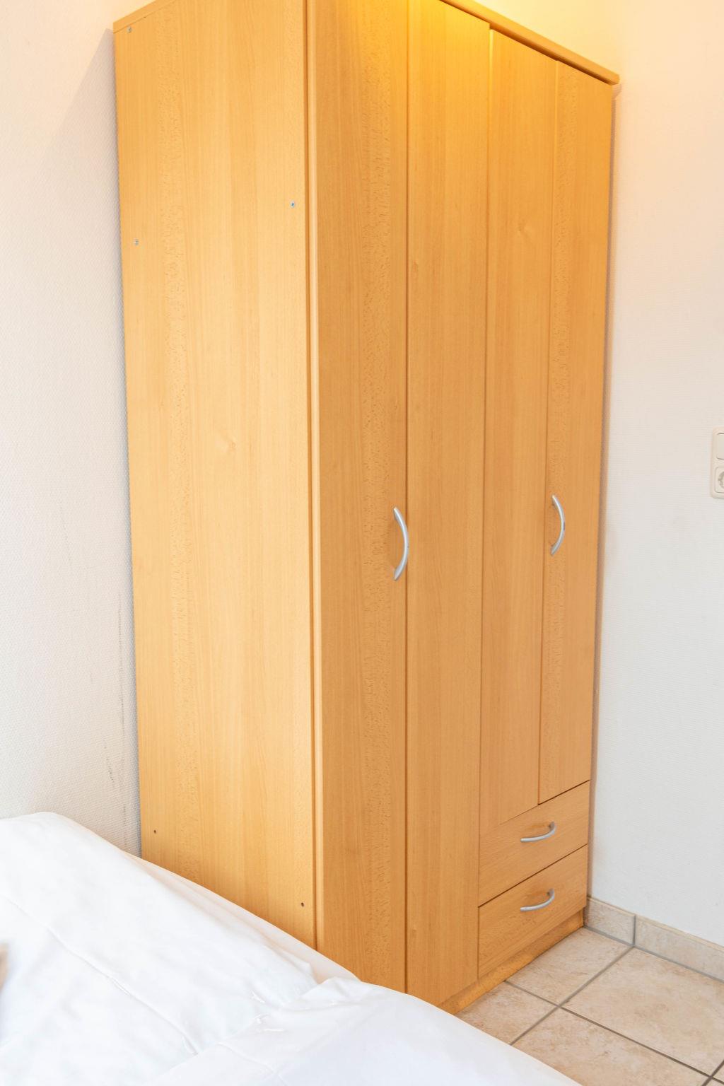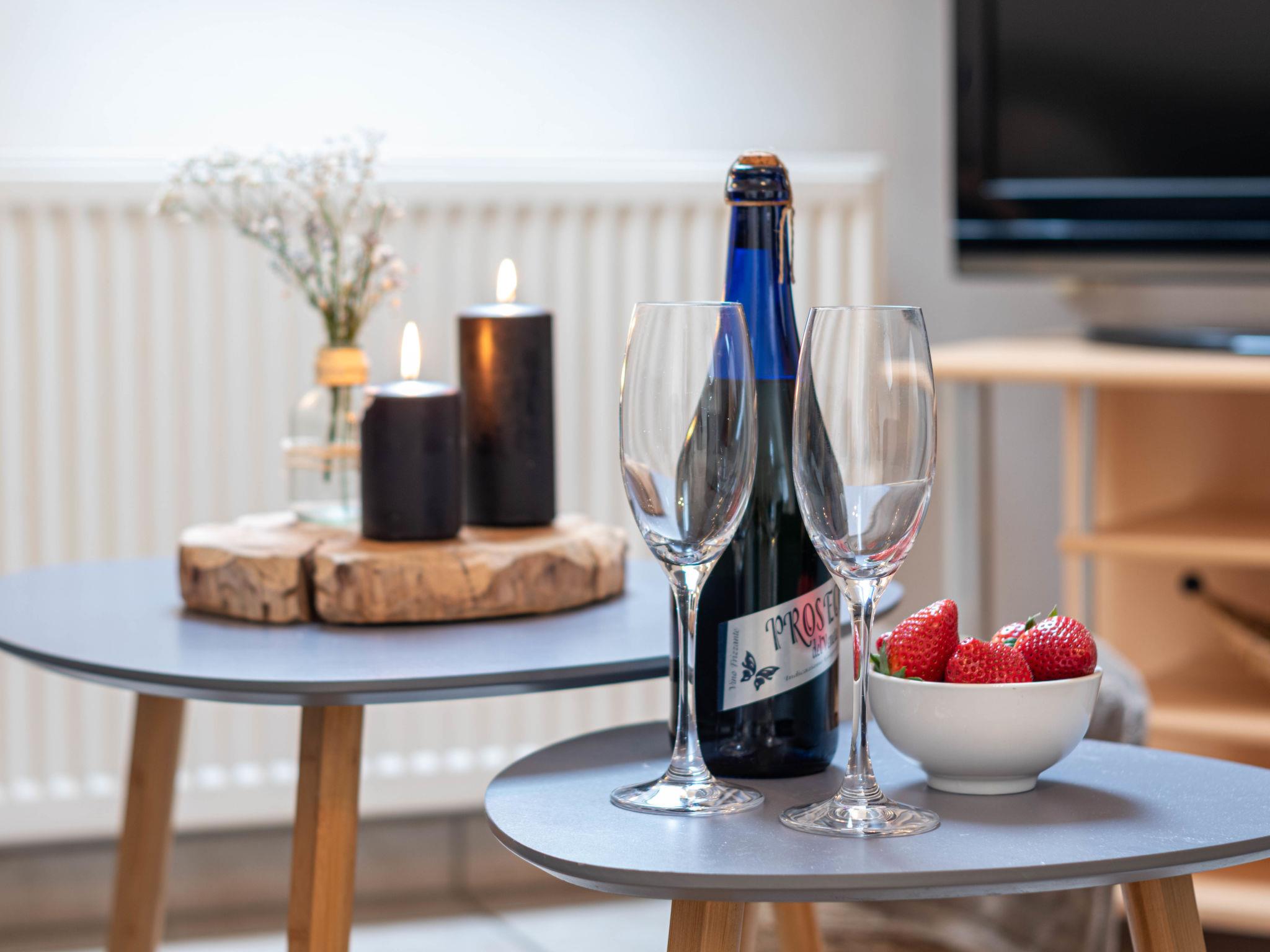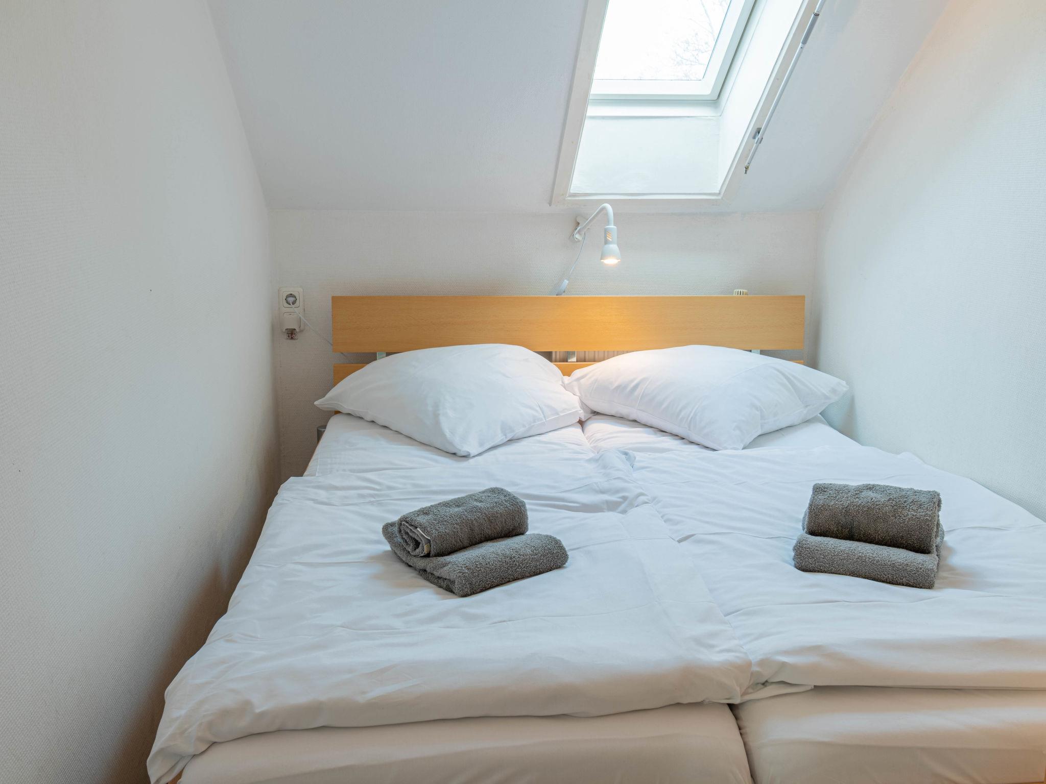 "Juist", 2-room apartment 32 m2, on the top floor. With sloping ceilings, stylish furnishings: living/dining room 12 m2 with satellite TV (flat screen). Exit to the balcony. 1 small room 4 m2 with 1 double bed (2 x 80 cm, length 200 cm). Kitchenette (oven, 4 ceramic glass hob hotplates, toaster, kettle, electric coffee machine) with dining table. Shower/WC. Small balcony 6 m2. Balcony furniture. Facilities: children's high chair (extra). Please note: non-smokers only. Maximum 1 pet/ dog allowed. Smoke alarm. The very small double room is not suitable for elderly or mobility-impaired people (no access from the sides of the bed).