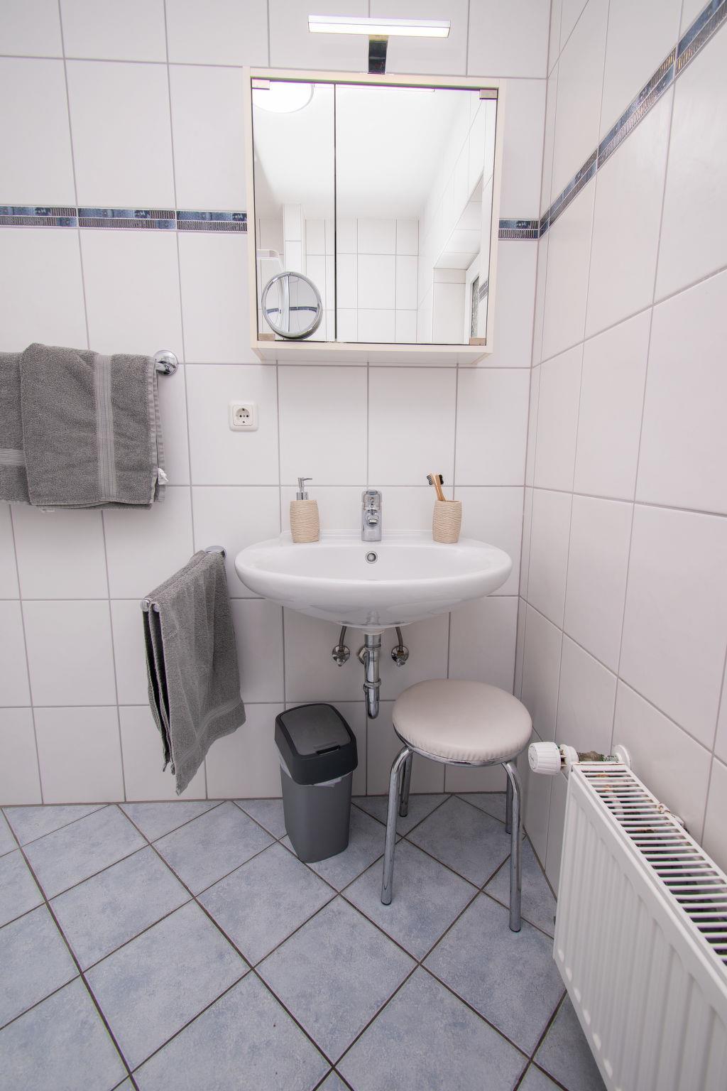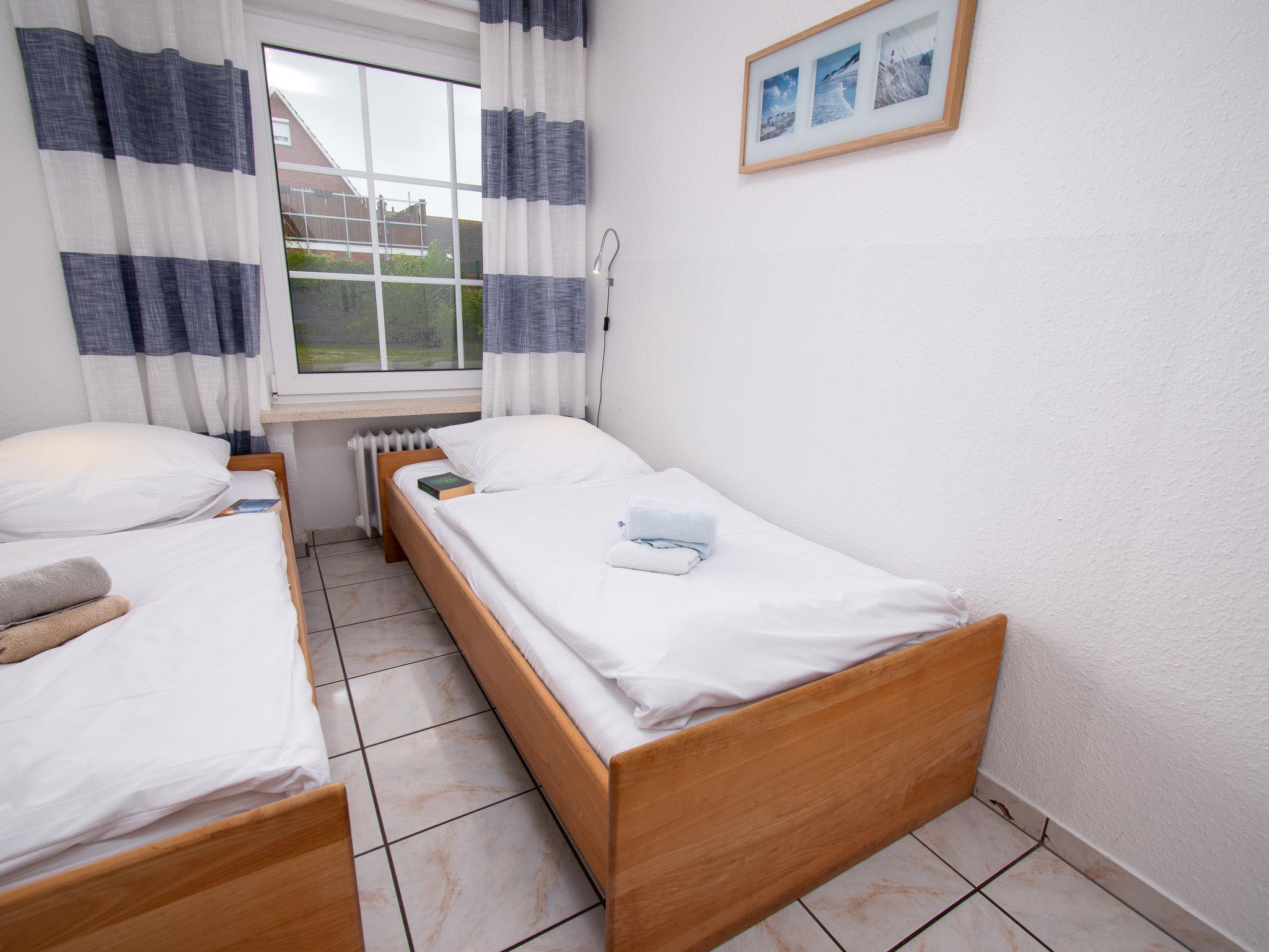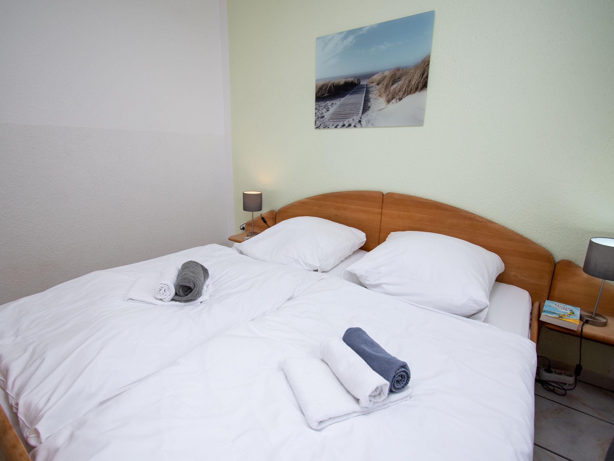 "Seestern", 3-room apartment 50 m2, on the ground floor. Cosy furnishings: living/dining room with satellite TV (flat screen), hi-fi system. 1 room with 1 double bed (2 x 90 cm, length 190 cm). 1 room with 2 beds (90 cm, length 200 cm). Kitchenette (4 hot plates, oven, dishwasher, microwave, electric coffee machine, Capsules for coffee machine (Senseo) extra) with dining table. Shower/WC. Terrace 14 m2, lawn. Terrace furniture. Facilities: children's high chair (extra). Internet (WiFi, free). Please note: fridge without freezer, non-smokers only. Maximum 1 pet/ dog allowed. Smoke alarm.
