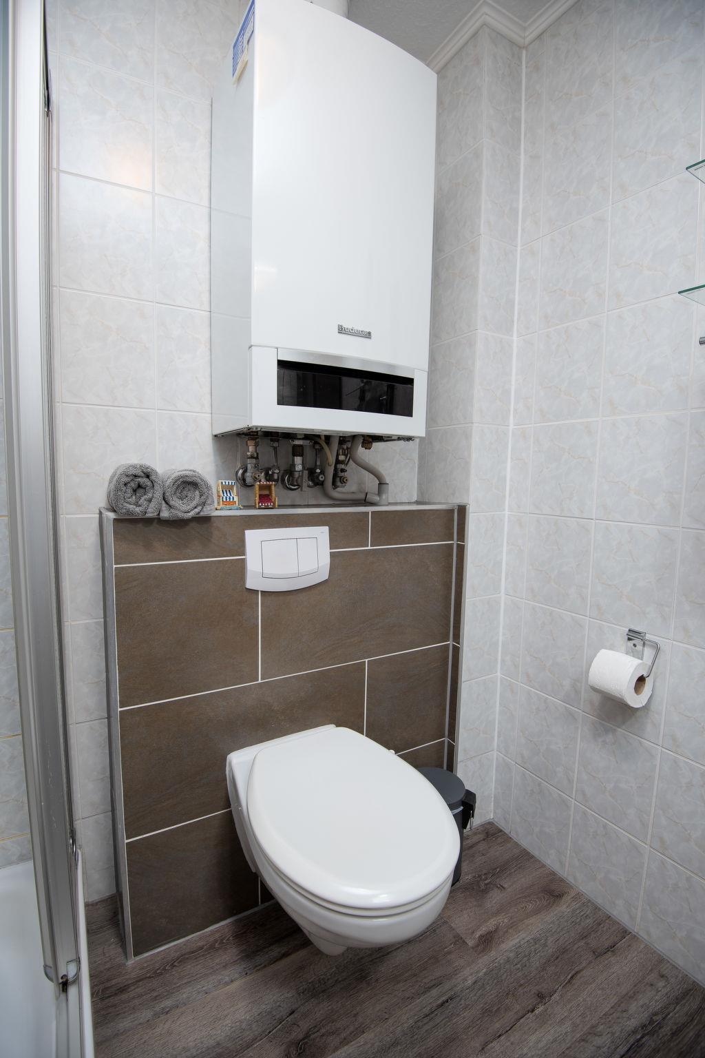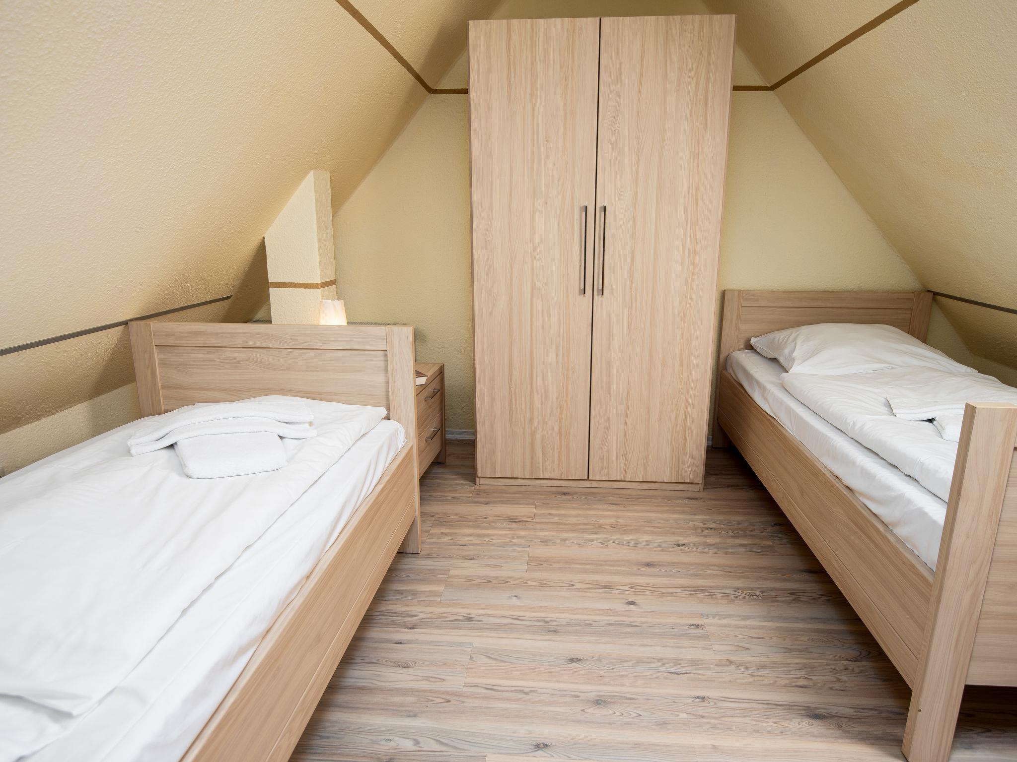 "Storchennest", 4-room terraced house 80 m2 on 3 levels, on the ground floor. Modern and tasteful furnishings: living/dining room 25 m2 with digital TV, flat screen and hi-fi system. Exit to the terrace. Open kitchen (oven, dishwasher, 4 ceramic glass hob hotplates, toaster, kettle, microwave, electric coffee machine, Capsules for coffee machine (Senseo) extra) with dining table. Sep. WC. Upper floor: 1 room 13 m2 with 1 double bed (2 x 90 cm, length 200 cm). 1 room 7 m2, with sloping ceilings with 2 beds (90 cm, length 200 cm). Shower/WC. Top floor: 1 room 8 m2, with sloping ceilings with 2 beds (90 cm, length 200 cm), hi-fi system. Terrace 10 m2. Terrace furniture. Facilities: iron, children's high chair (extra). Internet (WiFi, free). Please note: non-smoking house. Maximum 1 small pet/ dog allowed. Smoke alarm.