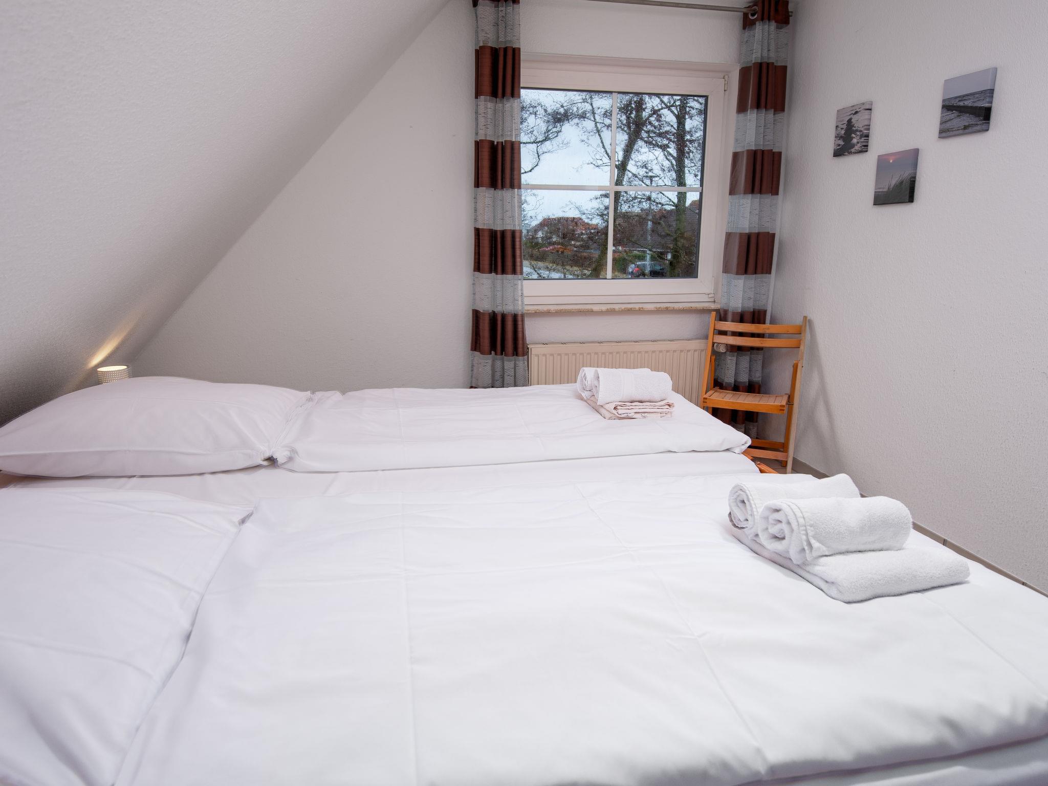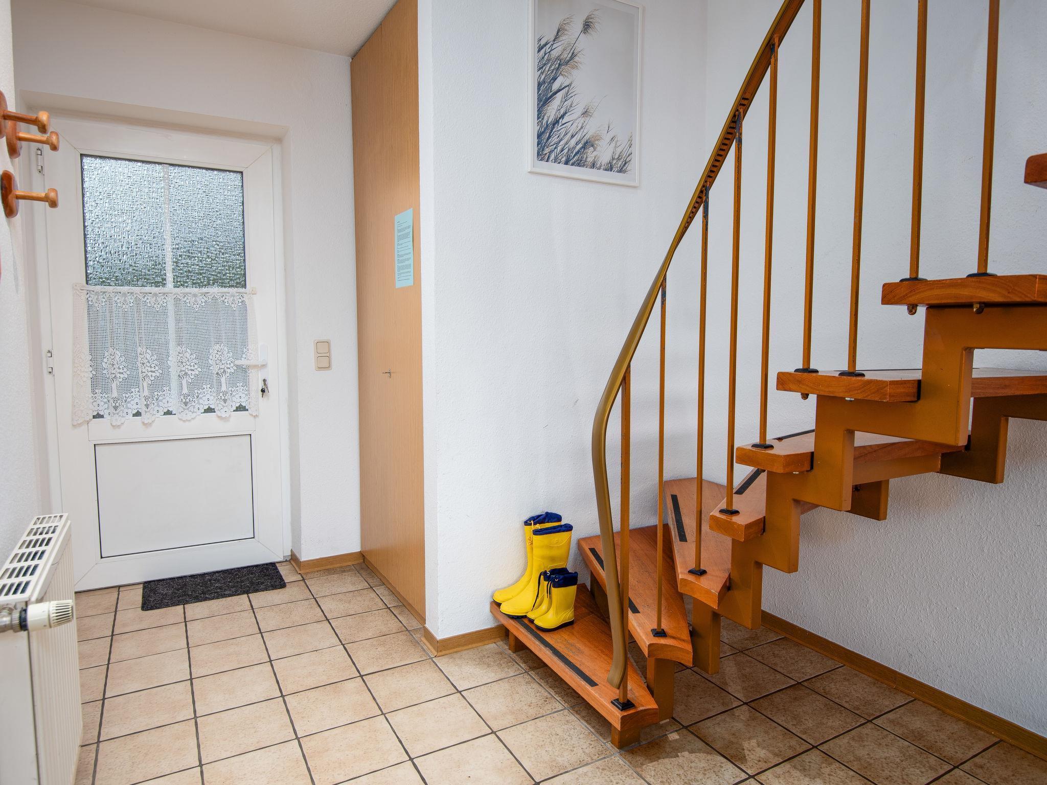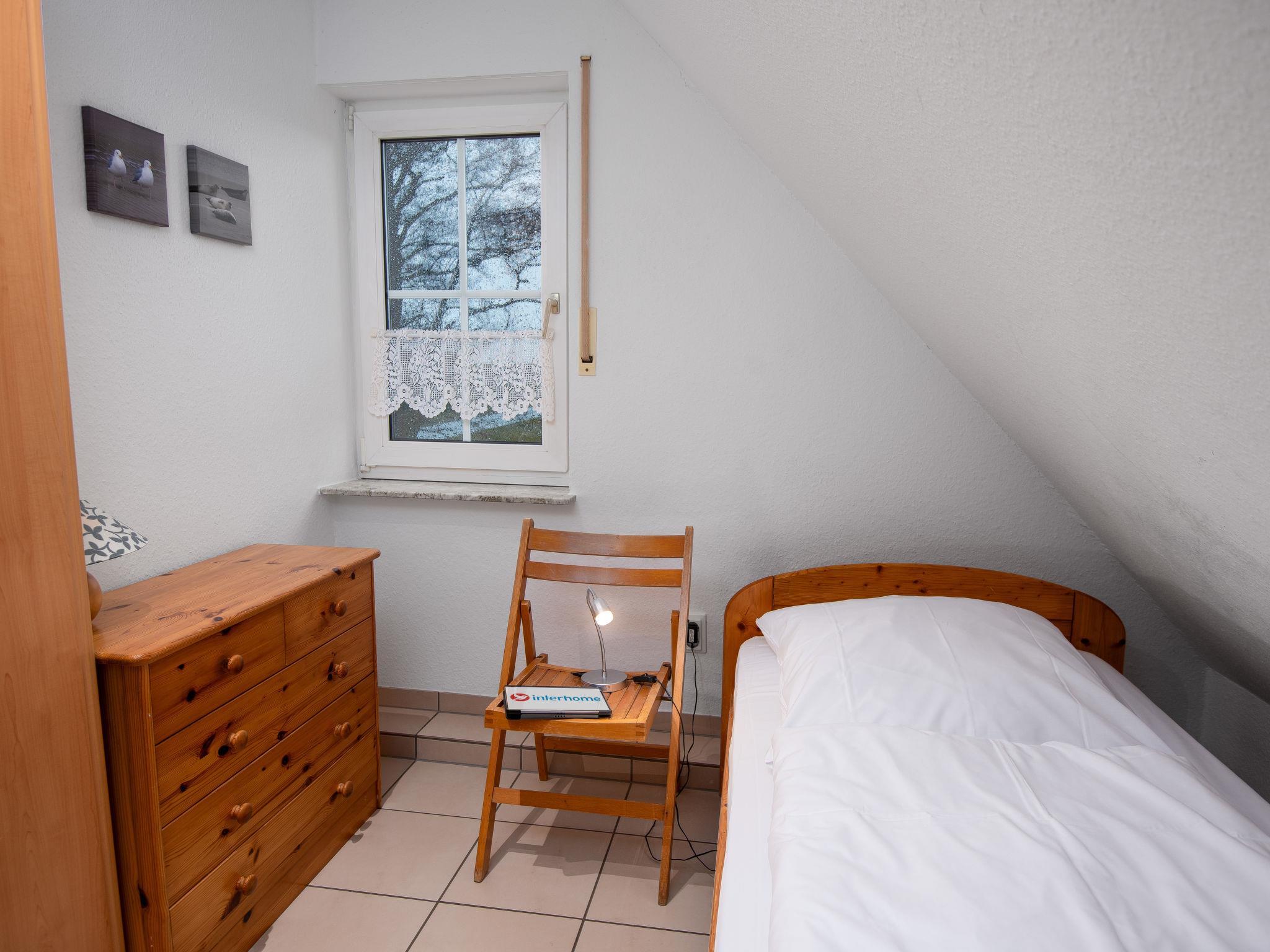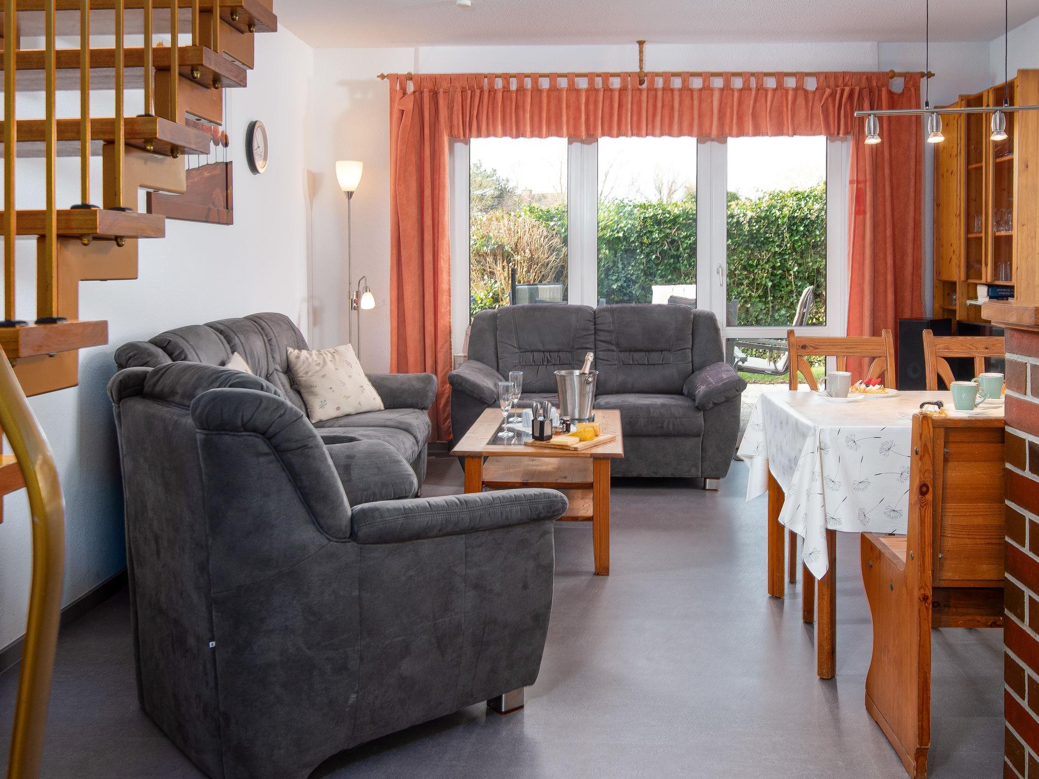 "Nordlicht", 4-room terraced house 70 m2 on 3 levels, on the ground floor. Beautiful and cosy furnishings: living/dining room 22 m2 with digital TV, flat screen and radio. Exit to the terrace. Open kitchen (4 hot plates, oven, dishwasher, toaster, kettle, microwave, electric coffee machine). Sep. WC. Upper floor: 1 room 10 m2, with sloping ceilings with 1 double bed (2 x 100 cm, length 200 cm). 1 small room 6 m2, with sloping ceilings with 1 bed (90 cm, length 200 cm). Shower/WC. Top floor: (steep stair), 1 small room 12 m2, with sloping ceilings with 2 beds (90 cm, length 200 cm). Small terrace, lawn. Terrace furniture. Facilities: children's high chair (extra). Internet (WiFi, free). Please note: non-smoking house. Maximum 1 pet/ dog allowed. Smoke alarm.