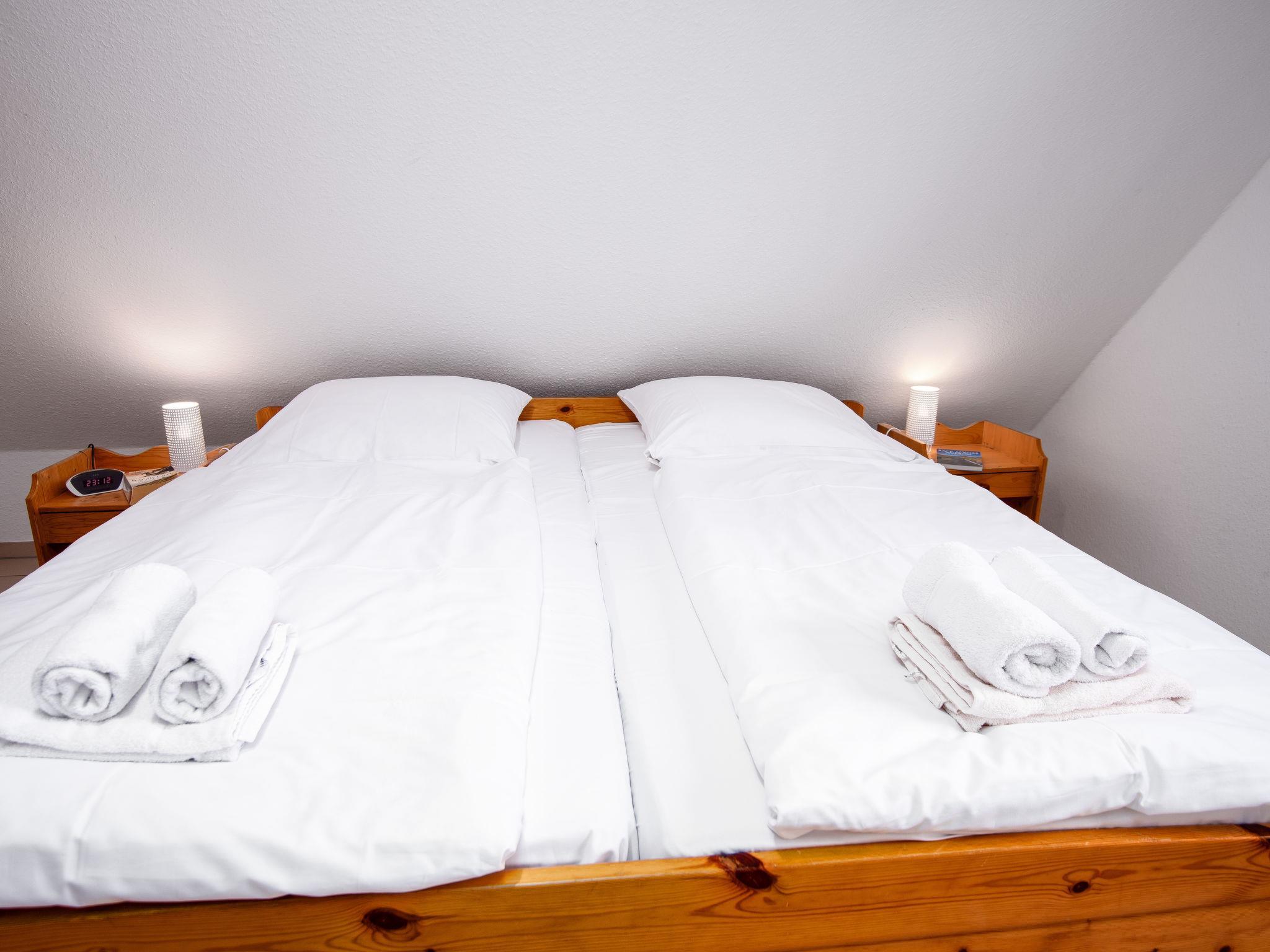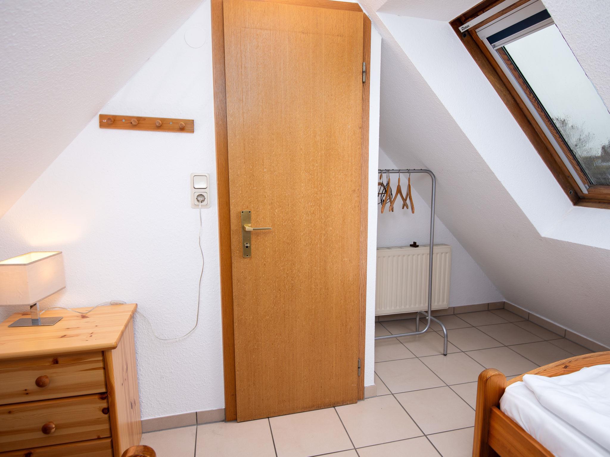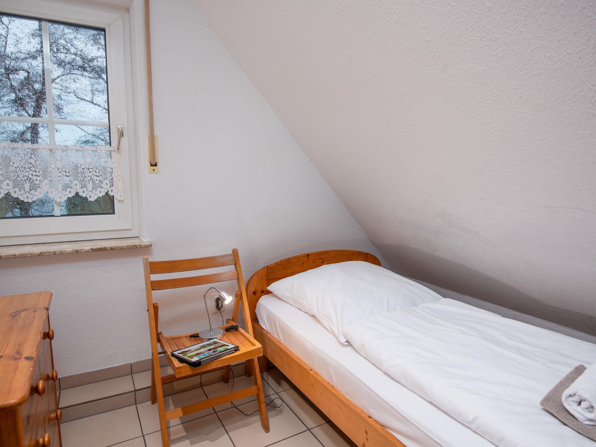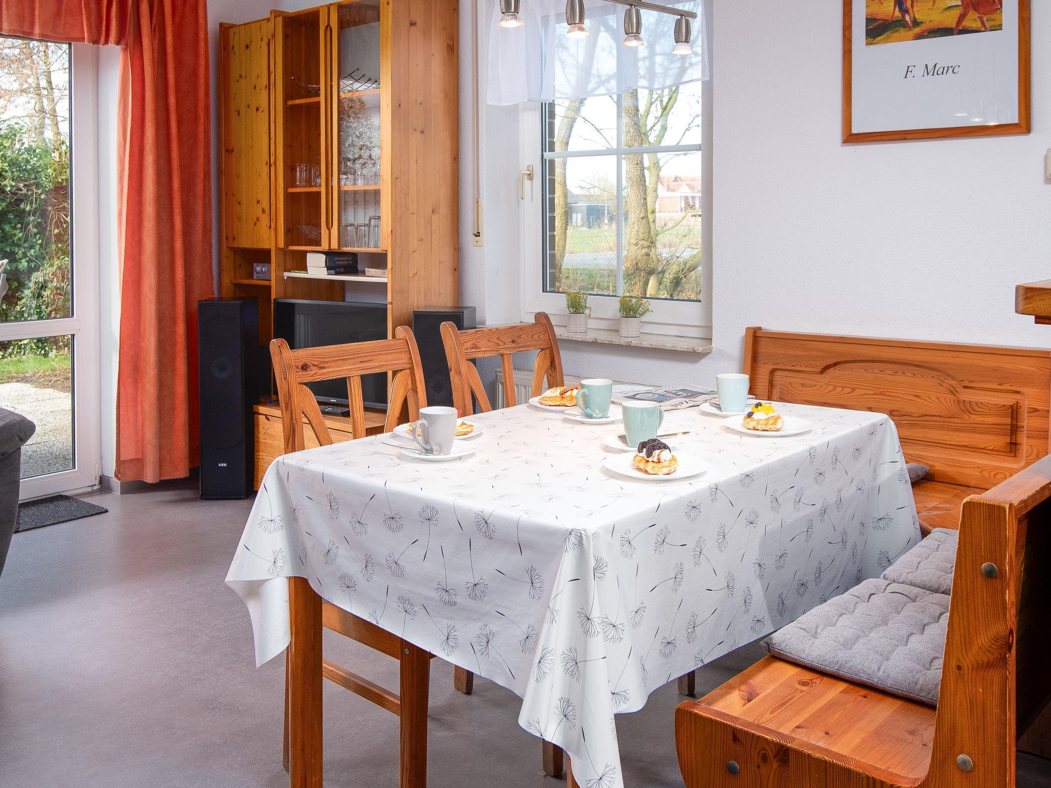 "Nordlicht", 4-room terraced house 70 m2 on 3 levels, on the ground floor. Beautiful and cosy furnishings: living/dining room 22 m2 with digital TV, flat screen and radio. Exit to the terrace. Open kitchen (4 hot plates, oven, dishwasher, toaster, kettle, microwave, electric coffee machine). Sep. WC. Upper floor: 1 room 10 m2, with sloping ceilings with 1 double bed (2 x 100 cm, length 200 cm). 1 small room 6 m2, with sloping ceilings with 1 bed (90 cm, length 200 cm). Shower/WC. Top floor: (steep stair), 1 small room 12 m2, with sloping ceilings with 2 beds (90 cm, length 200 cm). Small terrace, lawn. Terrace furniture. Facilities: children's high chair (extra). Internet (WiFi, free). Please note: non-smoking house. Maximum 1 pet/ dog allowed. Smoke alarm.