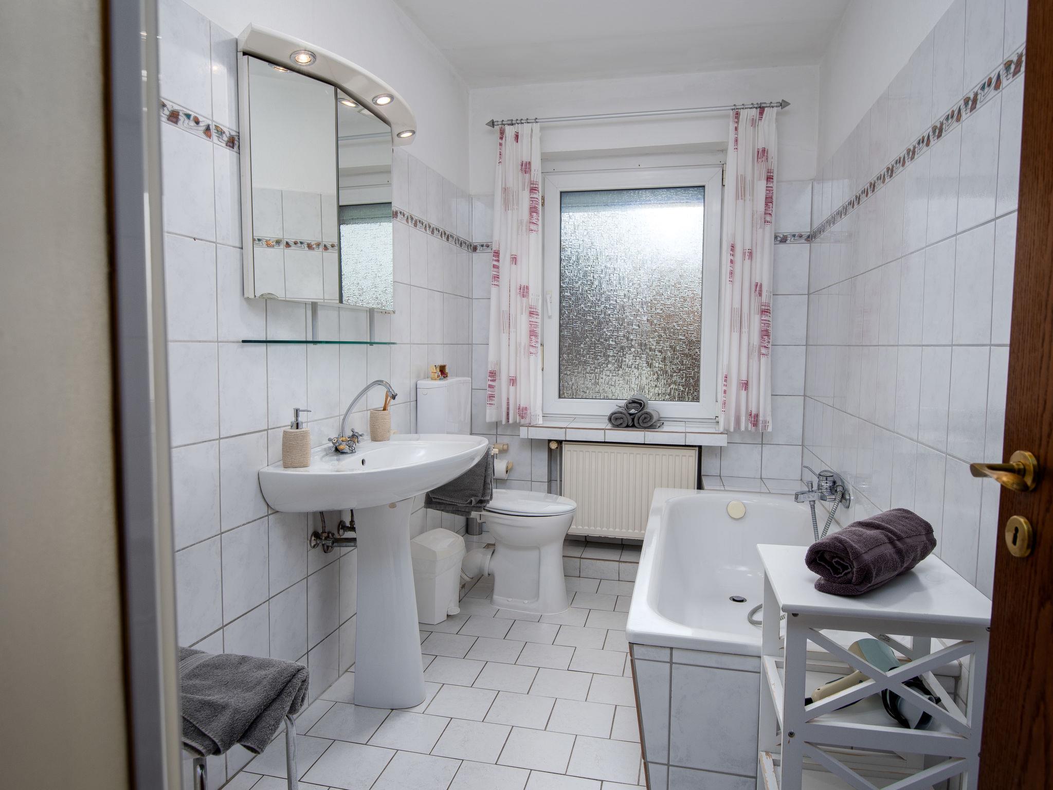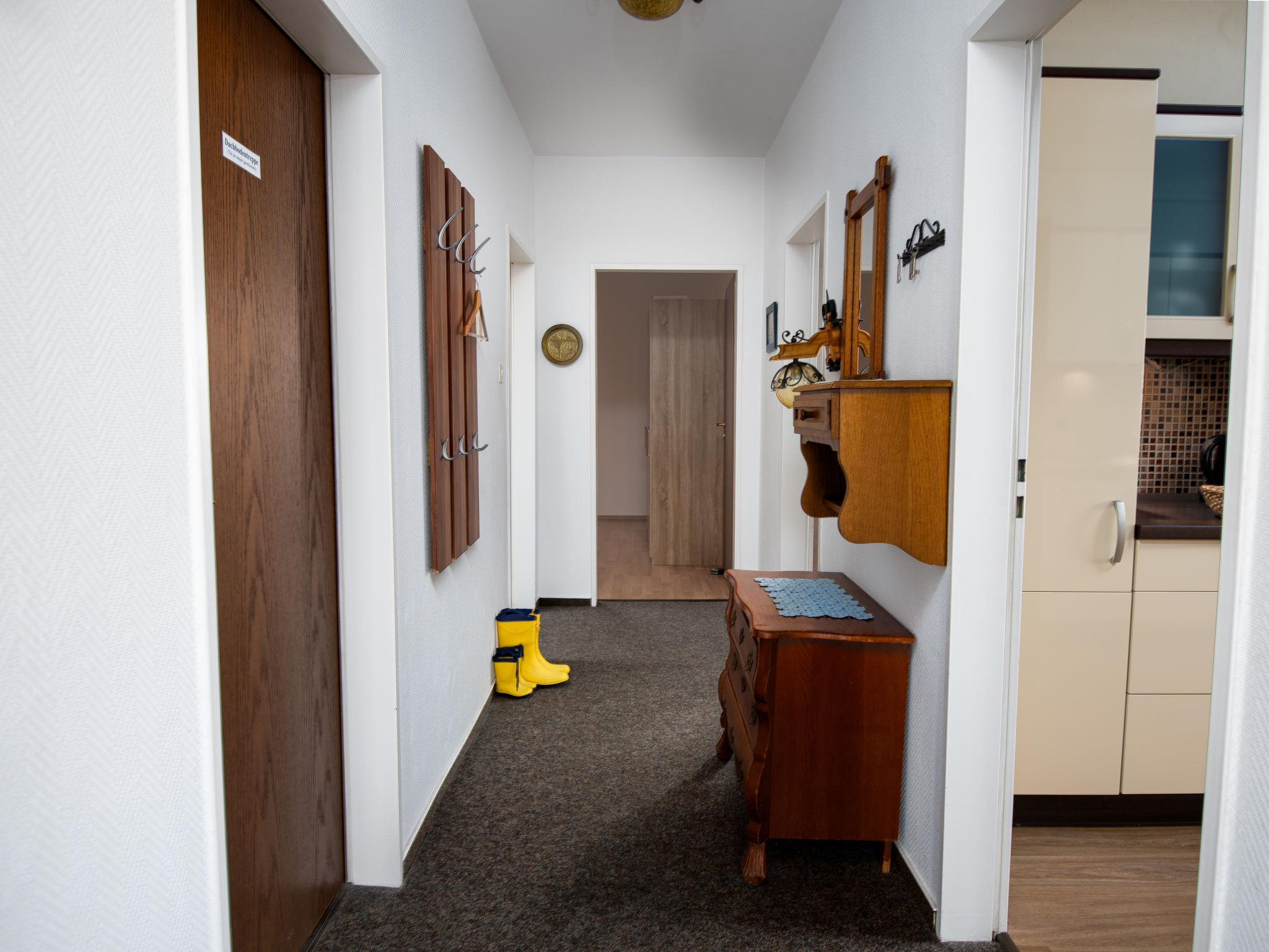 Apartment house. In the centre of Norddeich, 500 m from the sea, 650 m from the beach, in a cul-de-sac. In the house: storage room for bicycles, central heating system. Parking at the house. Grocery 700 m, supermarket 800 m, restaurant 50 m, bakery 10 m, bus stop 150 m, railway station 900 m, ferry 950 m, sandy beach 650 m, outdoor swimming pool 14 km, indoor swimming pool. Golf course (18 hole) 8 km, surf school 900 m. Post office on the ground floor of the house.