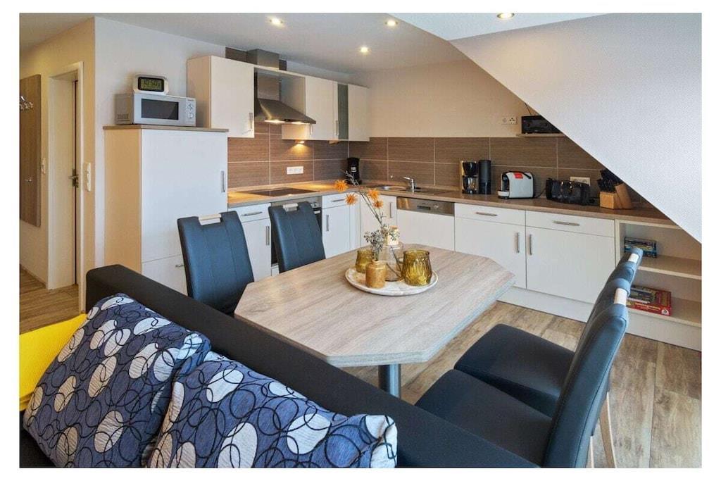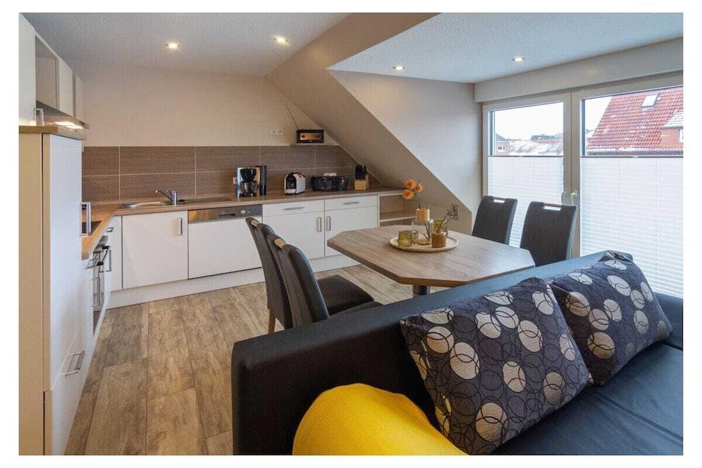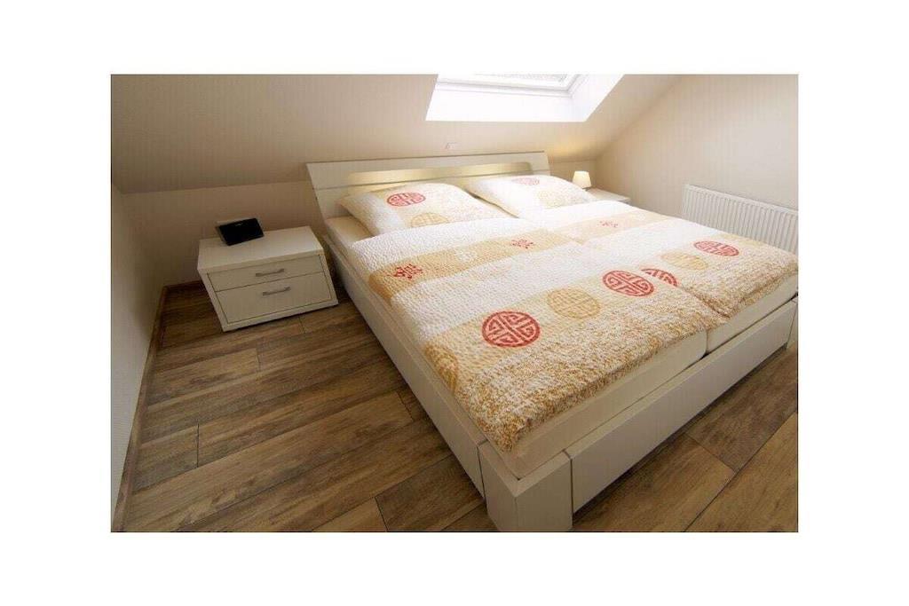 Roringstek holiday apartment This newly renovated holiday apartment extends over several floors and is particularly cozy. During the 2018 renovation and redesign of the Roringstek apartment, warm colors such as beige and various shades of brown were used, which looks inviting and stylish at the same time. Lovingly selected accessories were not forgotten either. This creates your holiday oasis of well-being that leaves nothing to be desired. The modern fitted kitchen already has everything you need for your stay. This includes dining and cooking utensils as well as all electrical appliances including a modern dishwasher. In the living area, a modern flat-screen TV including satellite TV, a DVD player and a radio with DAB+, FM and Internet radio provide evening entertainment. Perhaps you will also enjoy your evenings with cheerful board games. The holiday apartment has also been equipped with this. Two spacious bedrooms, each with a large double bed, offer space for a total of four people. If required, a baby travel bed can also be added to both rooms. This means that a baby or toddler could also travel with the four people. A washing machine and a tumble dryer are available in the storage room. You also have your own parking space right next to the house. For a carefree start to your vacation, book our laundry package. This consists of bed linen, towels, shower mats, tea towels and a service set (toilet paper, dishwasher tablets, garbage bags, dish brush, cleaning cloths and other little helpers for a carefree start to your vacation. 2 women's bicycles are available free of charge "subject to availability"