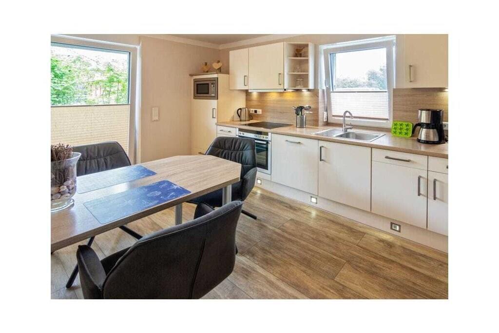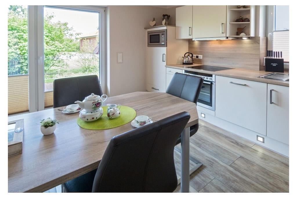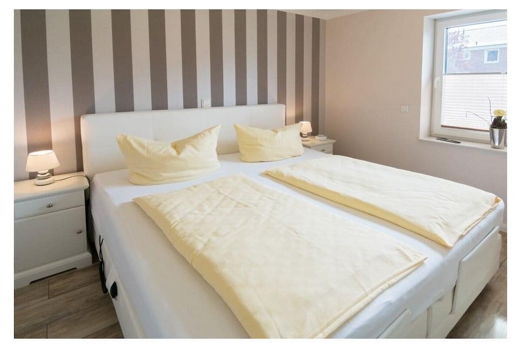 Holiday apartment Palstek Feel at home - or maybe even more comfortable. The cozy holiday apartment Palstek offers the ideal basis for this. When redesigning this holiday apartment, great importance was placed on high-quality and at the same time cozy furnishings. Two people, possibly with a baby or toddler, will find enough space here to spend a wonderful holiday. There is no lack of comfort. The living room has been equipped with a flat screen TV, satellite TV, DVD and CD player. The modern fitted kitchen has everything you could wish for, from a built-in oven with ceramic hob to a microwave and dishwasher. In the bedroom, guests can make themselves comfortable on a box spring bed. Of course, there is sufficient storage space in the wardrobes and coat hangers. If required, a baby travel cot is available, which can be accommodated here. Even in a harsher coastal climate, you can feel completely at home here. This is not least ensured by the separately adjustable underfloor heating, which extends over the entire property. The bathroom is also in absolutely new condition and has everything you need. A washing machine is also available and noticeably increases travel comfort. Make yourself comfortable on the terrace in a beach chair and enjoy the soothing North Sea air or go for a bike ride on the ladies' bikes that are available for free. For a carefree start to your vacation, book our laundry package. This consists of bed linen, towels, shower mats, tea towels and a service set (toilet paper, dishwasher tablets, garbage bags, dish brush, cleaning cloths and other little helpers for a carefree start to your vacation.