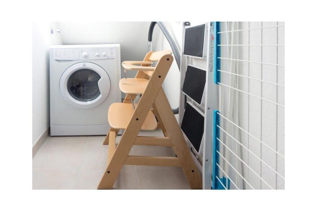 Ground floor: (hallway, Living room(TV, DVD player, radio, CD player, heating), Kitchen(electric kettle, toaster, cooker, coffee machine, oven, dishwasher, fridge, freezer), bedroom(double bed, children's bed), bedroom(double bed), bathroom(shower, toilet, hairdryer)) Fire Alarm, Internet Access DSL, Vacuum Cleaner, storage, Internet access, tumble dryer, washing machine, balcony(balcony), garden(Lawn), parking, iron, drying cabinet