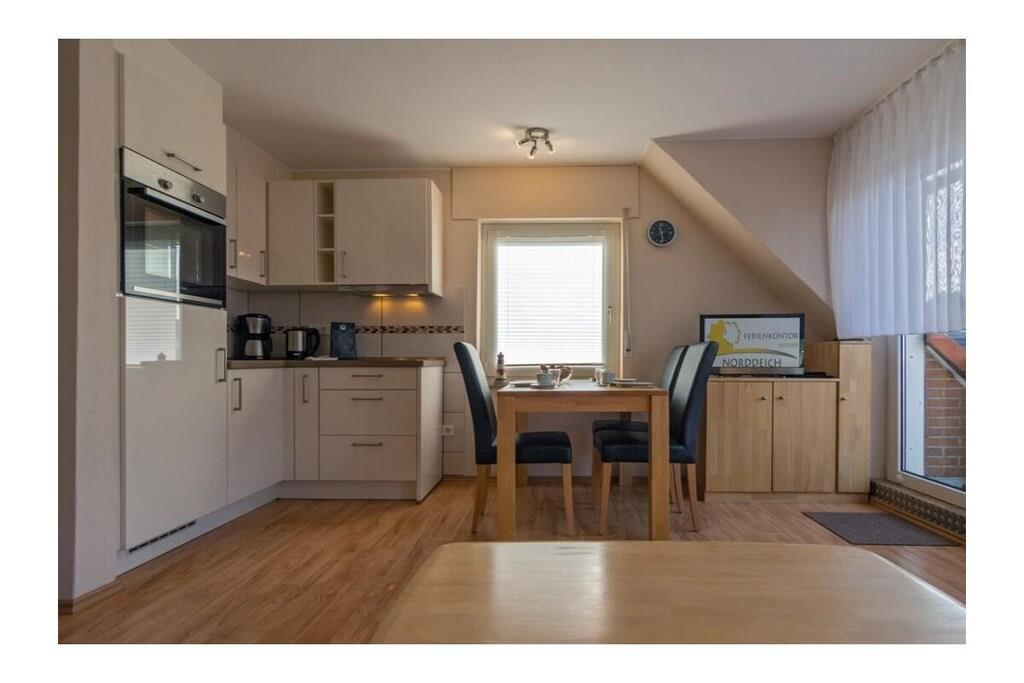 Holiday apartment Lima, Am Koper Sand 16, Norddeich Norddeich welcomes you to a perfect North Sea holiday where you will want for nothing. Located directly on the wonderful, eight-hectare sandy beach, the tranquil district of Norden offers a diverse infrastructure. Stroll through the wide streets of the popular coastal resort, try out the gastronomic offerings and browse through the pretty little shops. In addition, there is a varied leisure program in and around Norddeich that leaves nothing to be desired and guarantees fun and relaxation for the whole family. The holiday apartment Our holiday apartment Lima is on the first floor of a detached house with a total of four residential units. The property is located in a quiet side street, so nothing will disturb your well-deserved rest. Nevertheless, it is only a few steps to the lively center of Norddeich with its diverse offerings. Just as quickly, in just a few minutes, you can be on the wonderful kilometer-long Norddeich beach. Your holiday apartment is cozy and comfortable and has space for three people. The heart of the apartment beats in the lovingly designed and light-flooded living and dining room with the small kitchenette and the adjoining dining area. Here you can relax in the cozy 2-seater sofa corner, read a book or enjoy evenings watching TV together. The kitchen is functionally furnished with everything you need for cooking together. The equipment includes a stove with four hotplates, a refrigerator, a coffee machine, a toaster, a mixer and of course a set of dishes, glasses and mugs. Take your meals at the dining table with the three matching chairs, which is placed directly next to the kitchen unit. If it is too bright for you in the light-flooded apartment, the windows can be darkened for the most part with blinds or pleated blinds. From the bright,