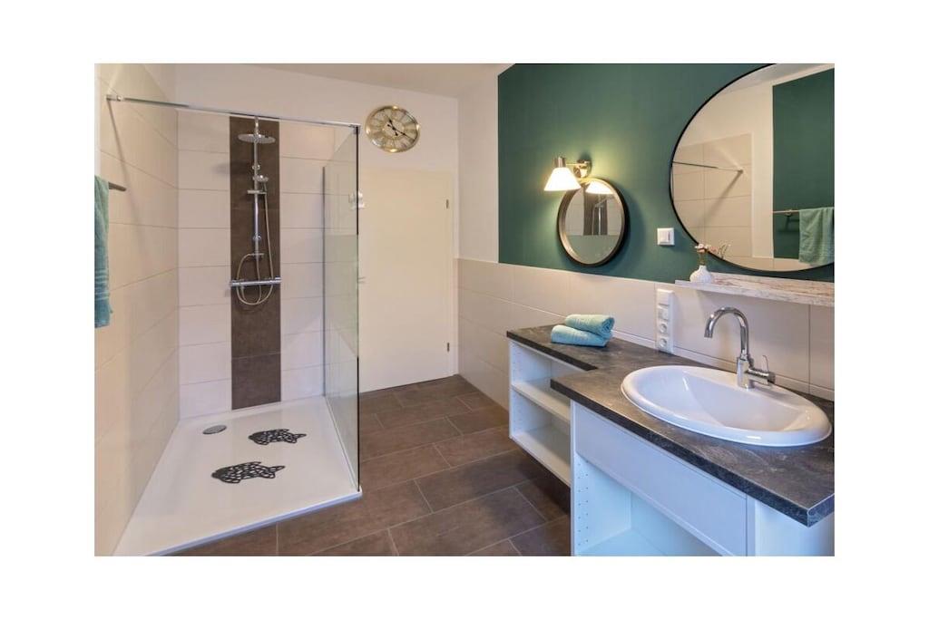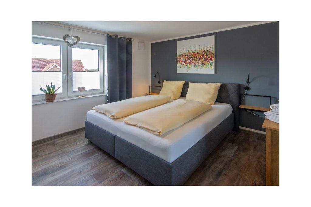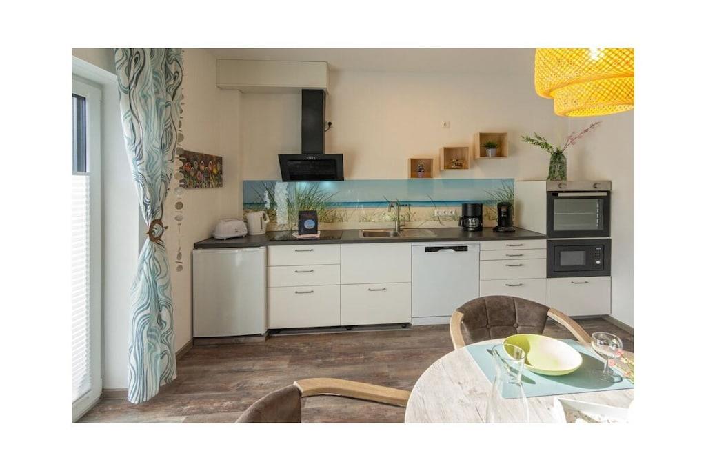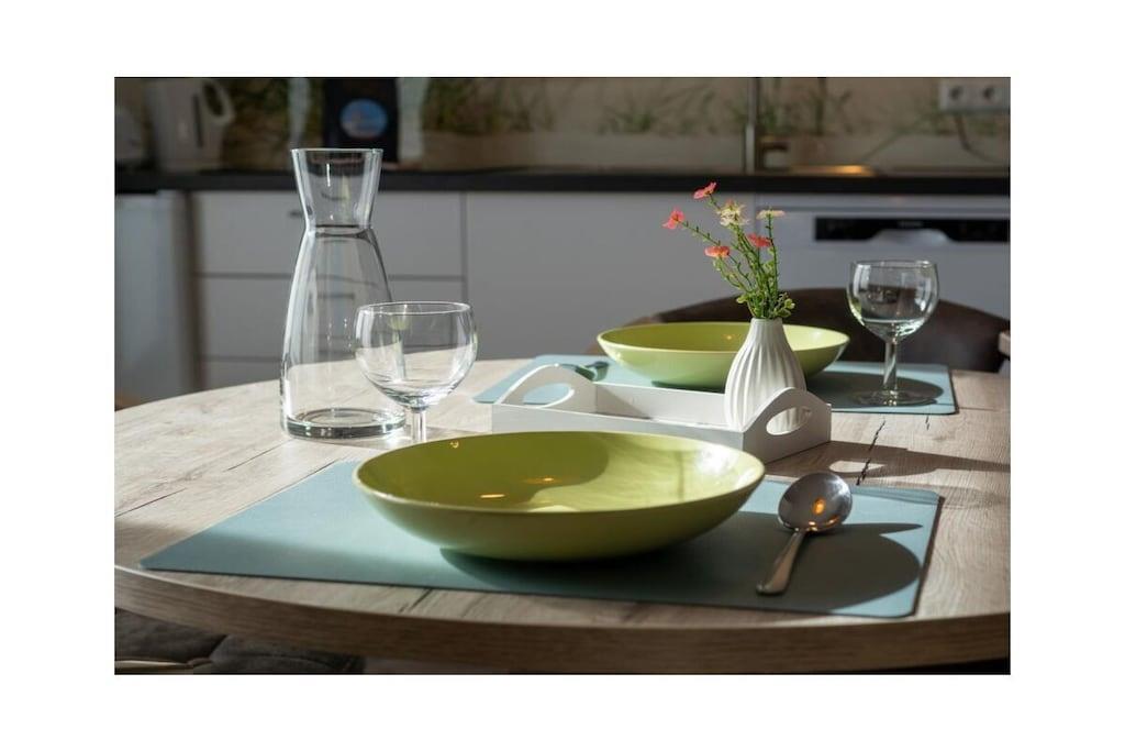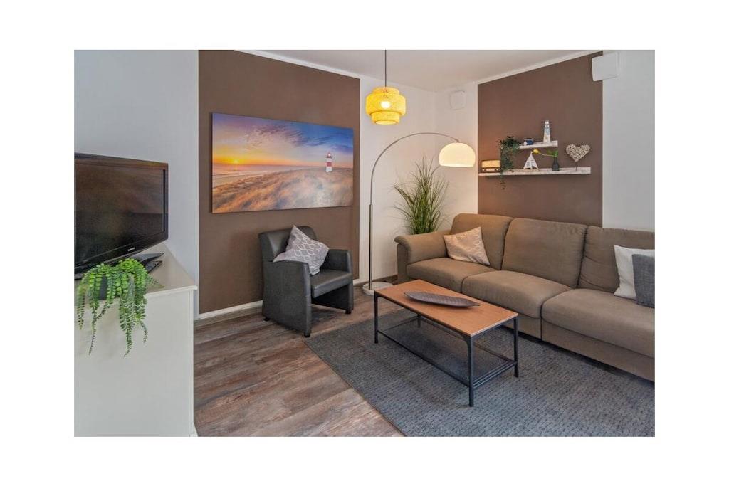 Holiday apartment Dream 1 Your holiday in Norddeich can be a real dream holiday in this small but lovely holiday apartment. It offers privacy and peace for two people, and is still centrally located. The apartment is on the ground floor of an apartment building that has other holiday apartments. This makes it a popular domicile for several families or groups of friends who like to spend their holiday together in the beautiful north, but don't want to do without their own four walls. As a group, use several apartments at the same time and decide for yourself how much holiday time you want to spend together. Even if you are only traveling as a couple, this apartment leaves nothing to be desired. From the front door, you are just a few steps from the lively center, where you can stroll, shop and enjoy the culinary offerings of the North Sea coast at any time. The nice thing about Norddeich: Just as quickly as you can get to the magical center of the town, you can also walk over the dike, where a kilometer-long sandy beach awaits you. This is worth experiencing at any time of year, whether for long walks, flying a kite, a romantic drink in a beach chair or unlimited bathing fun on beautiful summer days. This first holiday apartment in the apartment building is on the ground floor and is therefore very easy to reach. It is small but spacious. The hallway, living and dining area offer a large open space. Natural colors such as brown, beige and plain white in combination with natural wood ensure a calm ambience. Everyone immediately feels at home here. The kitchen is fully equipped with all the necessary electrical appliances and sufficient dishes and cutlery. You can enjoy your coffee (from the existing filter coffee machine) either at the rustic-modern dining table or, when the weather is nice, directly on the terrace. In the living room you will also find everything you need for a comfortable stay.