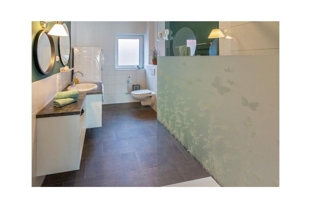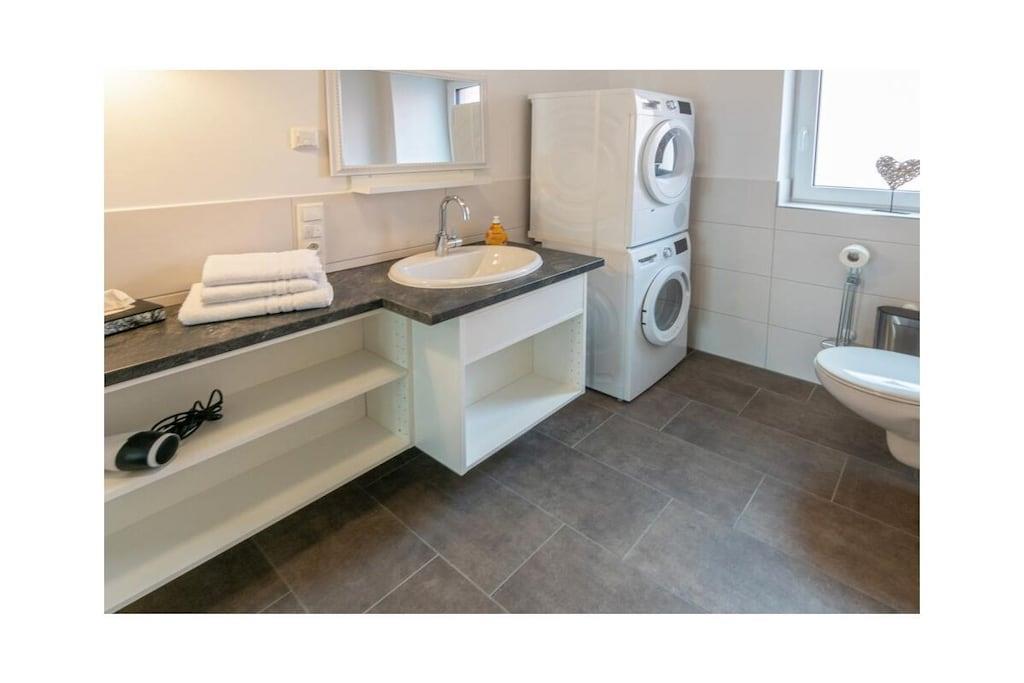 Internet Access DSL, Vacuum Cleaner, hallway(Wardrobe Coatrack), Living room(TV, heating), Kitchen(hob, electric kettle, toaster, coffee machine, oven, microwave, dishwasher, fridge, freezer, high chair), bedroom(Wardrobe, double bed), bathroom(Mirror, toilet, shower, hairdryer), Internet access, Internet access, tumble dryer, washing machine, garden furniture, parking, drying cabinet
