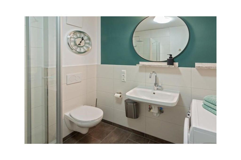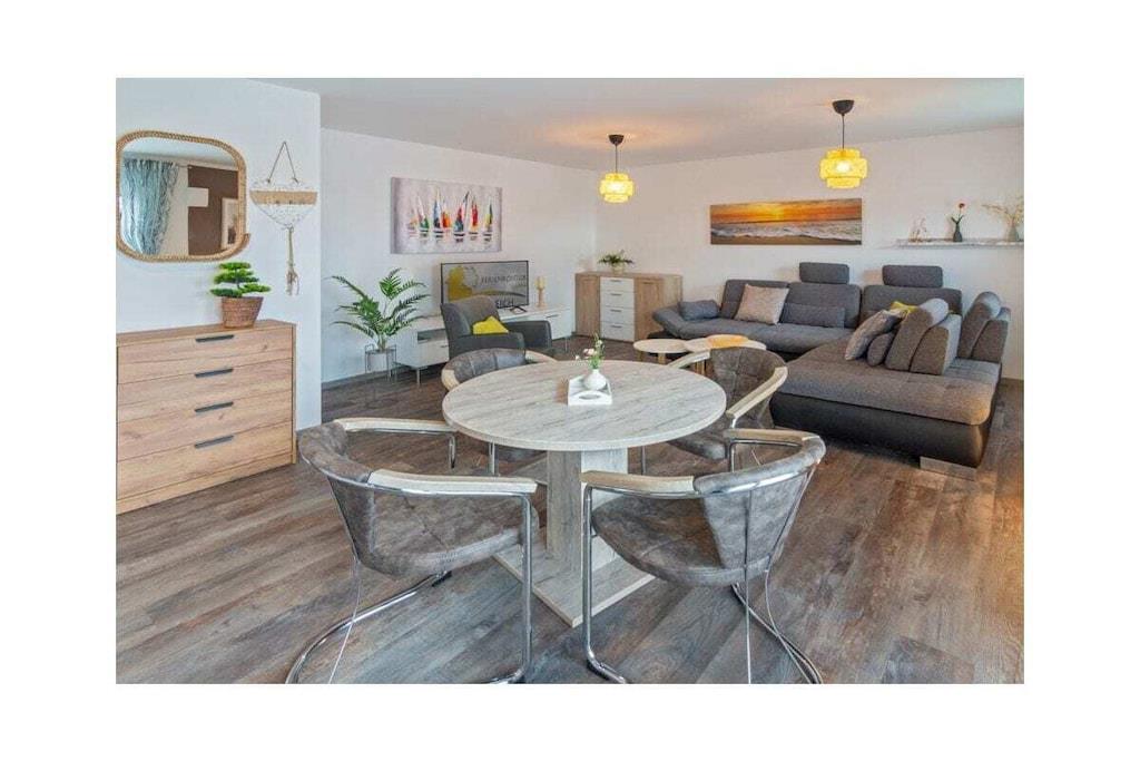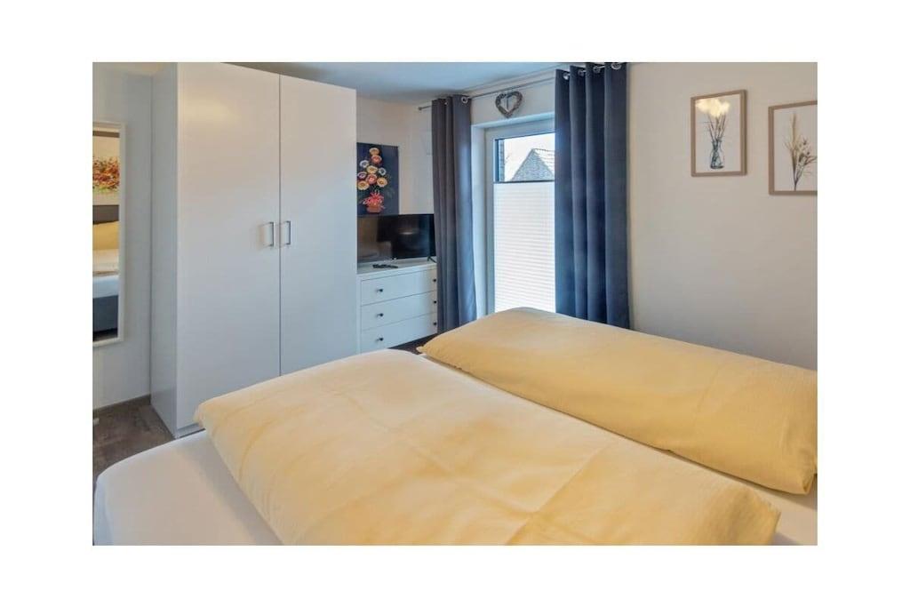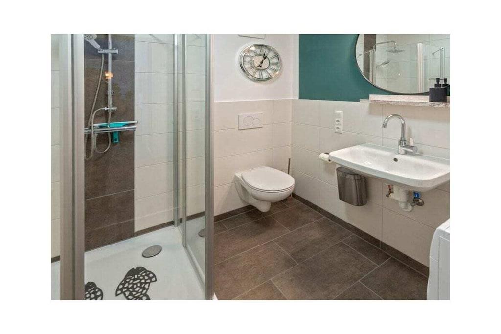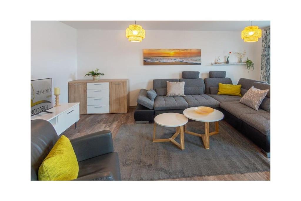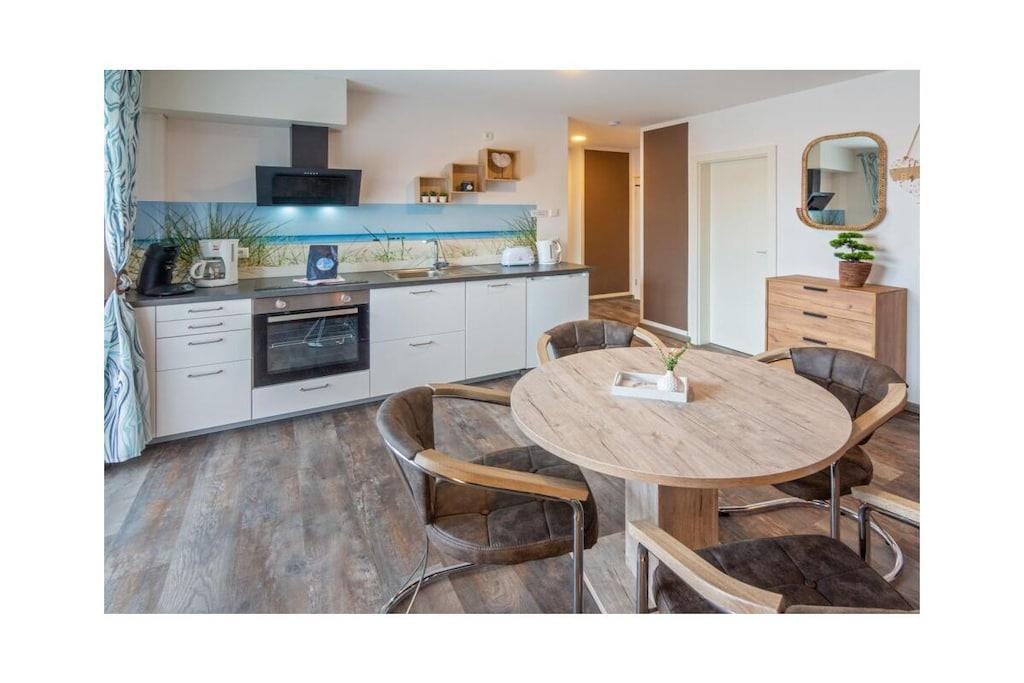 Dream Apartment 4 Norddeich is the most famous and attractive district of Norden. Numerous holidaymakers are drawn here every year. Although the town is manageable, it has everything you need. There are many small shops, pretty restaurants, and a wide range of tourist attractions for young and old. In your own holiday apartment, you can live in the middle of Norddeich and at the same time retreat into your own four walls when you feel the need. The "dream" apartments in this holiday home are perfect for unadulterated holiday happiness. The apartment building is located right in the center of Norddeich. So you are immediately in the middle of the action and can still enjoy the seclusion of your holiday apartment. Rent a small nest for up to two people here, or take advantage of the opportunity to spend a holiday together with several families in one house and still have their own space. The Dream 4 apartment is on the first floor of the house, on the ground floor of which there is a small shop. It can be easily reached via the staircase or a lift. Inside, an inviting ambience awaits you thanks to the light colors, the many windows and the tasteful furnishings. The hallway takes you directly to the heart of the apartment, a spacious living-dining area. Here, the open kitchen is the ideal place to prepare meals together. A cozy dining area is just as inviting as the cozy sofa area on which you can spend your evenings watching TV. The living area leads to the balcony. Although it is not too big, two people will find enough space to spend time together. With its south-facing orientation, it promises you pleasant sunlight all day long. The bedroom is also fully furnished with a comfortable double bed, a wardrobe and a chest of drawers. A special attention is paid to