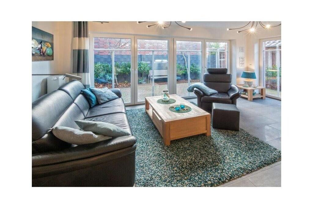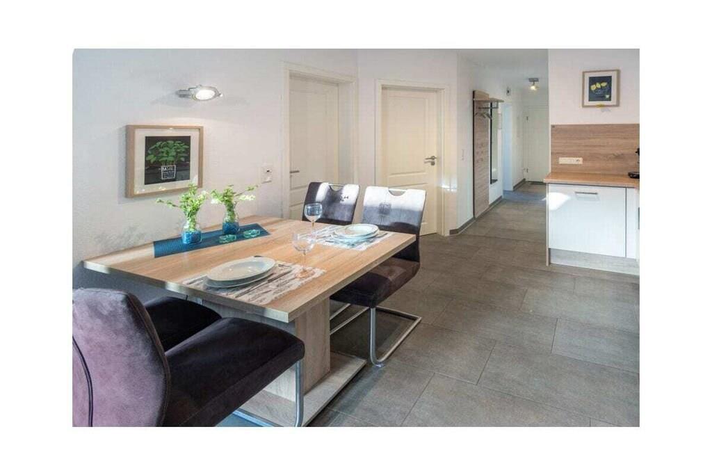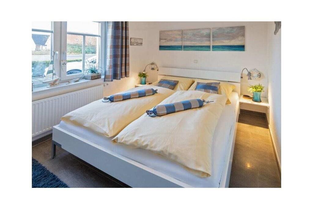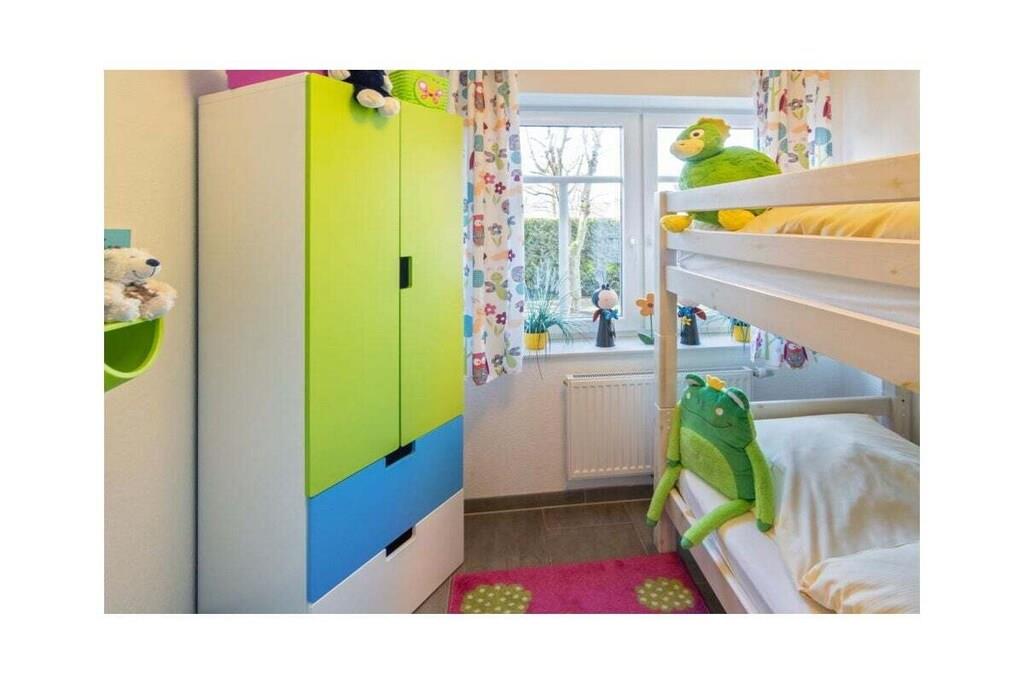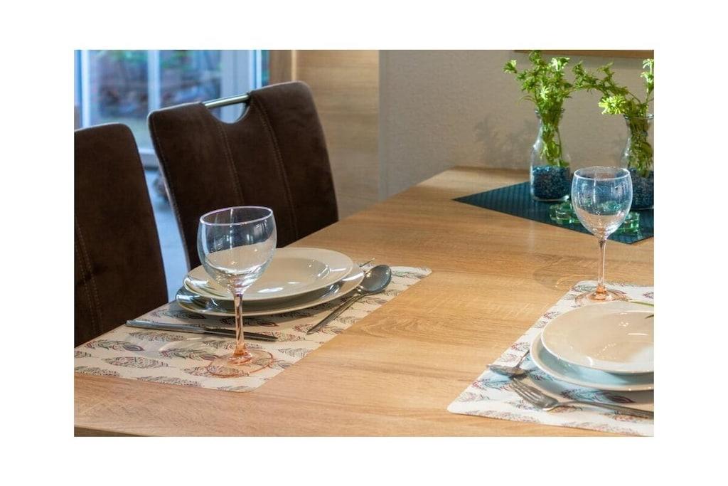 Holiday apartment Kleine Auszeit Welcome to our cozy holiday apartment "Kleine Auszeit" on the edge of Norddeich. Housed in a semi-detached house, the "Kleine Auszeit" offers the ideal setting for your relaxing holiday in the north of Germany. Our ground floor apartment impresses with its inviting terrace, which is designed on the corner and is directly accessible from the spacious living area. The open floor plan seamlessly connects the kitchen, the dining area and the tastefully furnished living area and creates a sociable atmosphere. Our holiday apartment is designed for the stay of 2 adults and 2 children. And your pet is also a welcome guest. Food and water bowls are already ready when you move in. The center of the living area, the cozy sofa set with the armchair and an elegant table, invites you to relax in the evenings while you watch your favorite shows on the flat screen TV provided. A Blu-ray player is also available and you are welcome to bring your favorite films from home. As a special extra, the living area has a safe in the closet, which offers additional security for storing your valuables. The modern corner kitchen is well equipped and certainly leaves nothing to be desired. A 4-burner stove, an oven, a microwave, a refrigerator, a pad coffee machine and a toaster as well as sufficient dishes and glasses are at your disposal. The dining table with its four chairs invites you to share meals, game nights or other communal activities. If you have a small child in your family, you will also find a children's high chair in the "Little Time Out". The "parents' bedroom" is comfortable and attractively designed. In addition to a spacious double bed measuring 160 cm x 200 cm and the matching bedside tables with reading lamp, you will find a