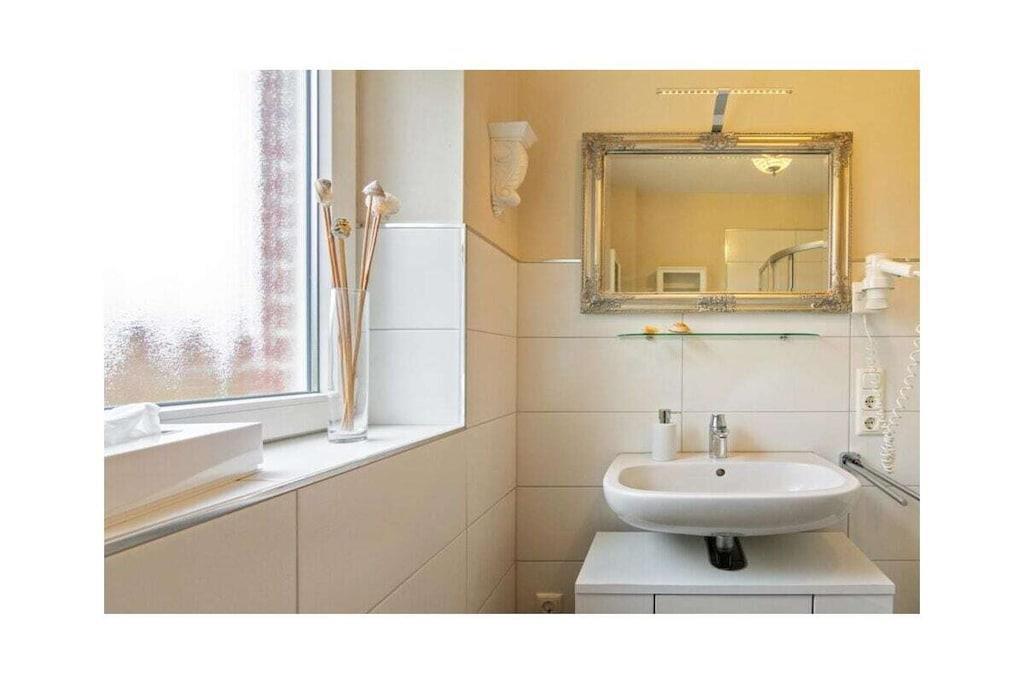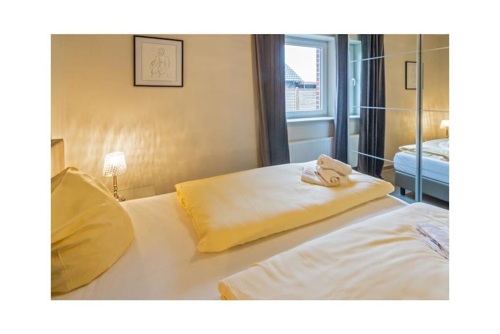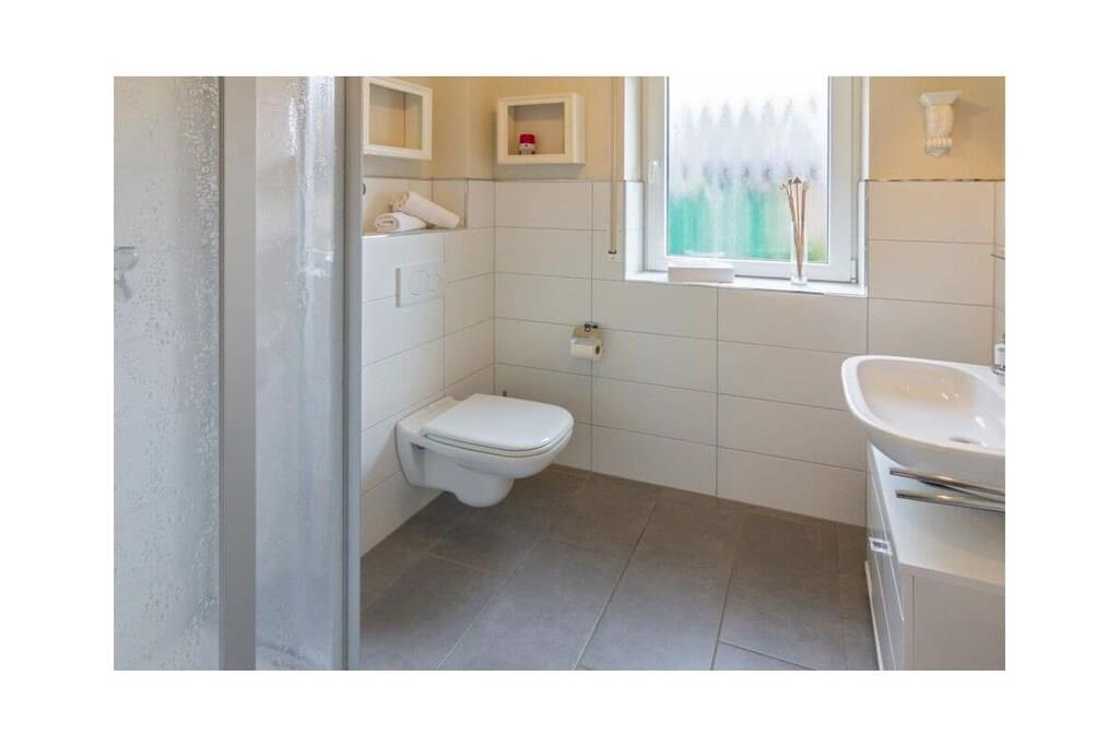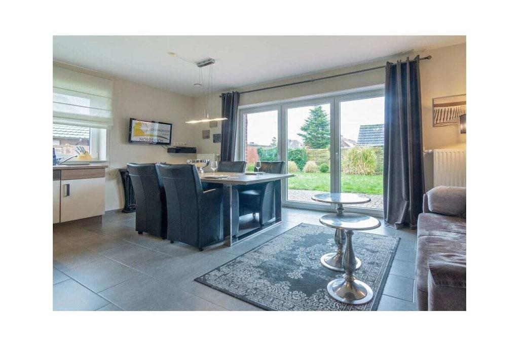 Holiday apartment "Nordperle 3", Fischerweg 10, UG Spend your holiday in Norddeich, one of the most picturesque holiday resorts on Germany's North Sea coast. Experience an idyllic combination of endless sandy beaches, fresh sea air and maritime flair. Immerse yourself in the relaxed atmosphere of this coastal town and let yourself be enchanted by the beauty of the North Sea. Norddeich not only offers a variety of leisure activities for those seeking relaxation and beach lovers, but also a varied program for nature lovers and active holidaymakers. Discover the unique landscape on long walks, explore the fascinating animal world in the Lower Saxony Wadden Sea National Park or take part in one of the numerous activities on offer. Enjoy your stay in Norddeich in our charming holiday apartment "Nordperle 3" and leave the stress of everyday life behind you! Our cozy apartment, furnished in a stylish shabby style, is designed for two people, is located on the ground floor of a quiet terraced house and skilfully combines comfort and functionality. The spacious living area invites you to relax and the comfortable couch with a view of a flat screen TV is the perfect place to relax after an eventful day or to watch an exciting film. A matching coffee table is available to keep drinks and snacks within easy reach. The modern kitchenette fits seamlessly and harmoniously into the living area and leaves nothing to be desired: four hotplates, a dishwasher, a spacious refrigerator, microwave, oven and a toaster are available for you. Fully equipped with dishes, glasses and all necessary kitchen utensils, you can effortlessly prepare your meals here and enjoy them at the large dining table. The bedroom promises a lot with its large double bed (approx. 180 × 200 cm) and a V
