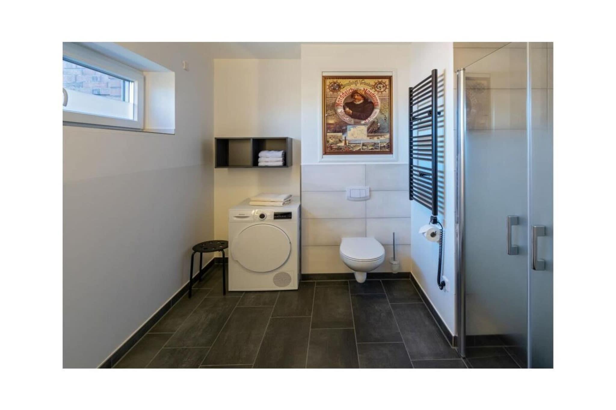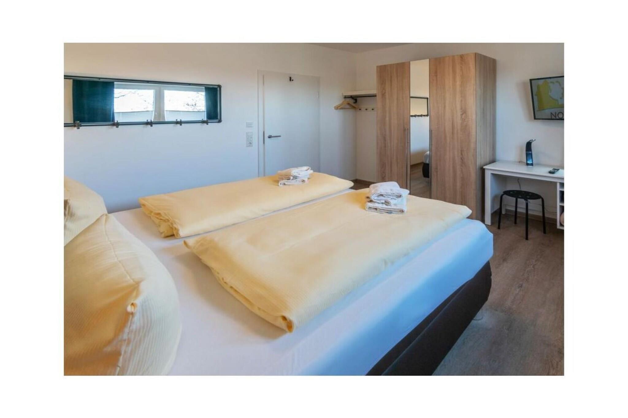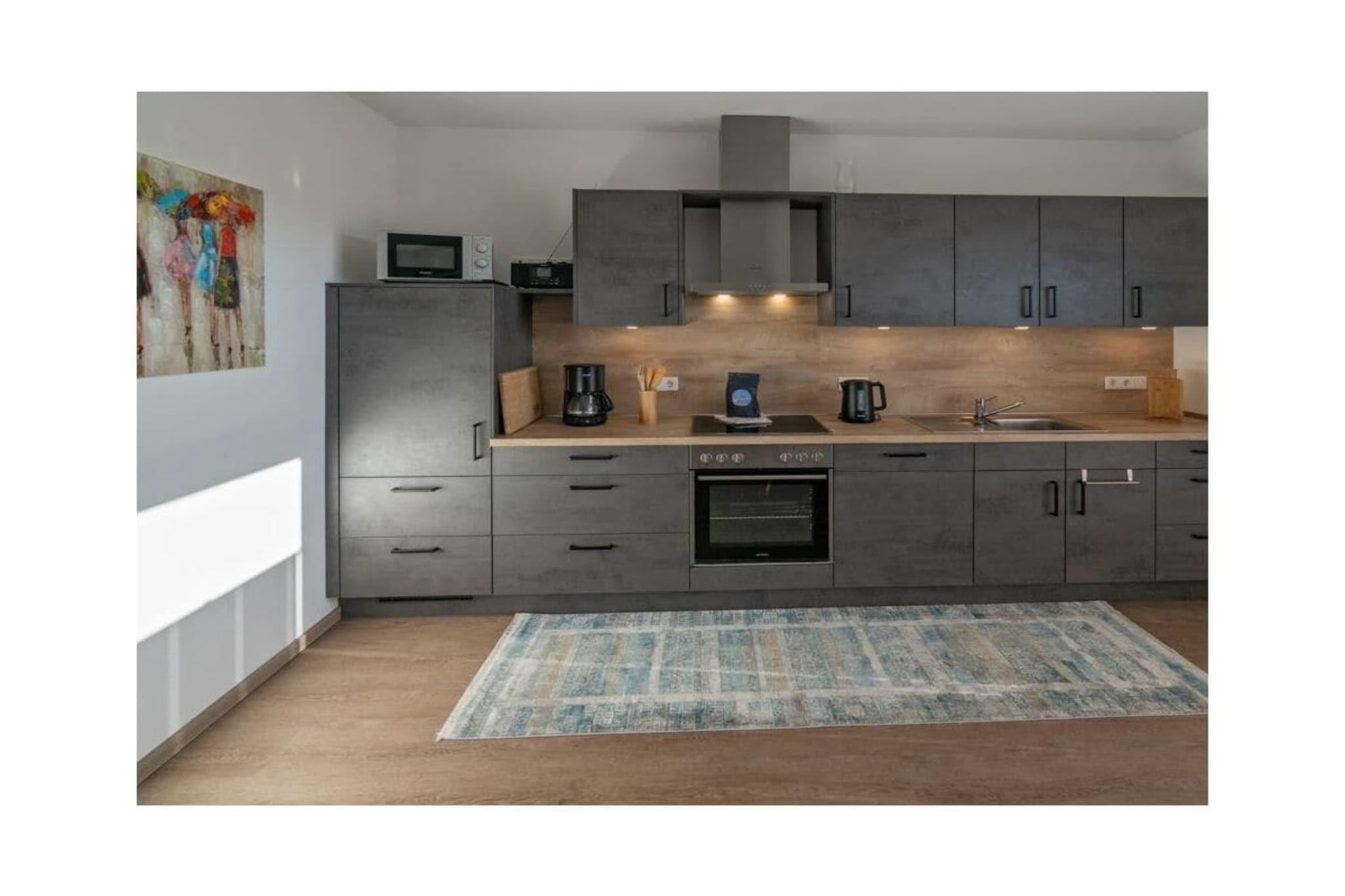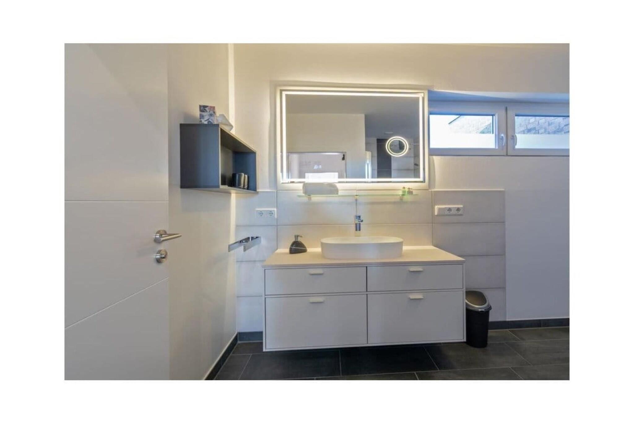 Holiday apartment Deck 8, Zum Bahnkolk 5, Norddeich Spend relaxing and eventful days in the small holiday paradise of Norddeich. Here, in the quiet district of the East Frisian town of Norden, you will find everything you could wish for for your dream holiday: a long sandy beach, wide dunes, quaint restaurants and inviting shops. This exclusive holiday apartment, which is barrier-free, guarantees you an all-round pleasant stay. The holiday apartment The Deck 8 holiday apartment is on the second floor of an apartment building and, despite its very central location, is pleasantly quiet. You can get to the wonderful sandy beach just as quickly as Norddeich's lively and inviting shopping mile. You will find a parking space right outside your front door. You don't have to climb any stairs to get to your holiday home, as there is a modern elevator that takes you directly to the 2nd floor. This property is also barrier-free inside. The kitchen, dining area and living room are connected in a spacious area. What is particularly striking here is the modern yet very comfortable furnishings. The apartment is bright and friendly, dark color accents on the selected designer furniture create an elegant flair. Thanks to the wide window front in the living and dining area, your apartment is flooded with light almost all day. Of course, the windows can be darkened using the shutters if desired. A stylish couch and the color-coordinated armchair in the living area invite you to linger. A modern TV guarantees cozy evenings in front of the TV. The modern kitchenette is functionally equipped with everything you need if you don't want to eat out. It has a stove with four hotplates on a ceramic hob, an oven, a refrigerator, a dishwasher, a microwave, a coffee machine, a toaster, an egg cooker and enough dishes.
