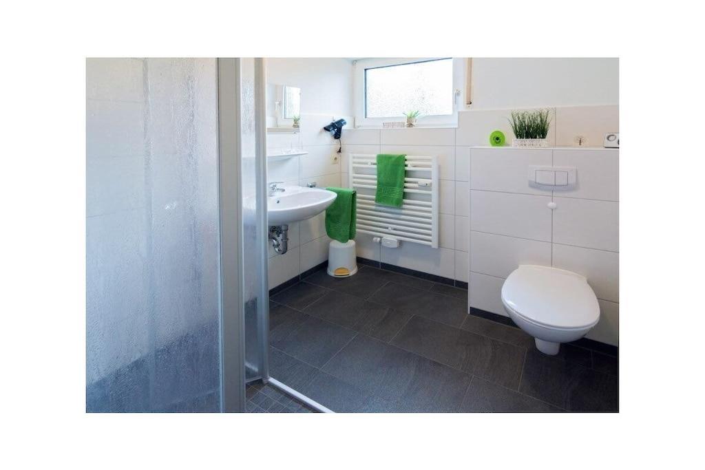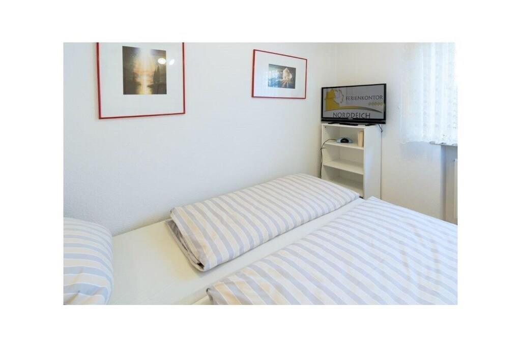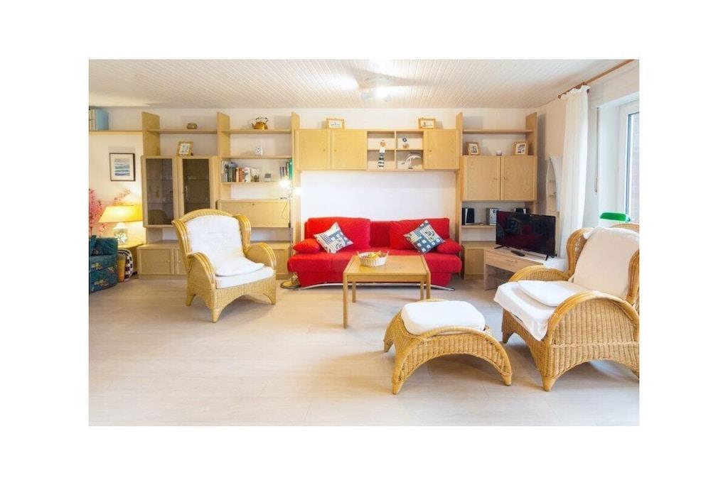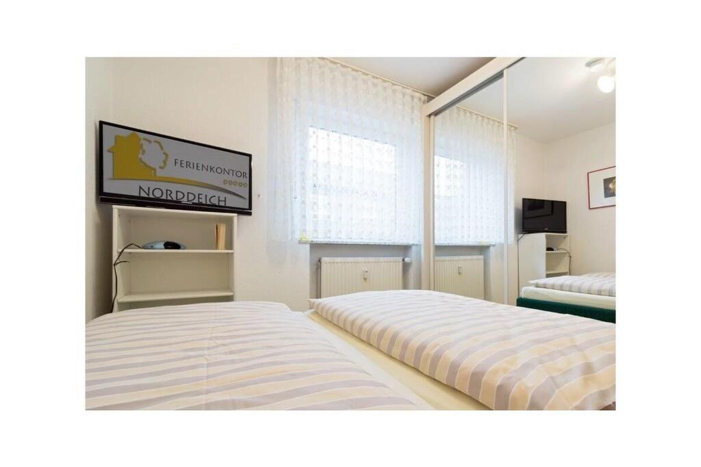 Holiday apartment Küstenperle This spacious, bright apartment guarantees up to two people a pleasant and comfortable stay in Norddeich. The large living area of the apartment has been equipped with everything you need to make guests feel at home. In addition to comfortable seating, a modern flat screen TV is also a must for the evenings. The open kitchen is inviting. While meals can be taken in the country-style seating area, you can also sit comfortably together at the modern counter with a cup of coffee. There is a bedroom available for you to sleep in. This has a double bed measuring 160x200 cm. Of course, there is enough storage space for your clothes in the large wardrobes. The large bathroom is particularly appealing. It is not only tastefully designed, but also a real highlight with the floor-level glass shower. You can enjoy sunny days and mild evenings on your own terrace. This is also well equipped for this. For a carefree start to your vacation, book our linen package. This consists of bed linen, towels, shower mats, tea towels and a service set (toilet paper, dishwasher tablets, garbage bags, dishwashing brush, cleaning cloths and other small helpers) for a carefree start to your vacation.