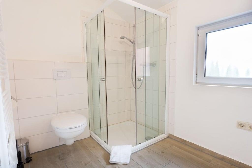 Ground floor: (Living room(Armchair, Games, Sofa, library, TV, TV, radio, CD player, stereo unit, heating, high chair, insect screens), Kitchen(Egg Cooker, Mixer, Tea Towels, Kitchenette, dining table, hob, electric kettle, toaster, coffee machine, oven, microwave, dishwasher, fridge, freezer, heating, insect screens), bedroom(Mirror, Wardrobe, double bed, insect screens), bathroom(Make Up Mirror, Mirror, toilet, shower, washbasin, washing machine, heating, hairdryer, insect screens), storage(Vacuum Cleaner, washing machine, ironing board, iron, drying cabinet)) On the 1st floor: (bedroom(Mirror, Wardrobe, double bed, TV, TV, DVD player, insect screens), bedroom(Wardrobe, single bed, double bed, insect screens), guest toilet(Mirror, toilet, washbasin)) Fire Alarm, Hot Water, Internet Access DSL, Internet Access ISDN, Vacuum Cleaner, storage, Internet access, Internet access, washing machine, heating, terrace(Sun Umbrella, fridge, freezer, garden furniture, sun loungers), garden(Lawn, sun loungers), parking, iron, drying cabinet