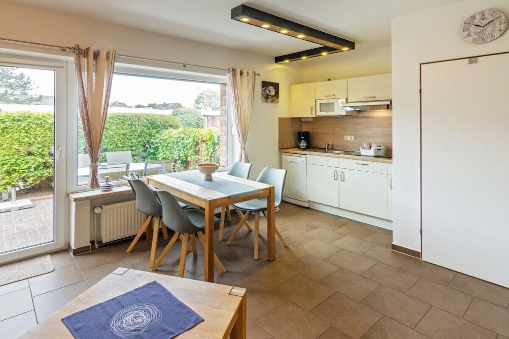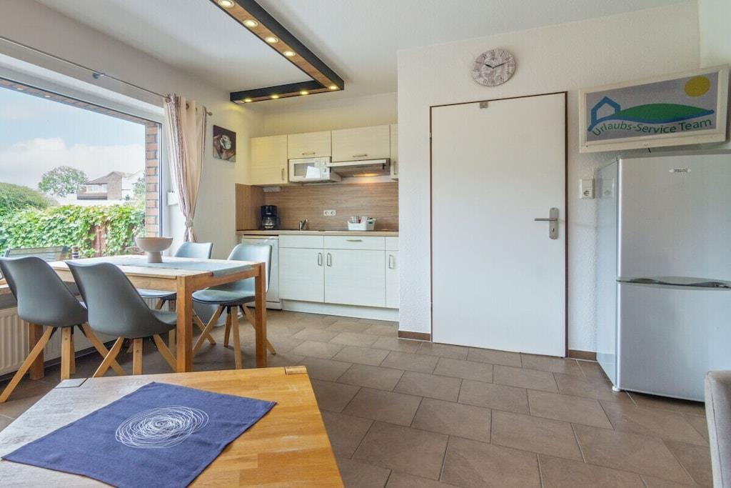 Beautiful holiday apartment, cozy, comfortable, and brightly furnished. A fully equipped kitchenette includes a dishwasher, microwave, freezer, and ceramic hob. The living area features a comfortable sofa and armchairs with seating for everyone, satellite TV, a flat-screen TV, and a radio. The beds are equipped with box-spring mattresses and (bed linens are included if booked) will be made up upon your arrival. Enjoy the sun on "your" terrace (with garden furniture and grill). Store everything that can't or doesn't need to be brought inside in the lockable garden shed. Parking is available directly at the house.