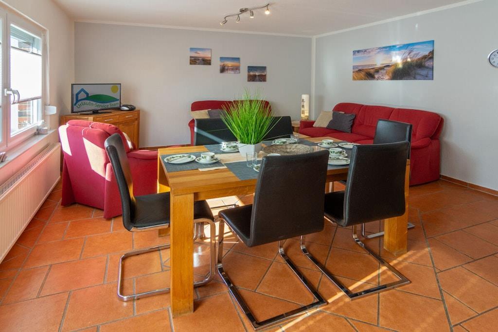Welcome to our spacious holiday apartment in Norddeich! This newly renovated property offers plenty of space and everything you need for a relaxing stay. With three comfortable bedrooms – two with their own TVs – the apartment is ideal for families or groups. Two modern bathrooms with showers ensure comfort and privacy. The spacious living area invites you to linger, while the large, open-air terrace is the perfect place to enjoy relaxing hours outdoors. The central location puts shops, restaurants, and the beach within easy reach.
