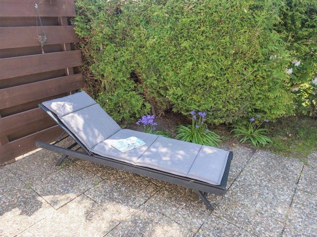 Die Ferienwohnung bietet einen eigenen Garten, der zum Entspannen und Verweilen einlädt. Eine großzügige Terrasse mit Markise sorgt für schattige Plätze an sonnigen Tagen. Hier kann die Natur in vollen Zügen genossen werden, während der private Außenbereich zum Grillen oder einen gemütlichen Abend im Freien einlädt.