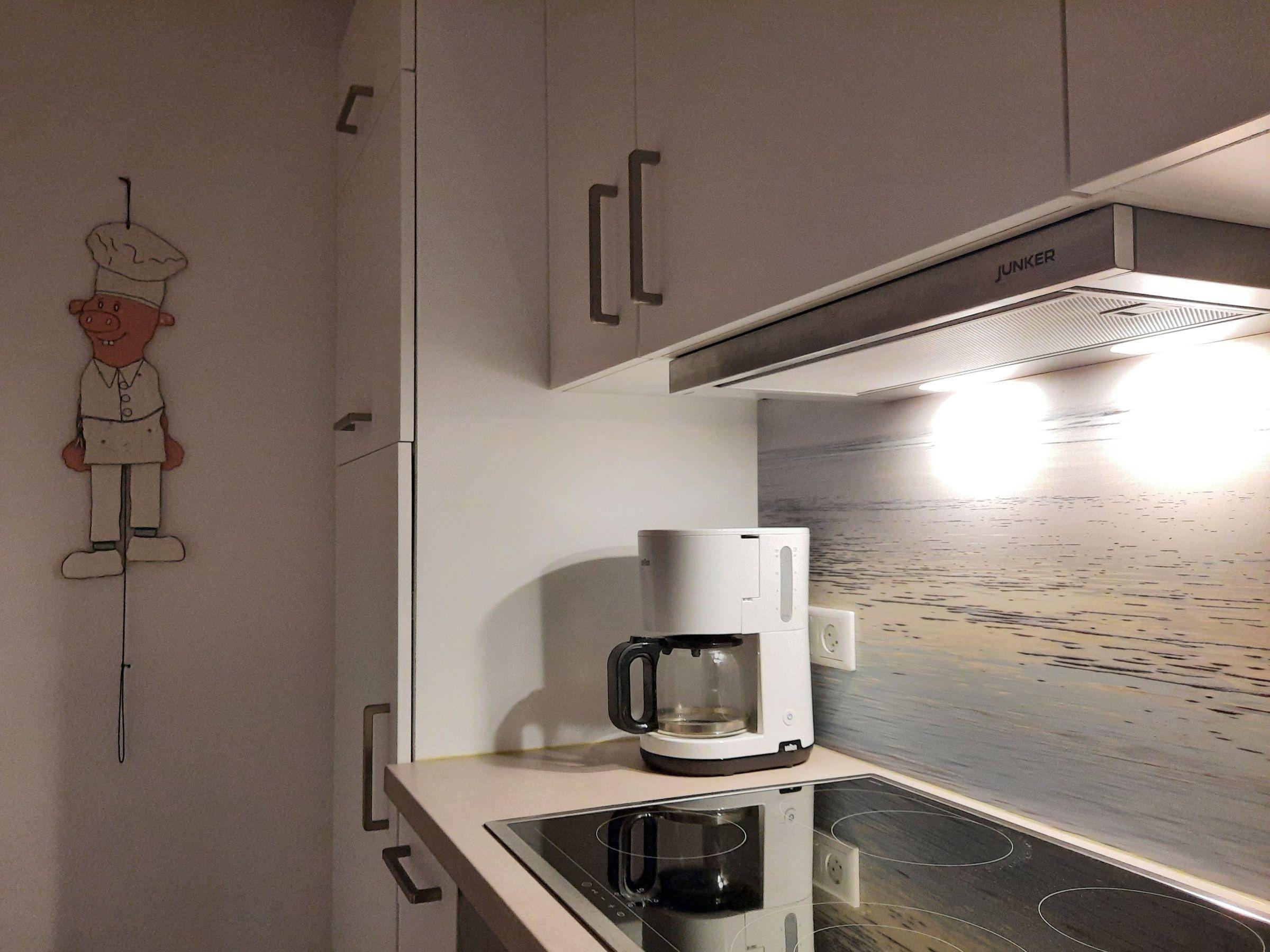 In dieser gut ausgestatteten Ferienwohnung findet die perfekte Erholung statt. Die Wohnung verfügt über zwei Schlafzimmer, eines mit einem Doppelbett und das andere mit zwei Einzelbetten, ideal für Familien oder Gruppen. Ein modernes Badezimmer mit Fenster und einem zusätzlichen Gäste-WC sorgt für Komfort. Die separate Küche ist voll ausgestattet, inklusive Geschirrspüler, Elektro-/Gasherd, Backofen, Mikrowelle, Kühlschrank, Kaffeemaschine und Toaster – damit gelingt jede Mahlzeit mühelos.