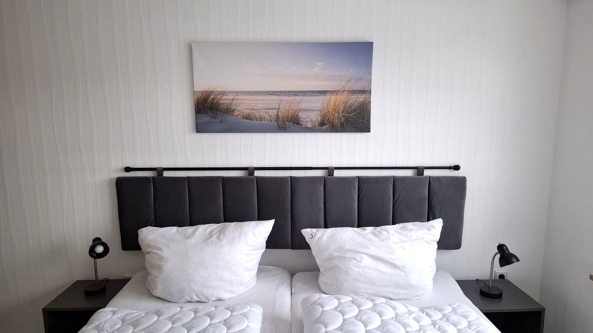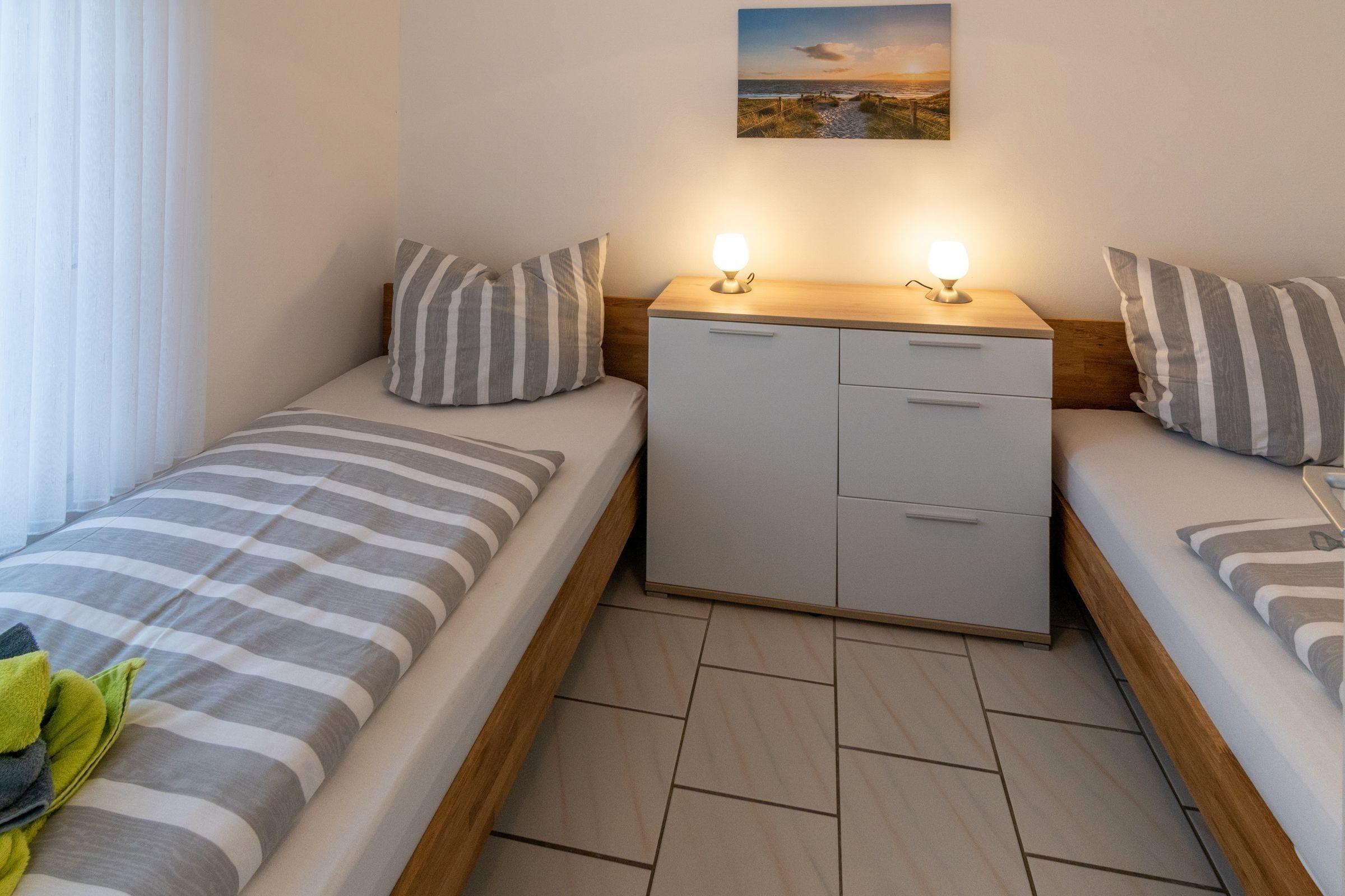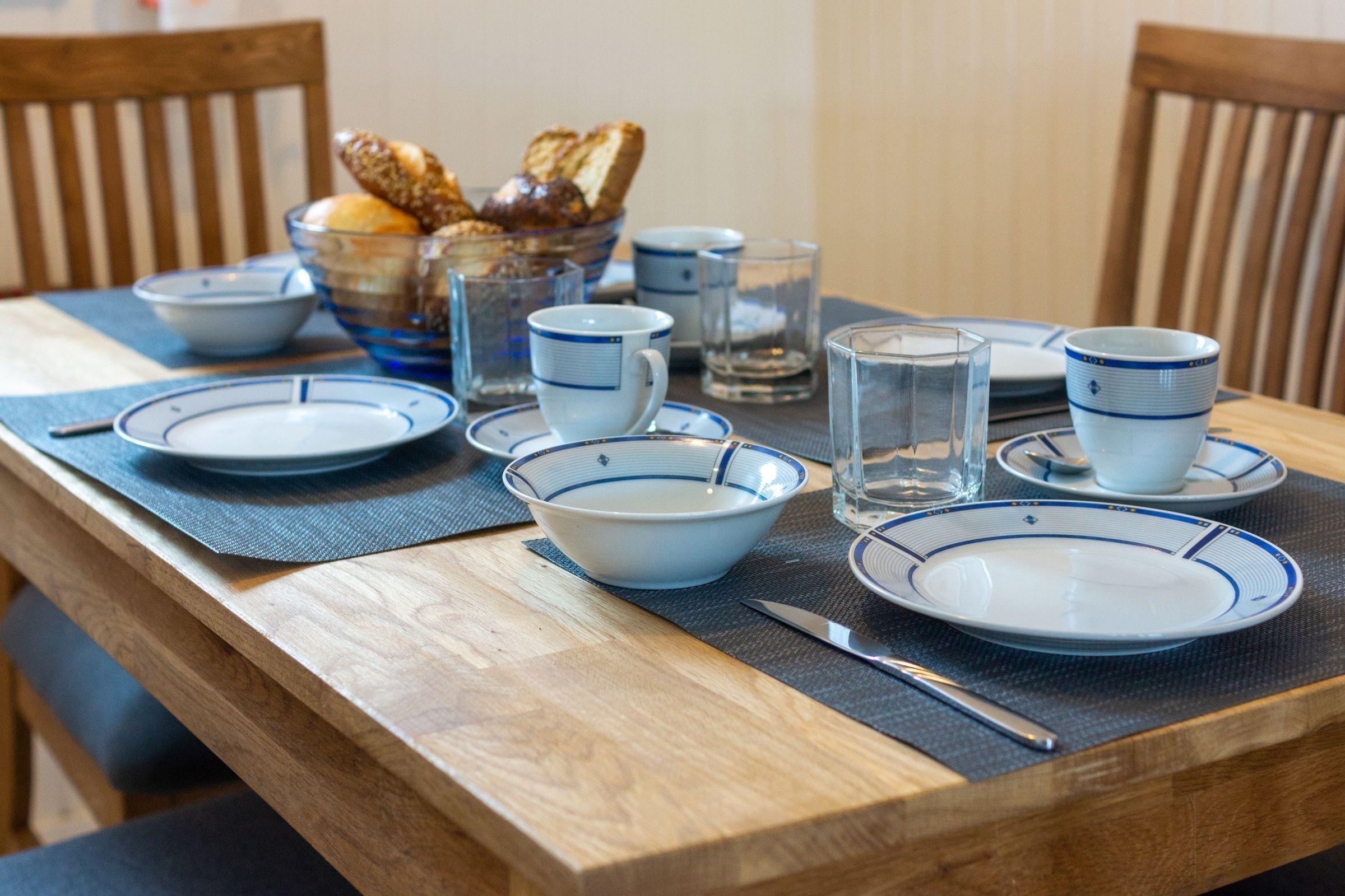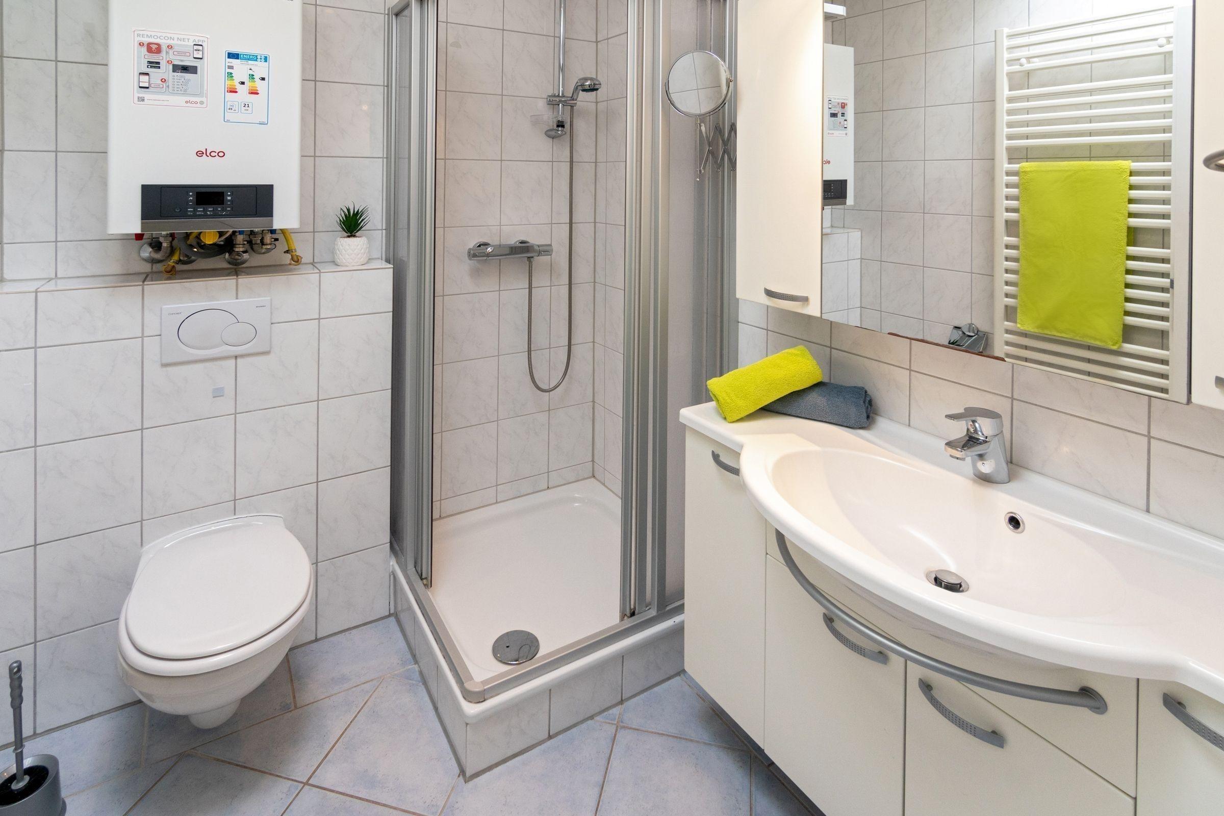 Die Ferienwohnung bietet eine moderne und komfortable Ausstattung für einen entspannten Aufenthalt. Sie verfügt über zwei geräumige Schlafzimmer, ein Doppelbett und zwei Einzelbetten, die optimalen Schlafkomfort gewährleisten. Die offene Küche ist mit einem Geschirrspüler, einem Elektro-/Gasherd, einem Backofen sowie einem Kühlschrank ausgestattet. Für zusätzliche Annehmlichkeiten sorgen eine Kaffeemaschine, ein Wasserkocher, ein Toaster und eine Gefriermöglichkeit. Das Badezimmer mit Fenster ist funktionell gestaltet und bietet einen Spiegel sowie genügend Stauraum in Schränken und Kommoden. In den Wohnbereichen befinden sich ein Sofa, ein Sessel und ein Esstisch. Die Unterkunft ist allergikergeeignet und bietet WLAN-Internet sowie eine HiFi-Anlage und TV für die Unterhaltung. Ein Parkplatz und eine Waschmaschine runden das Angebot ab. Die Heizung sorgt für wohlige Wärme. Ein Staubsauger und eine Garderobe stehen ebenfalls zur Verfügung, damit sich die Gäste jederzeit wohlfühlen können.