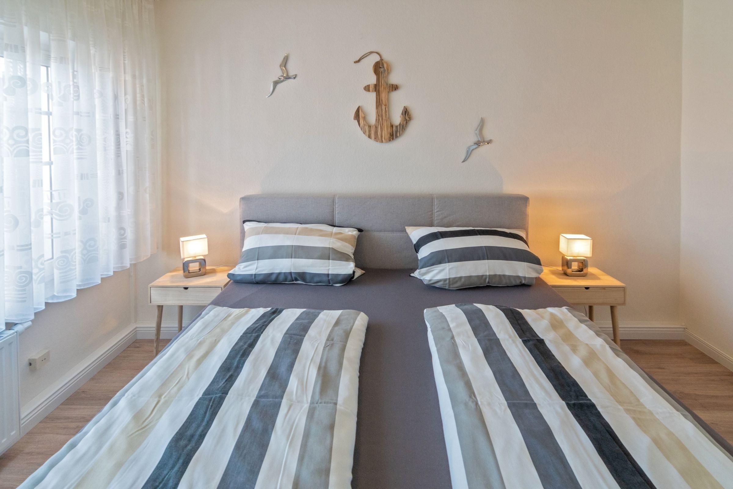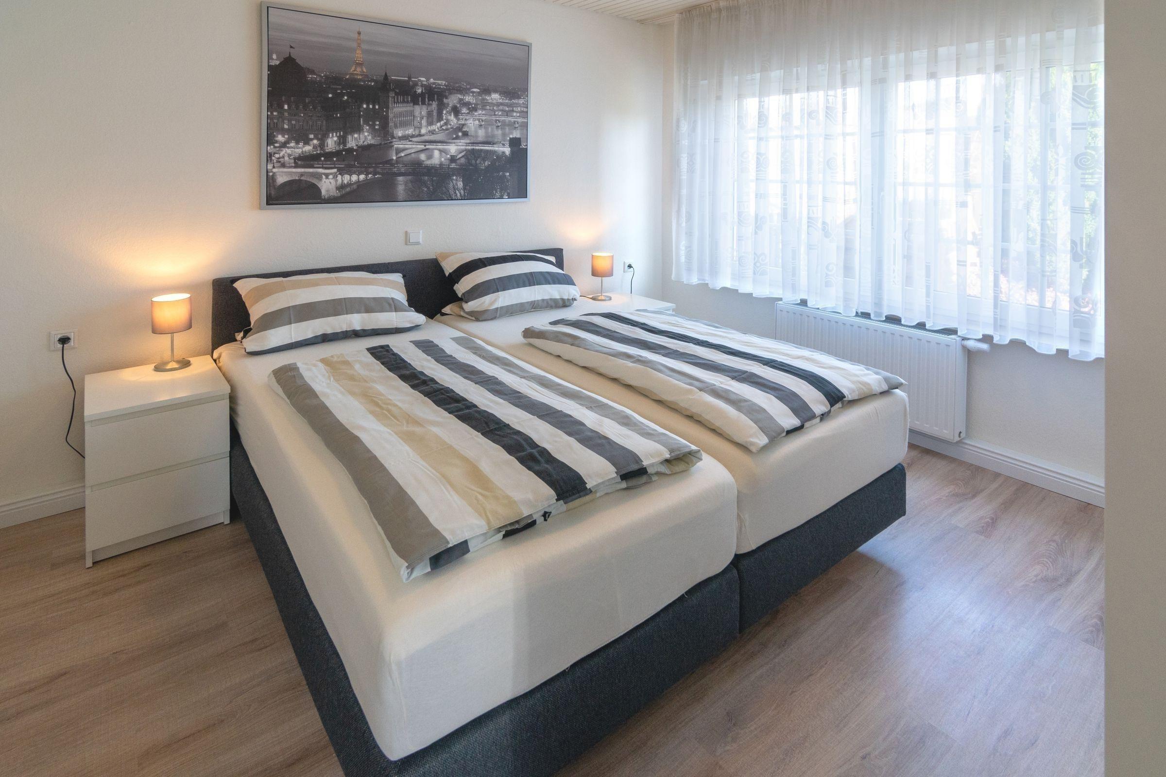 Die Ferienwohnung bietet eine moderne und komfortable Ausstattung, die für einen erholsamen Aufenthalt sorgt. Sie verfügt über drei Schlafzimmer, darunter zwei mit Doppelbetten und eines mit einem Einzelbett sowie einem Kinderbett, ideal für Familien. Die offene Küche ist voll ausgestattet mit Geschirrspüler, Elektro-/Gasherd, Backofen, Kühlschrank, Mikrowelle, Kaffeemaschine, Wasserkocher, Toaster und einer Gefriermöglichkeit. Ein Esstisch lädt zu gemeinsamen Mahlzeiten ein. Das barrierefreie Duschbad ist mit einer bodengleichen Dusche, einem Haartrockner und einem Fenster versehen. Im Aufenthaltsbereich sorgen Sofa und Sessel für Entspannung, während die HiFi-Anlage und der Fernseher Unterhaltung bieten. WLAN-Internet ist verfügbar. Zur Ausstattung gehören zudem ein Parkplatz sowie eine Waschmaschine. Diese Wohnung ist allergikergeeignet und bietet auch eine ideale Umgebung für Reisende mit besonderen Bedürfnissen.