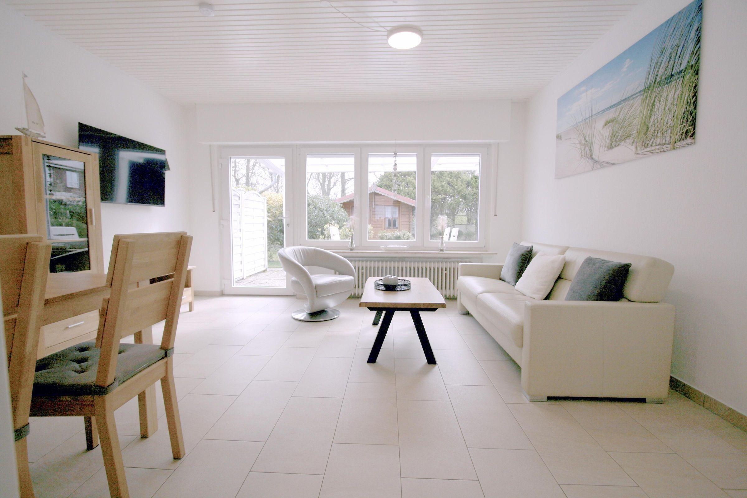 Die Ferienwohnung bietet einen idyllischen Gartenblick und ist ideal für Gruppen und Familien bis zu fünf Personen, perfekt gelegen für unvergessliche Erlebnisse in der Nähe des Norddeicher Strands.
